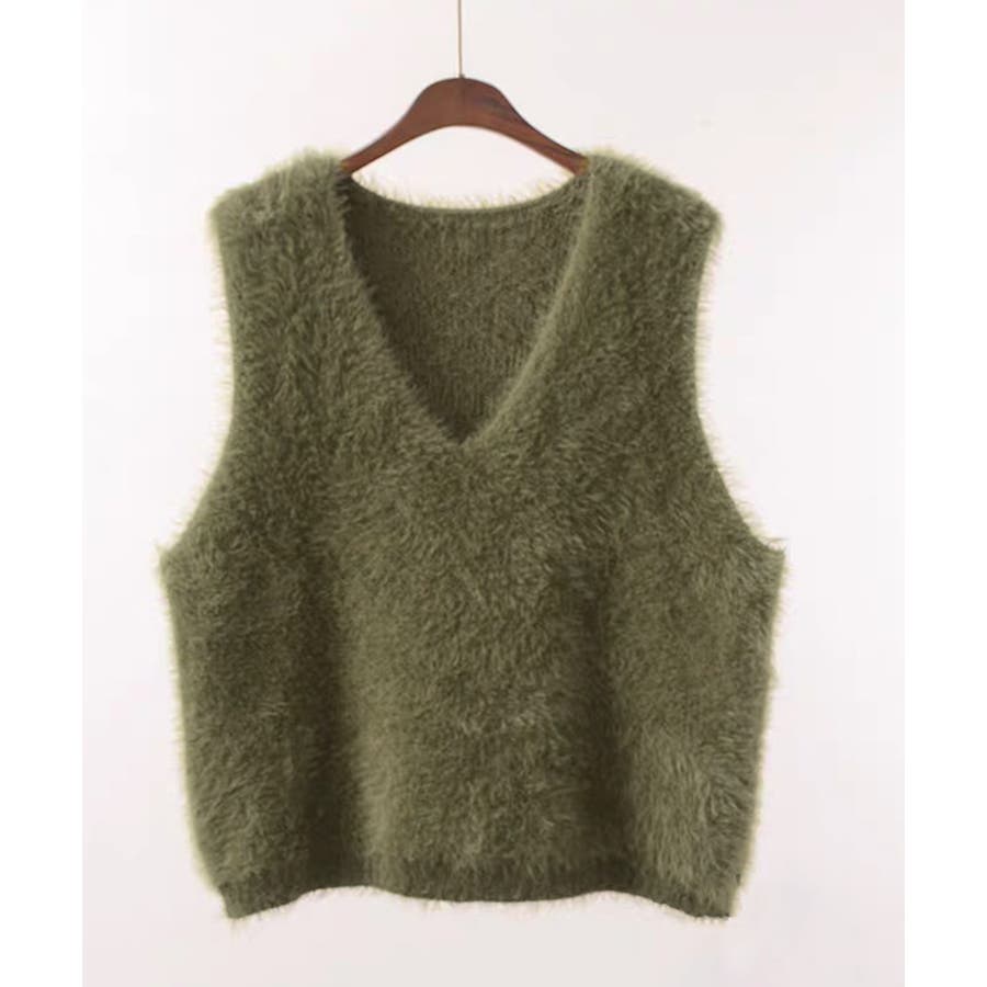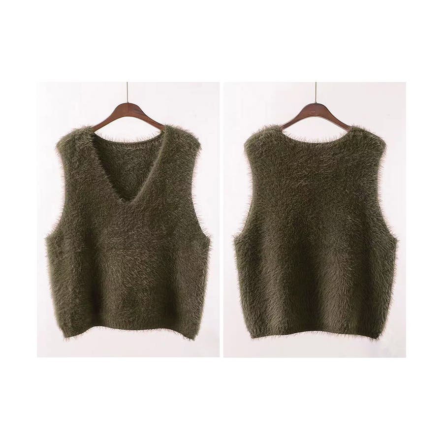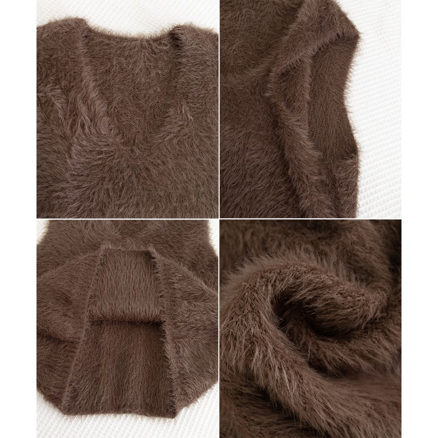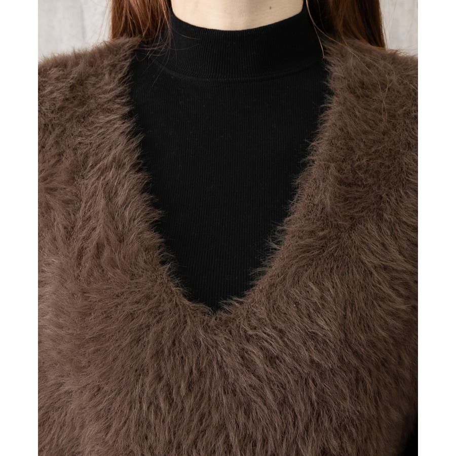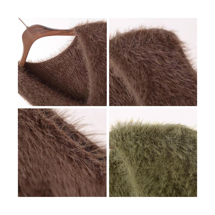 Vネック起毛フェザーニットベストふわふわ