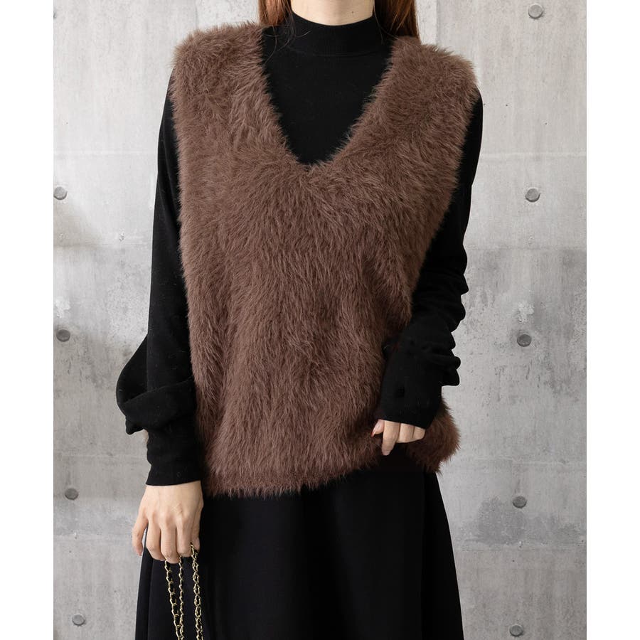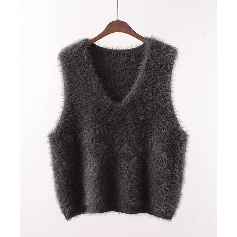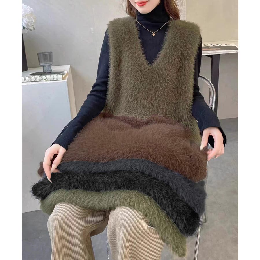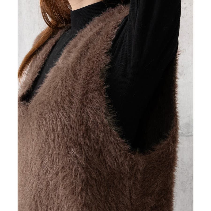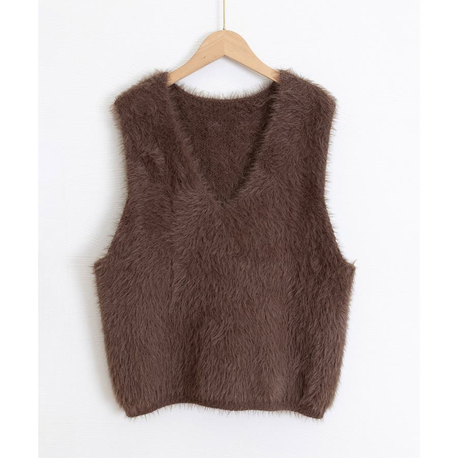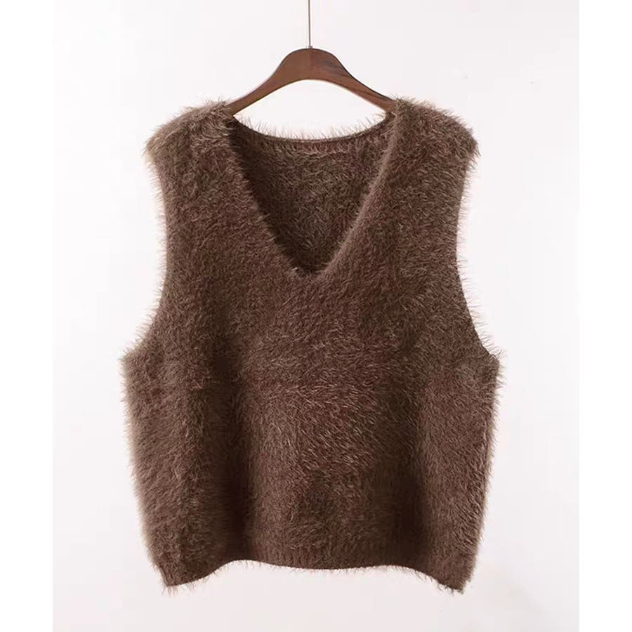 Vネック起毛フェザーニットベストふわふわ