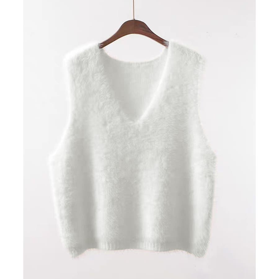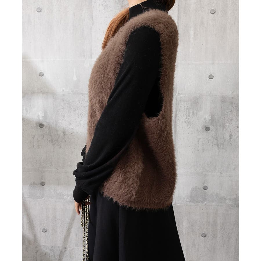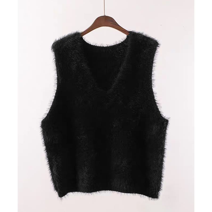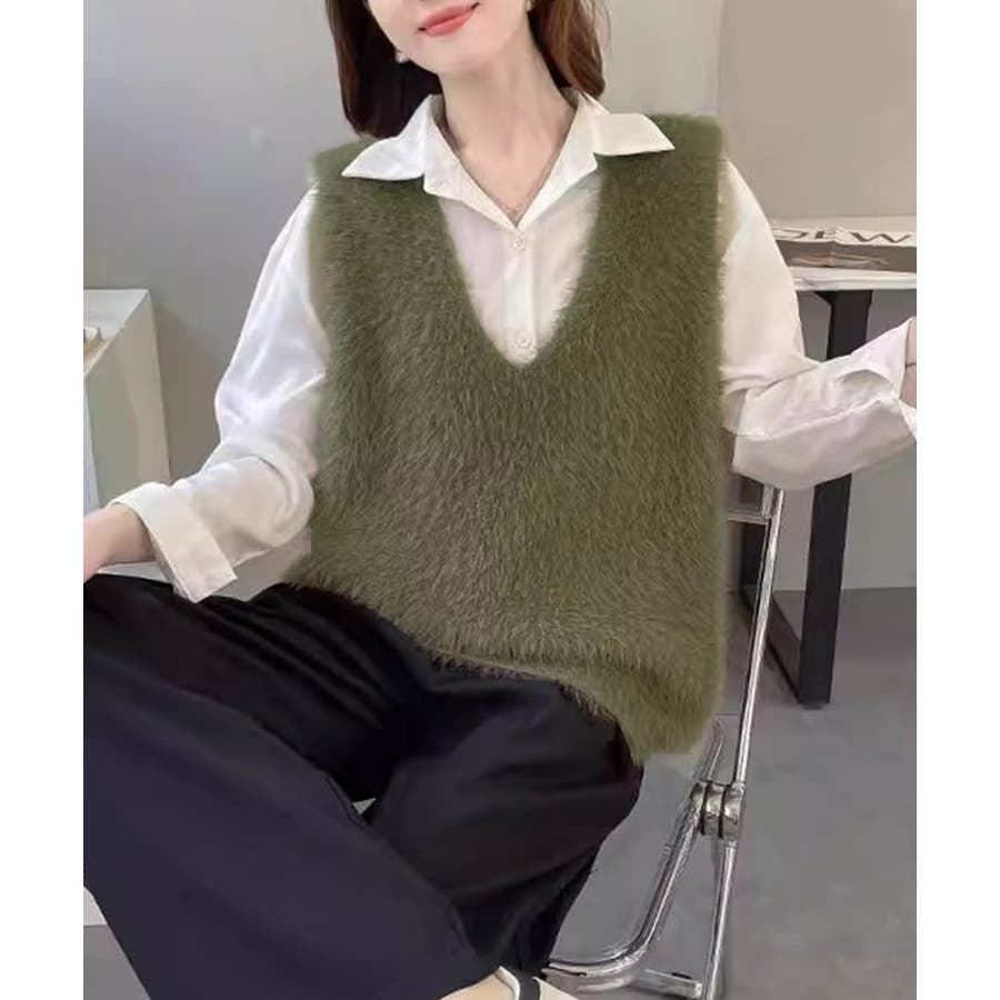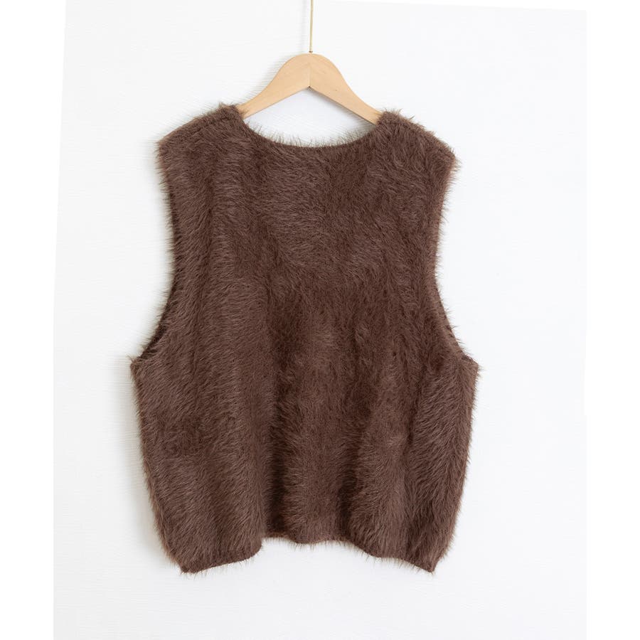 Vネック起毛フェザーニットベストふわふわ