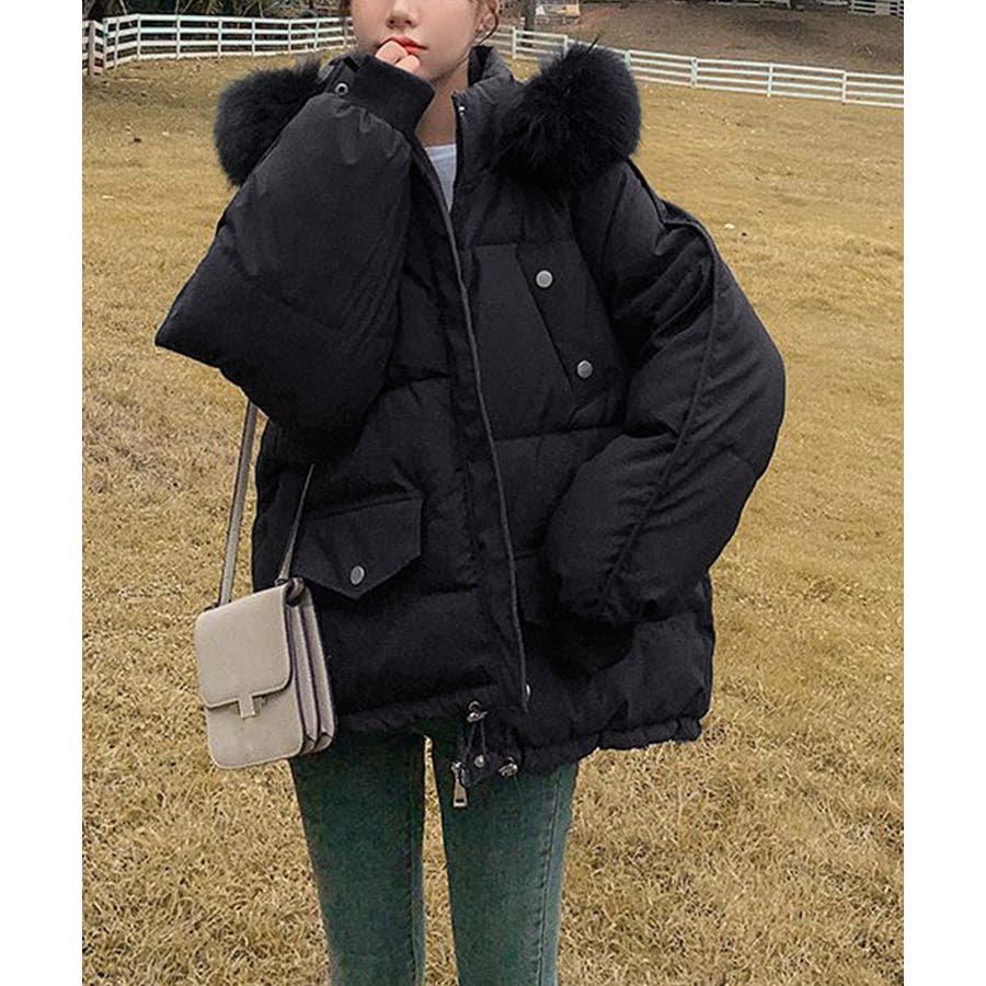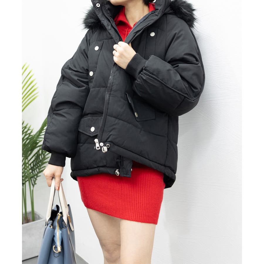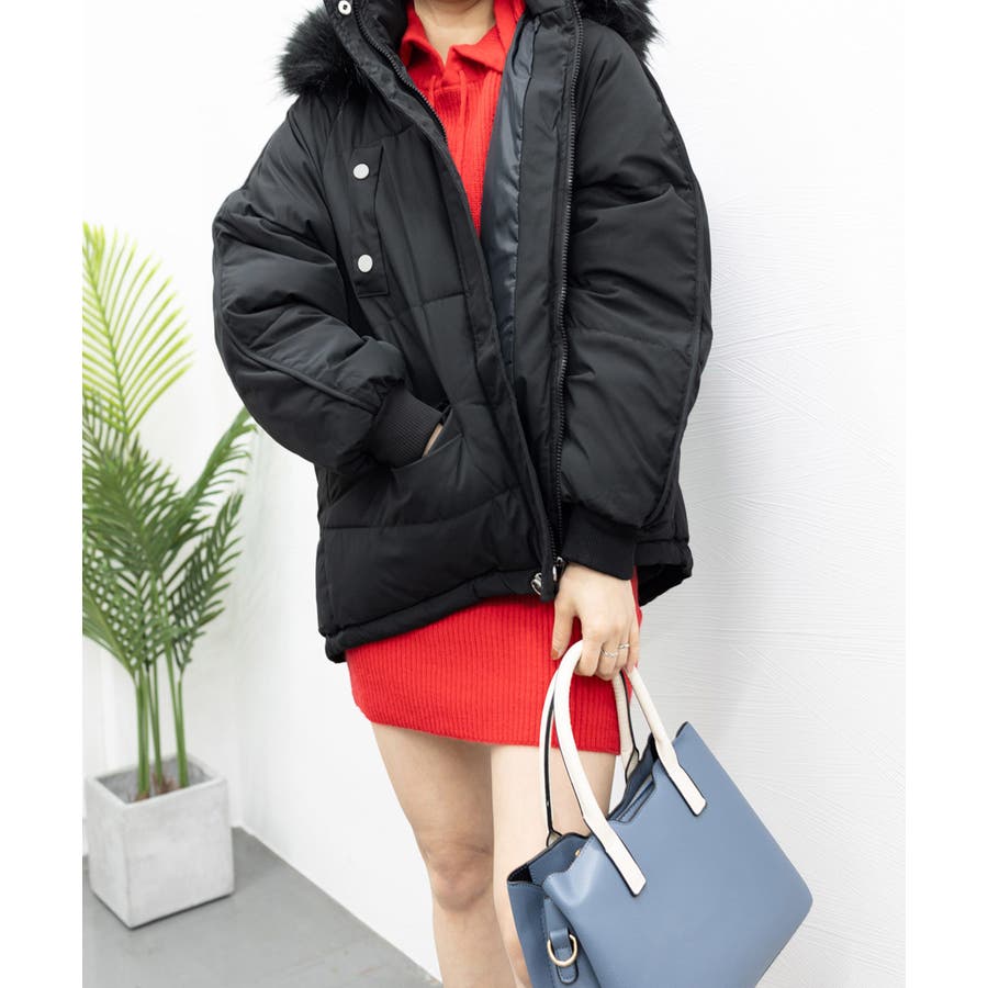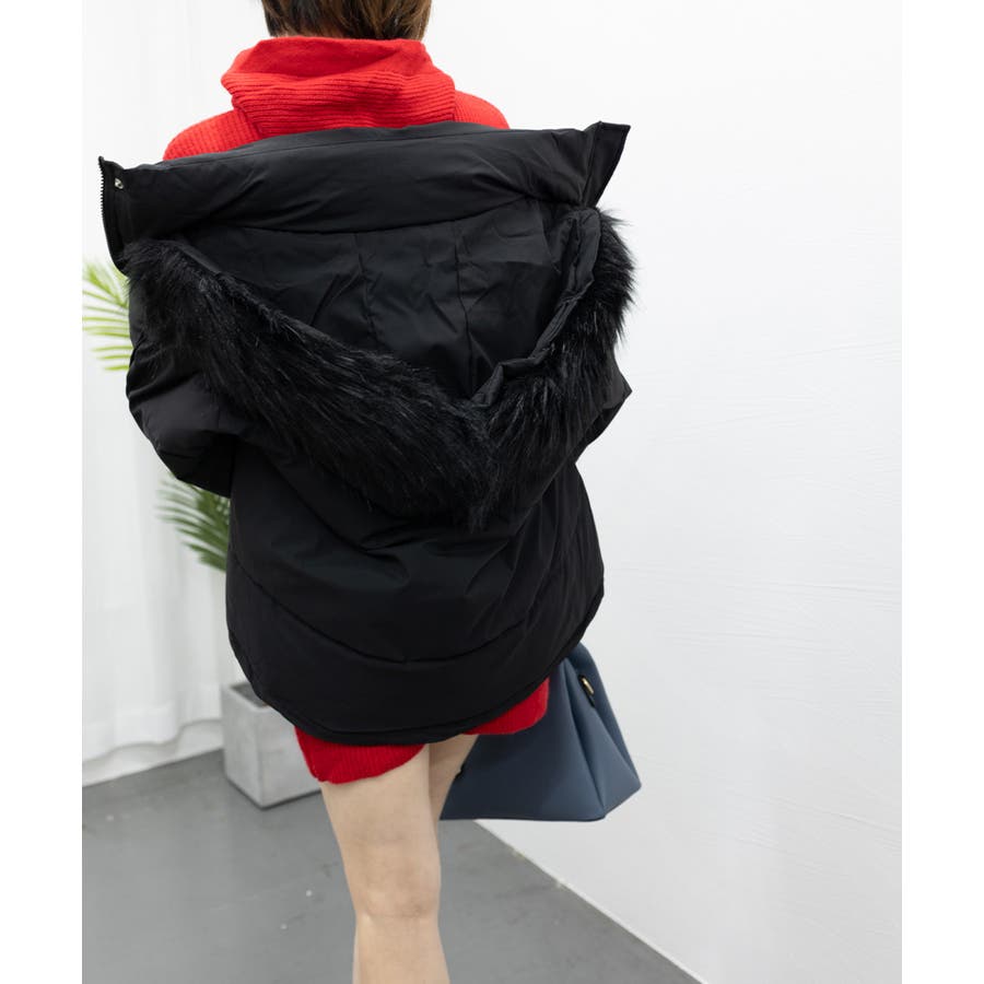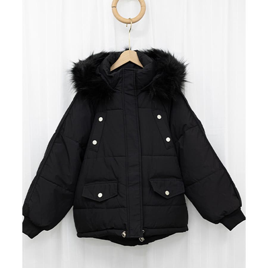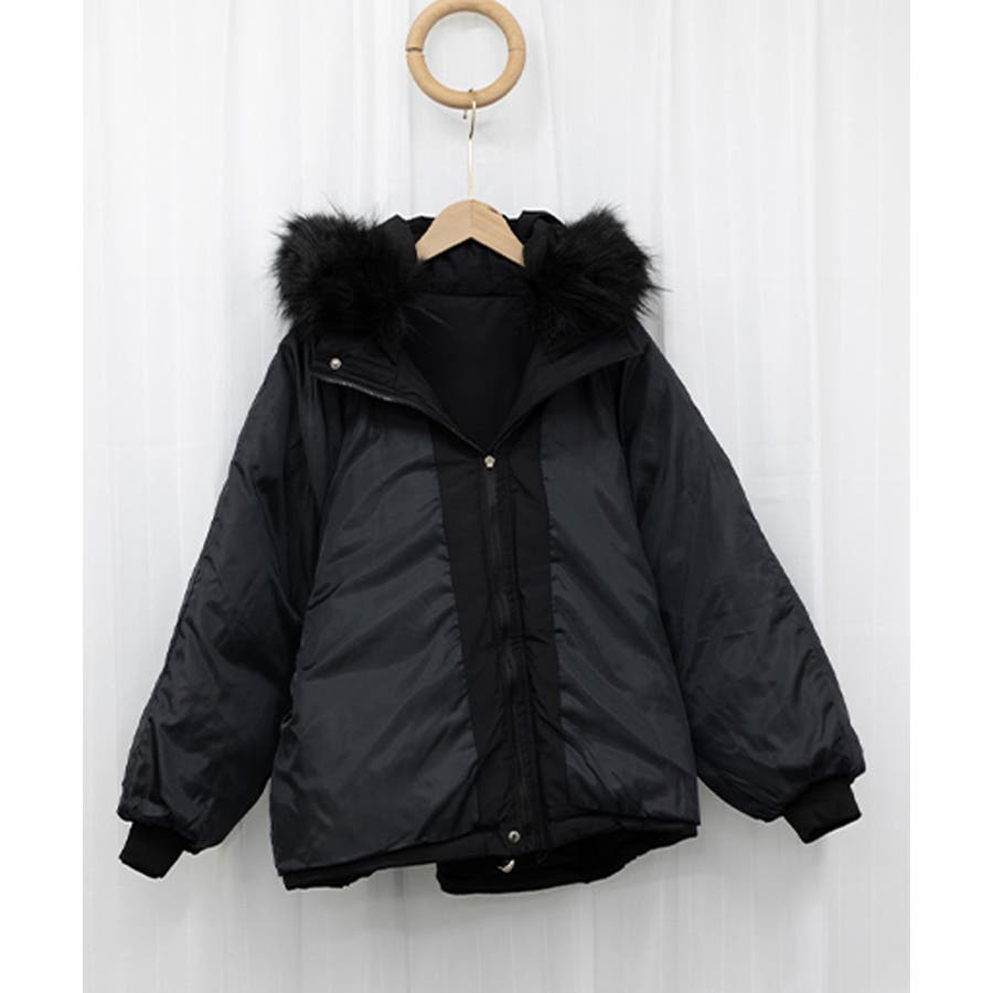 フェイクダウン冬服 ウィンターコート黒 フードファーお洒落