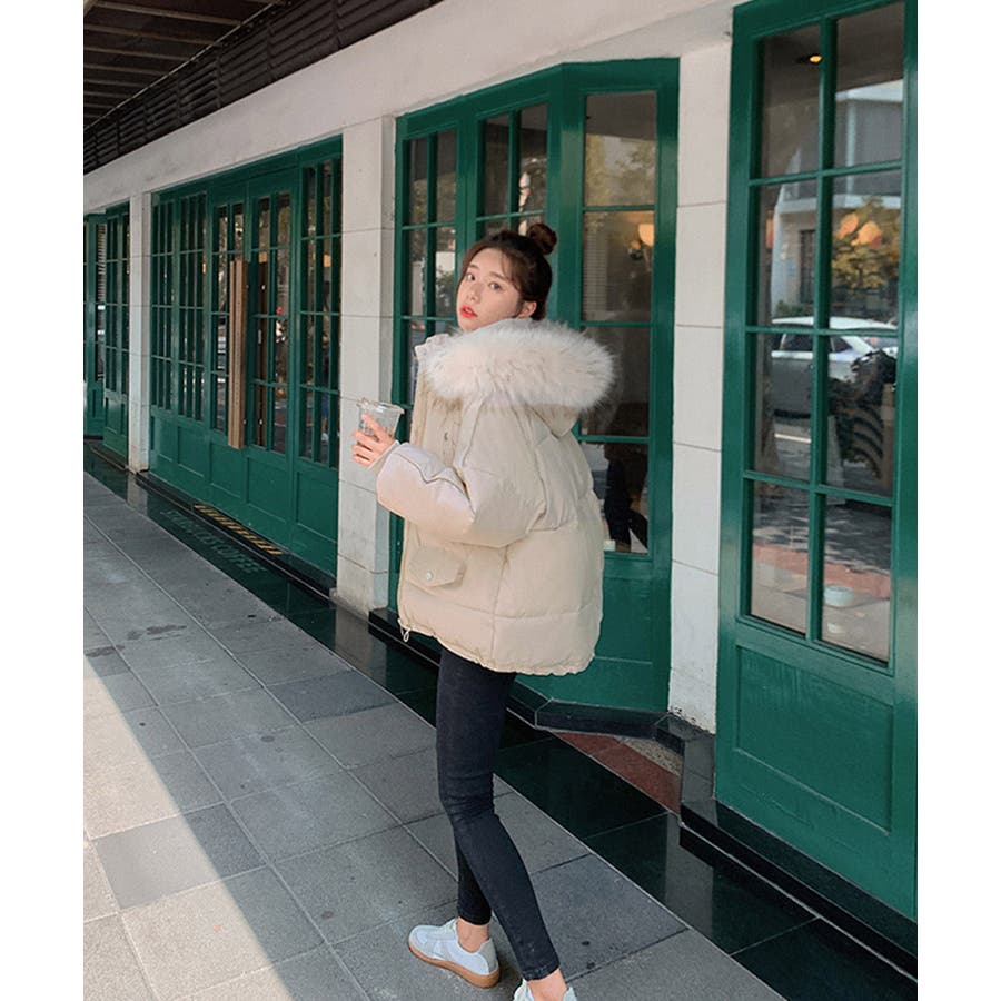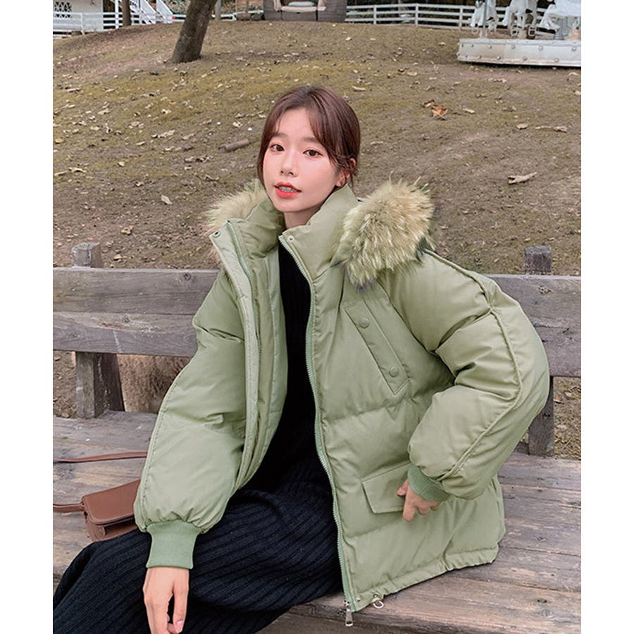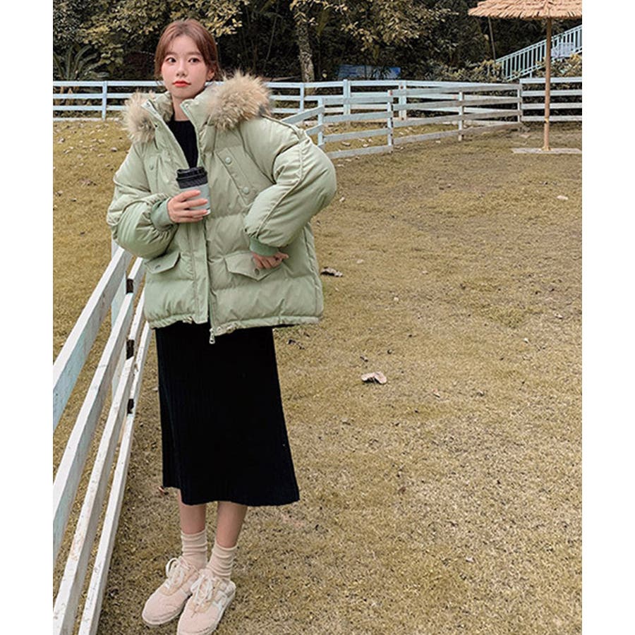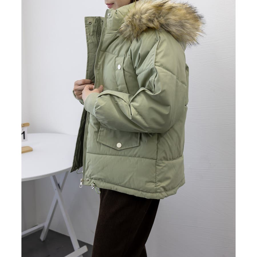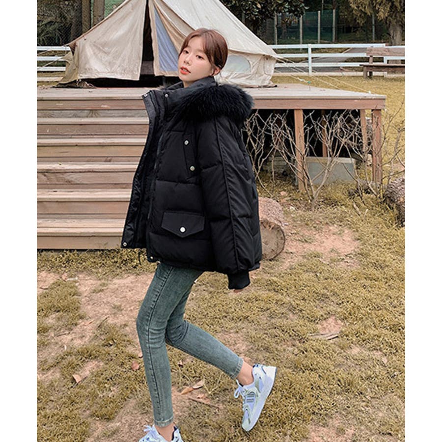 フェイクダウン冬服 ウィンターコート黒 フードファーお洒落