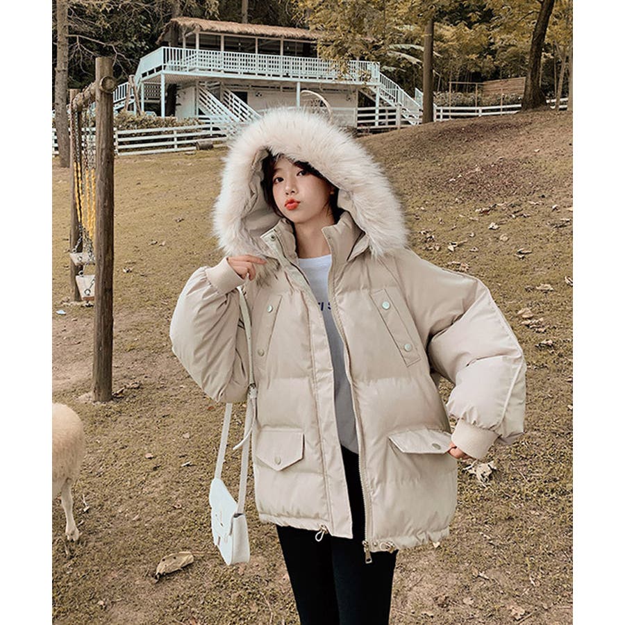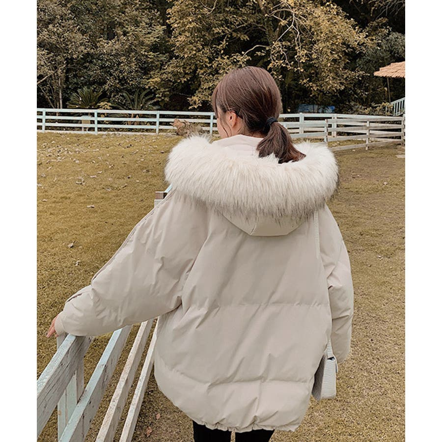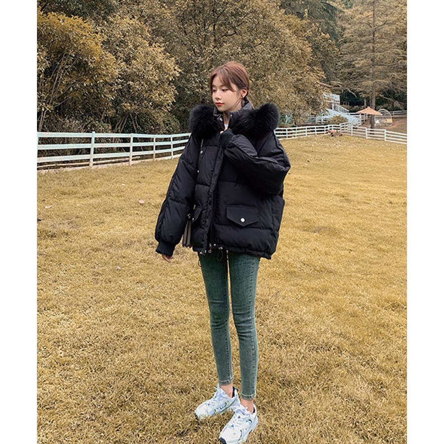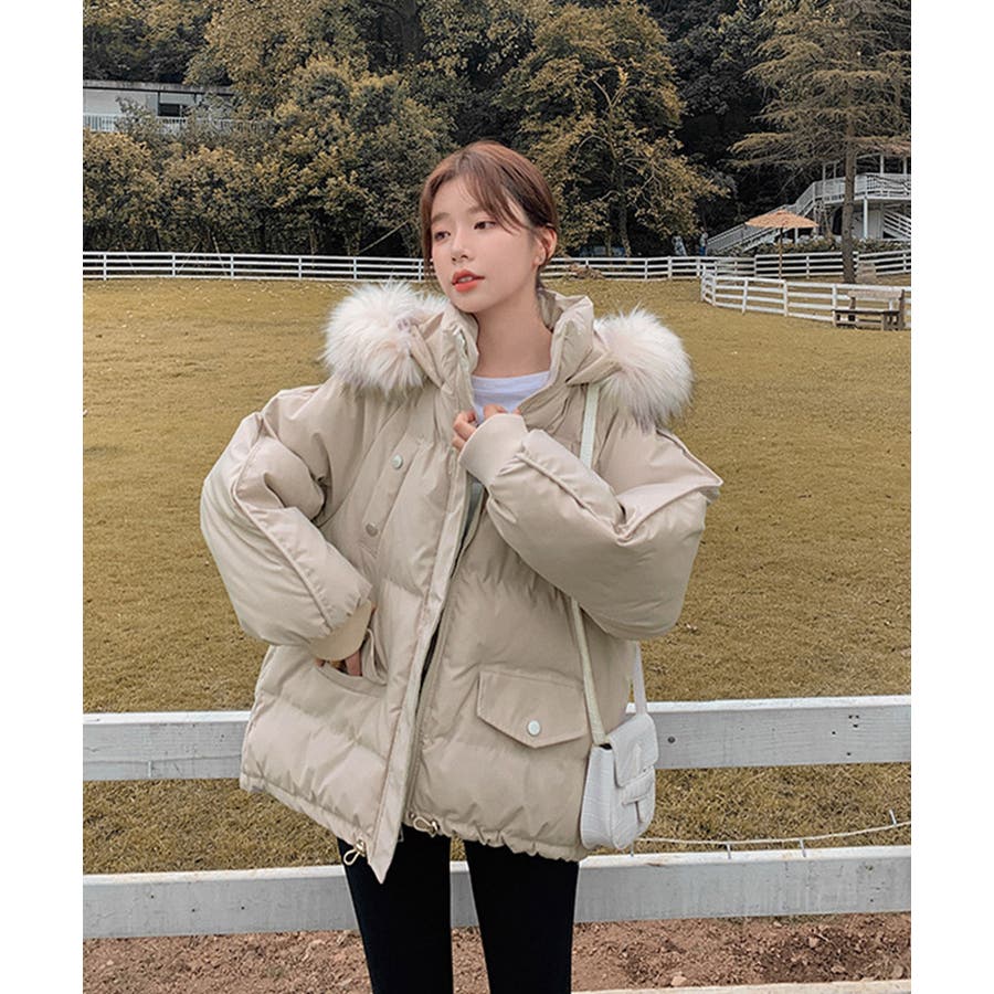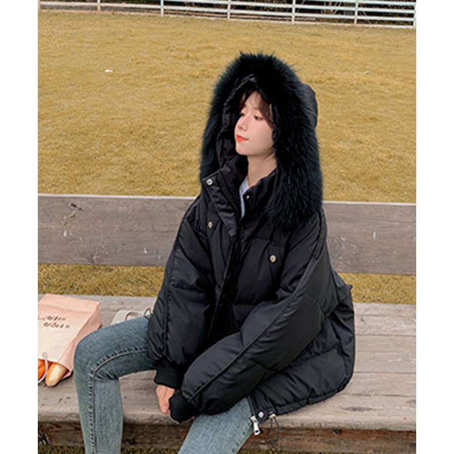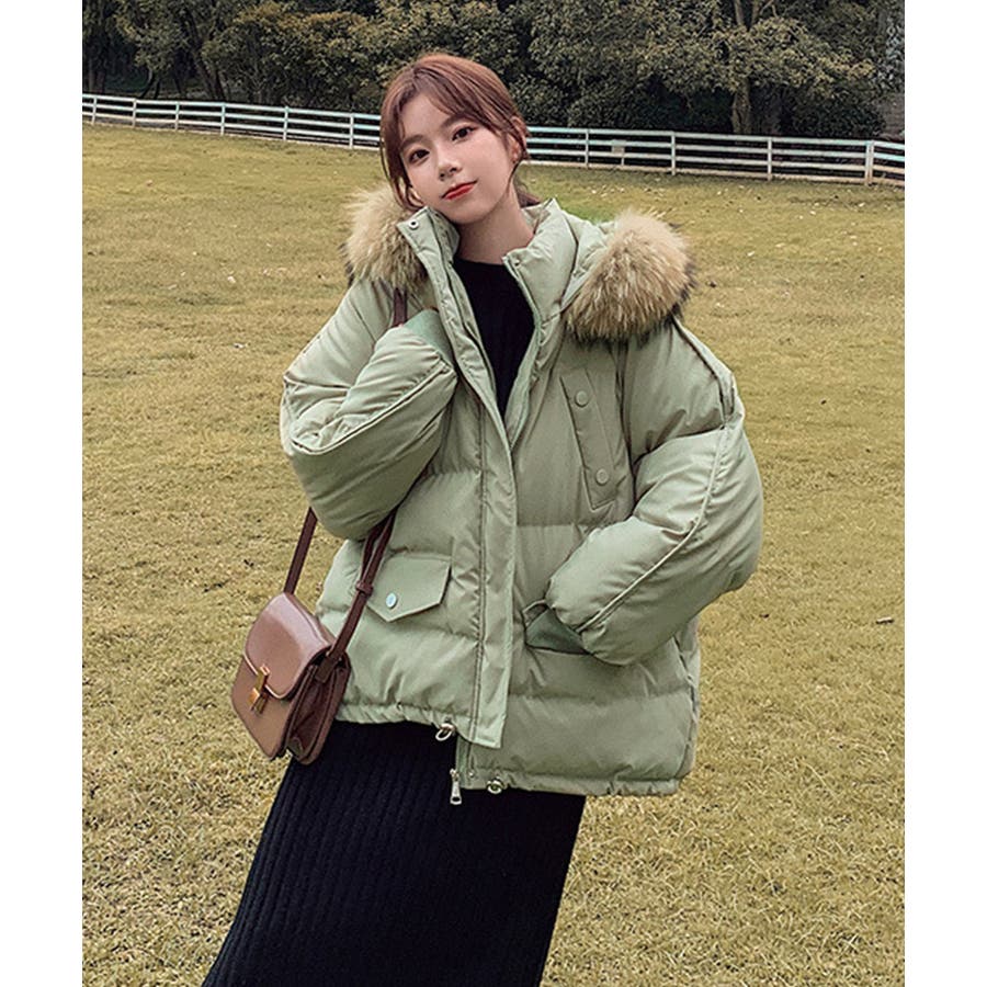 フェイクダウン冬服 ウィンターコート黒 フードファーお洒落