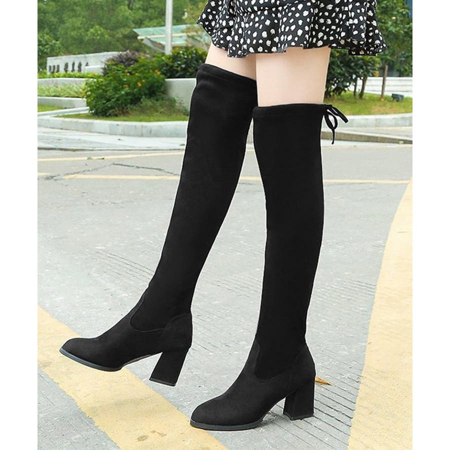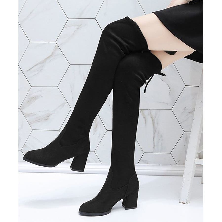 太ヒールブーツ大人 おしゃれブーツ人気 フィットブーツ韓国