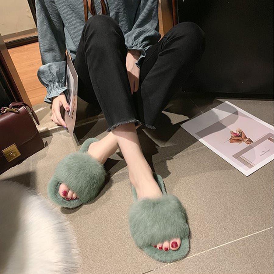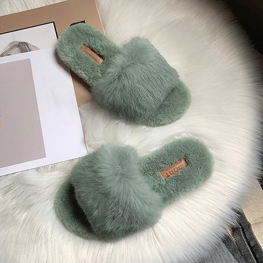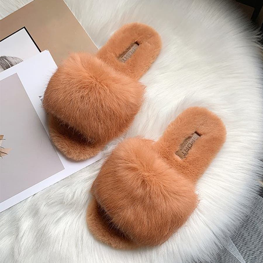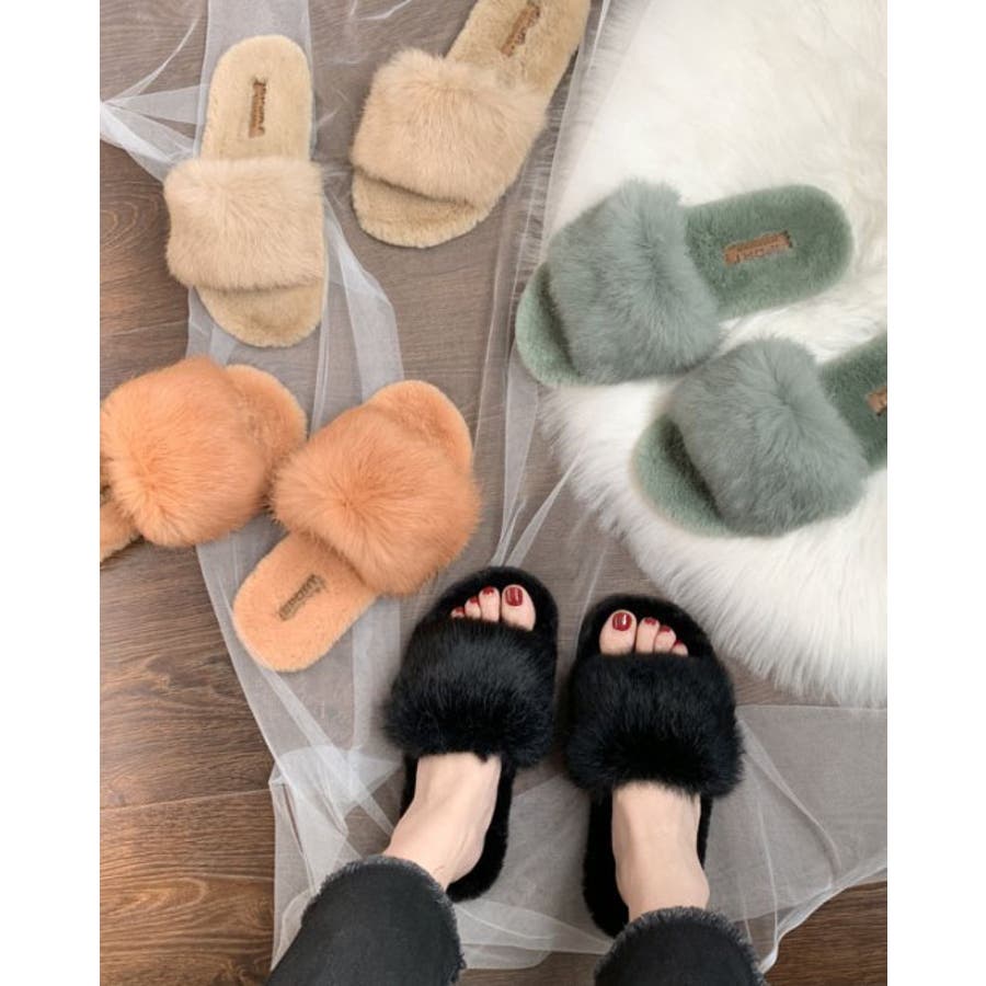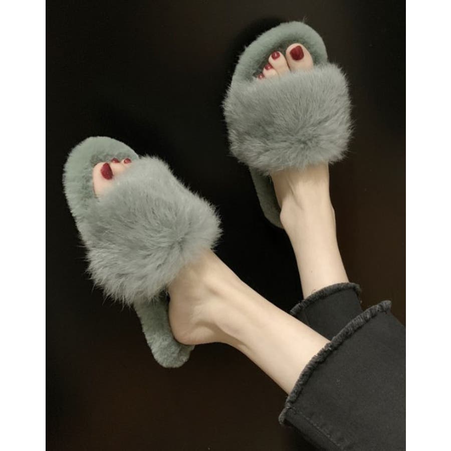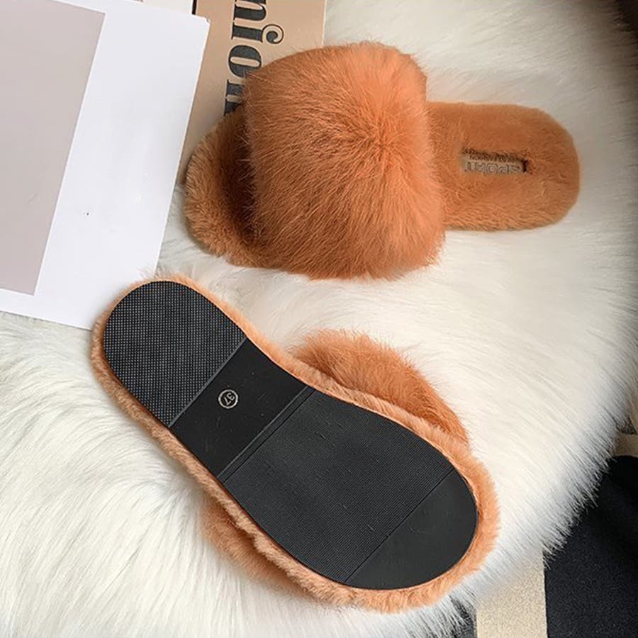 ふわふわのファーが外側はもちろん内側にも足裏にも付いており、まるで毛布の上を歩いているようなふかふかの履き心地