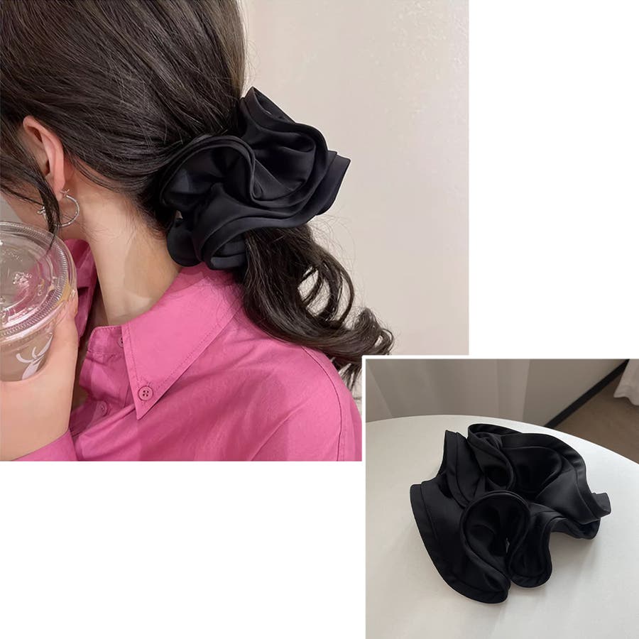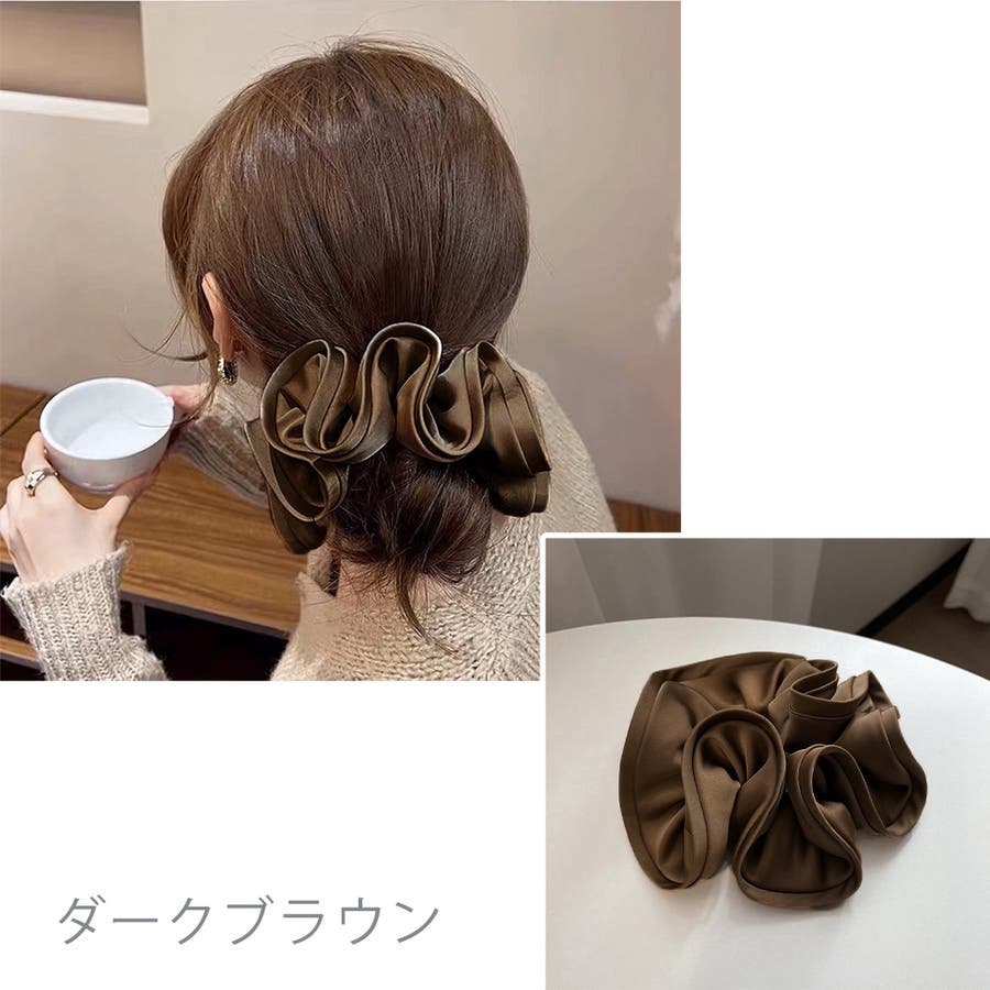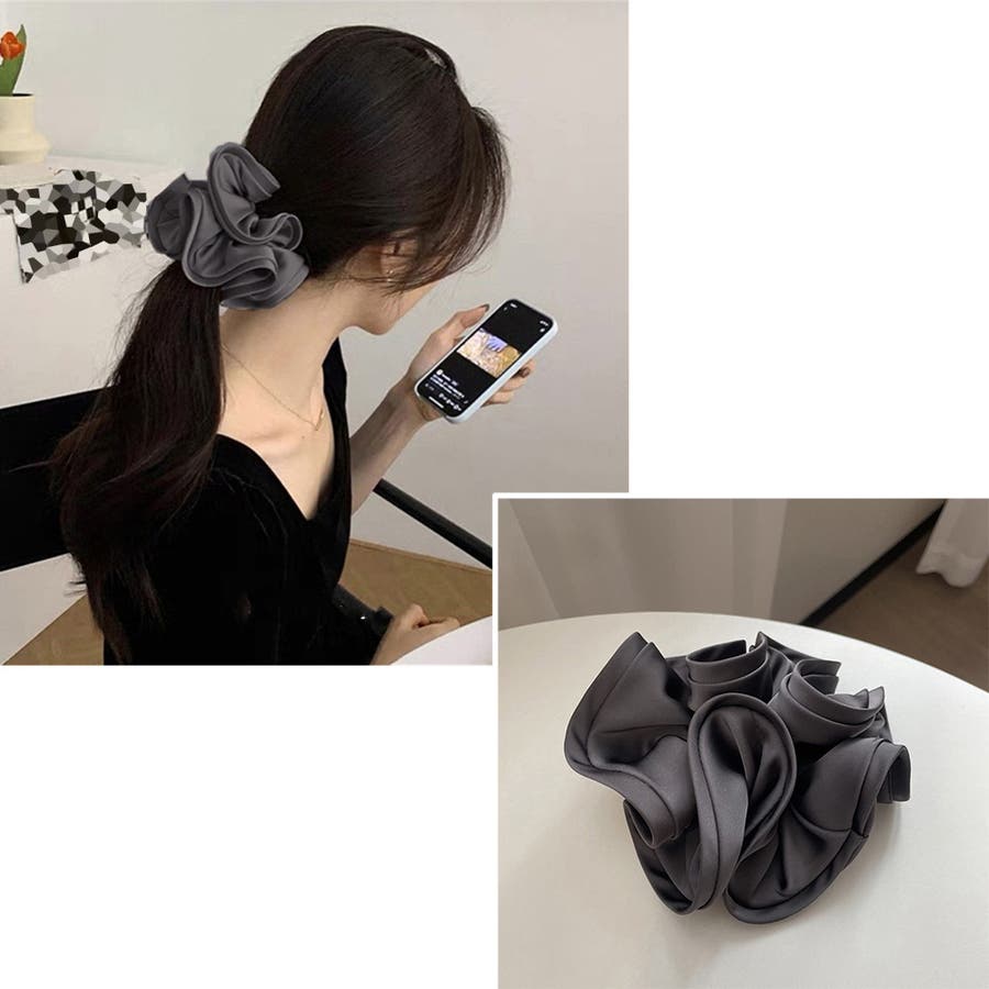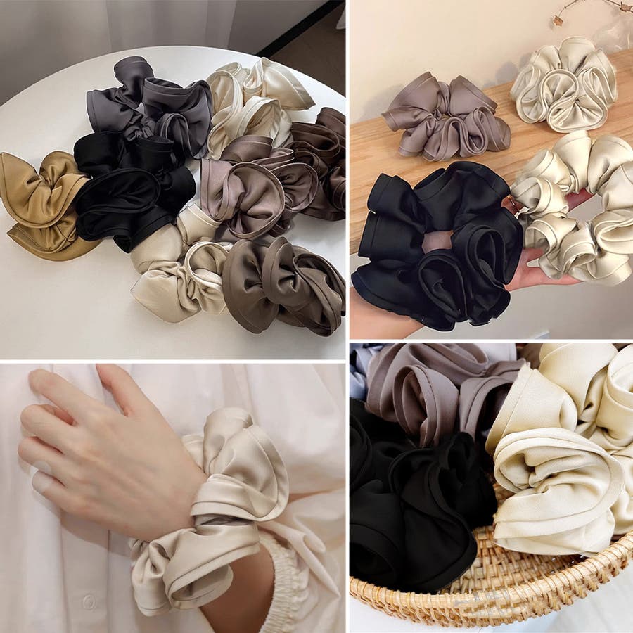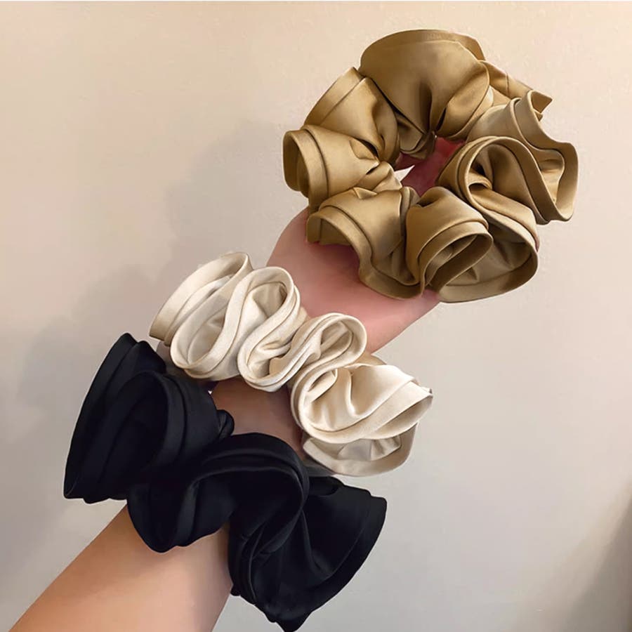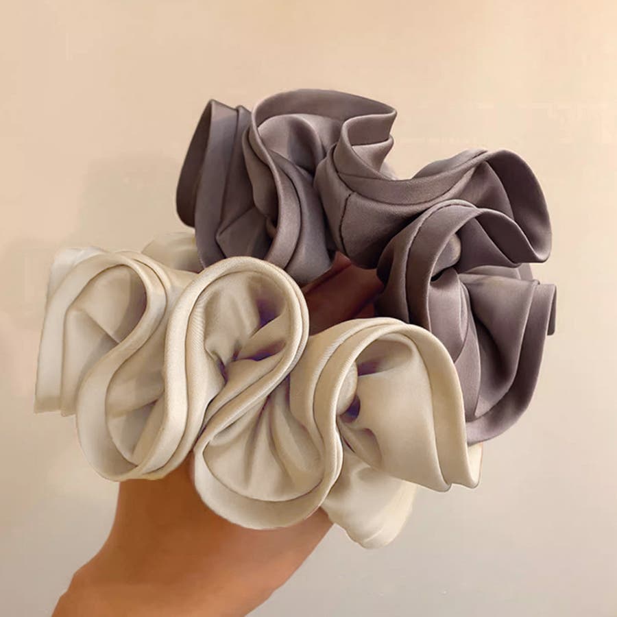 髪に付けるだけで韓国女子のような雰囲気に、ふんわりやさしいサテン生地が上品な光沢感のある大人可愛い大きめシュシュ