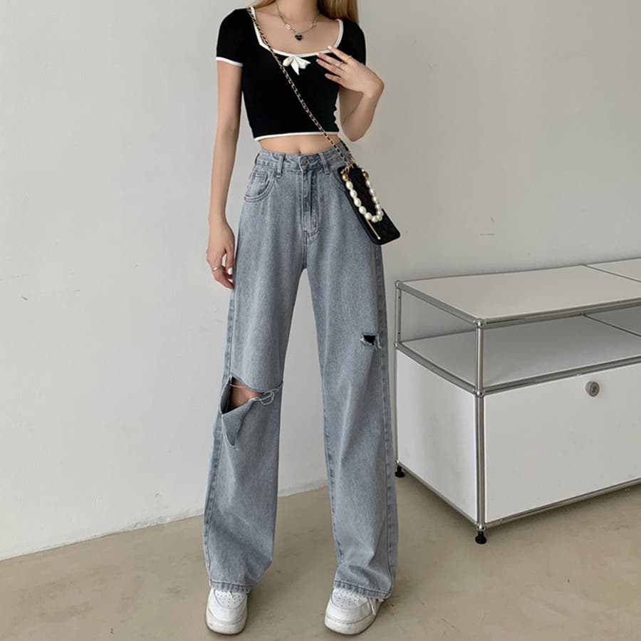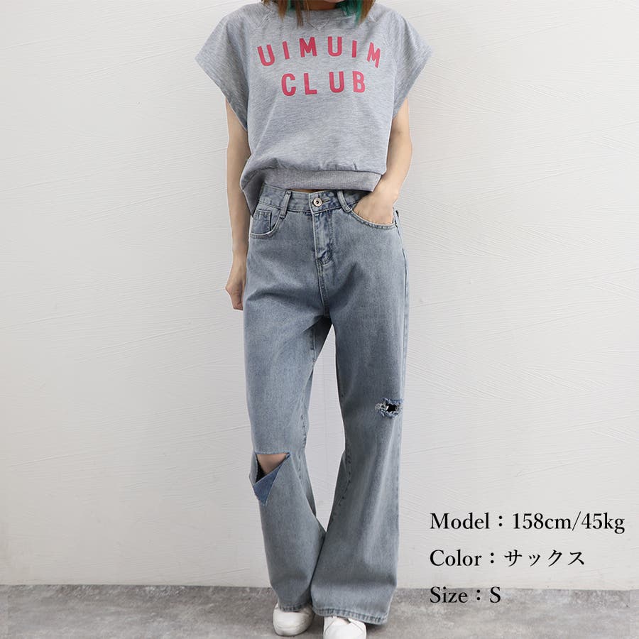 カットデニム 韓国 ゆったり ボトムス デニム ストリート