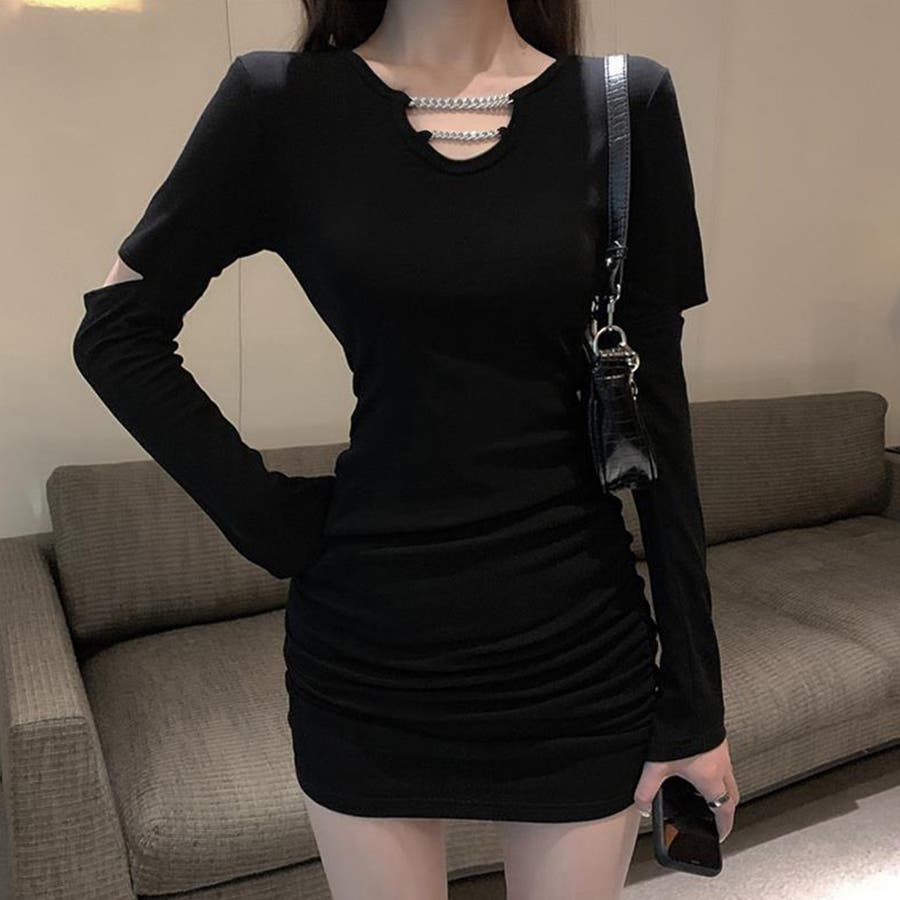 スタイルアップ無地 細見えワンピ可愛い ストリート系ワンピ