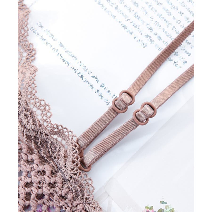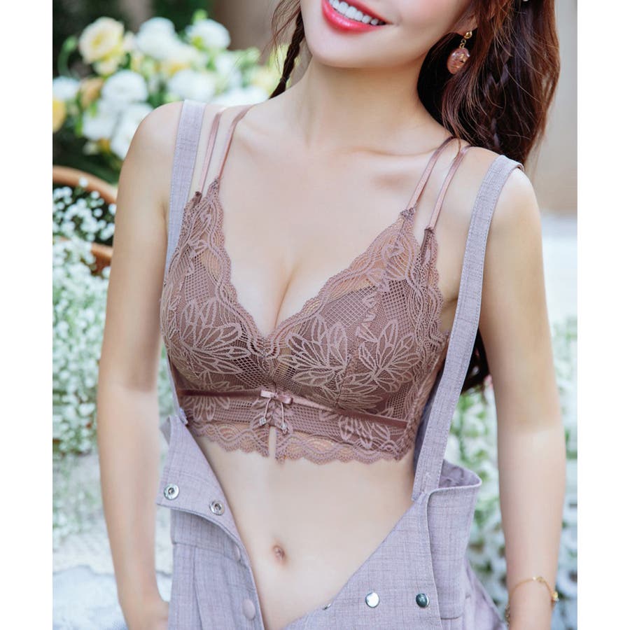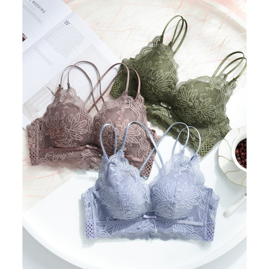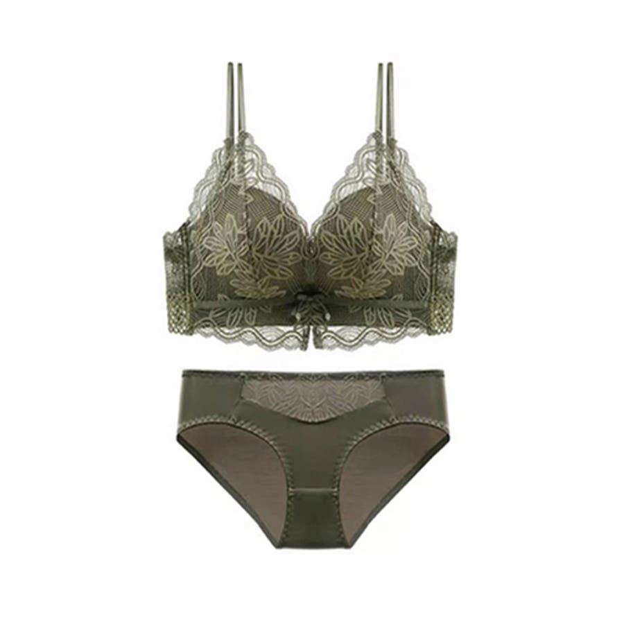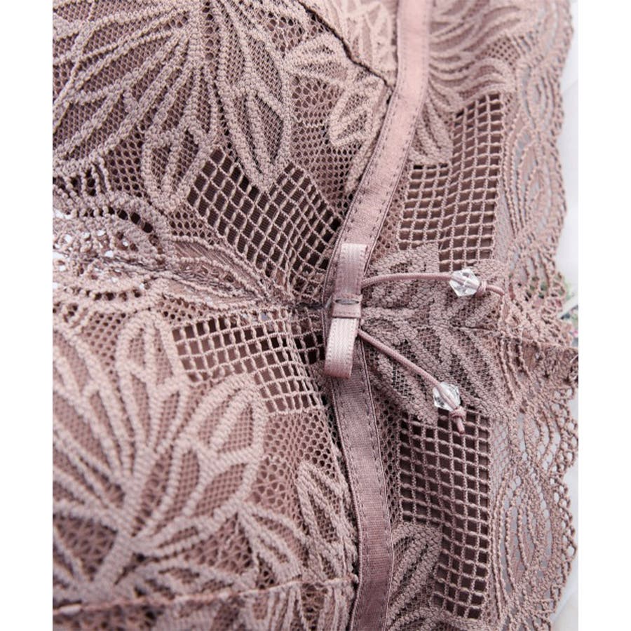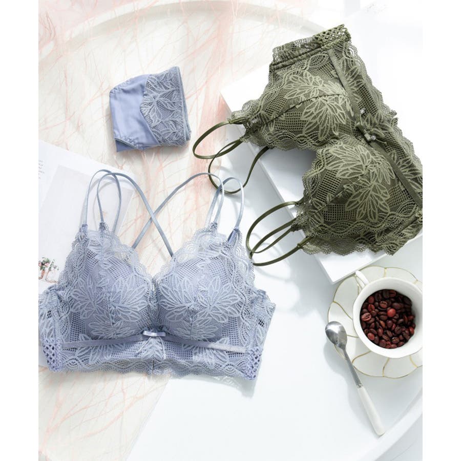 繊細なボタニカル柄レースを使用、セクシーで美しいワイヤーレス下着上下セット