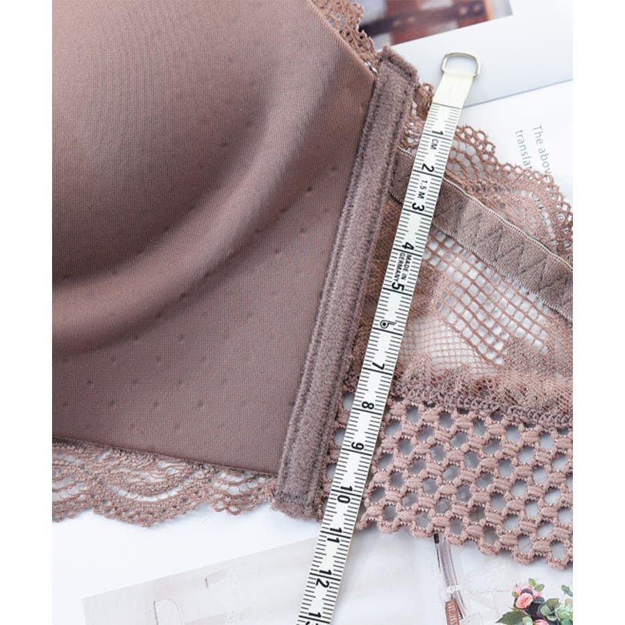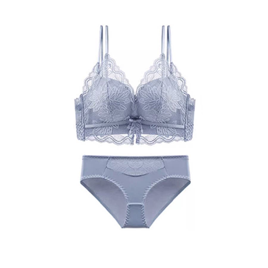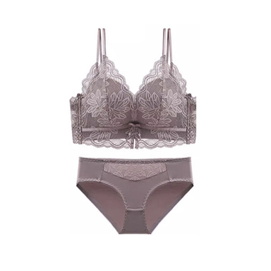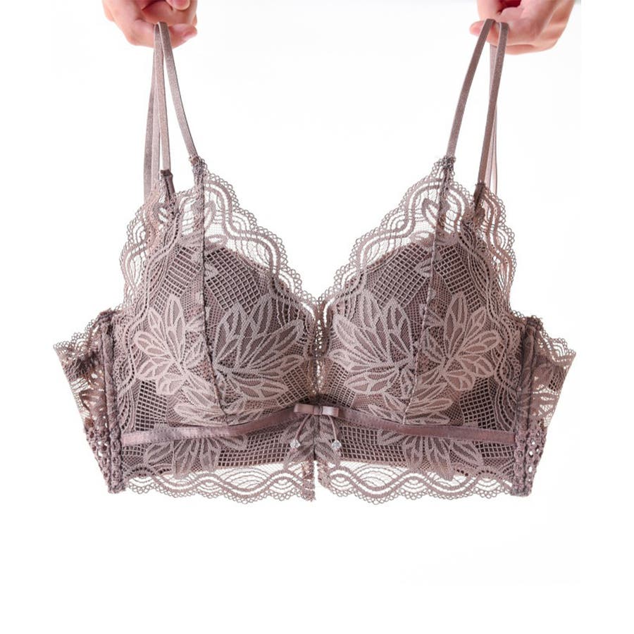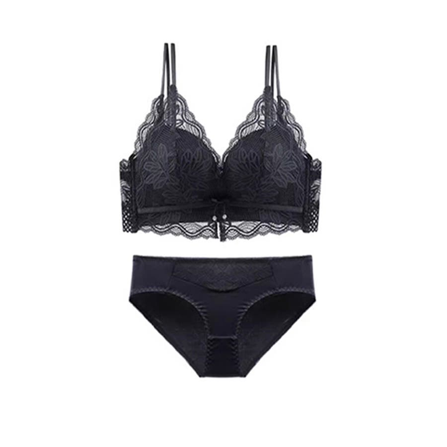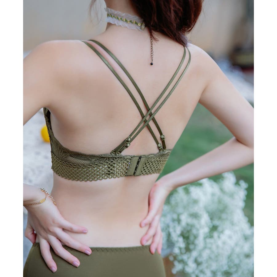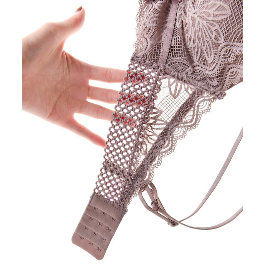 繊細なボタニカル柄レースを使用、セクシーで美しいワイヤーレス下着上下セット