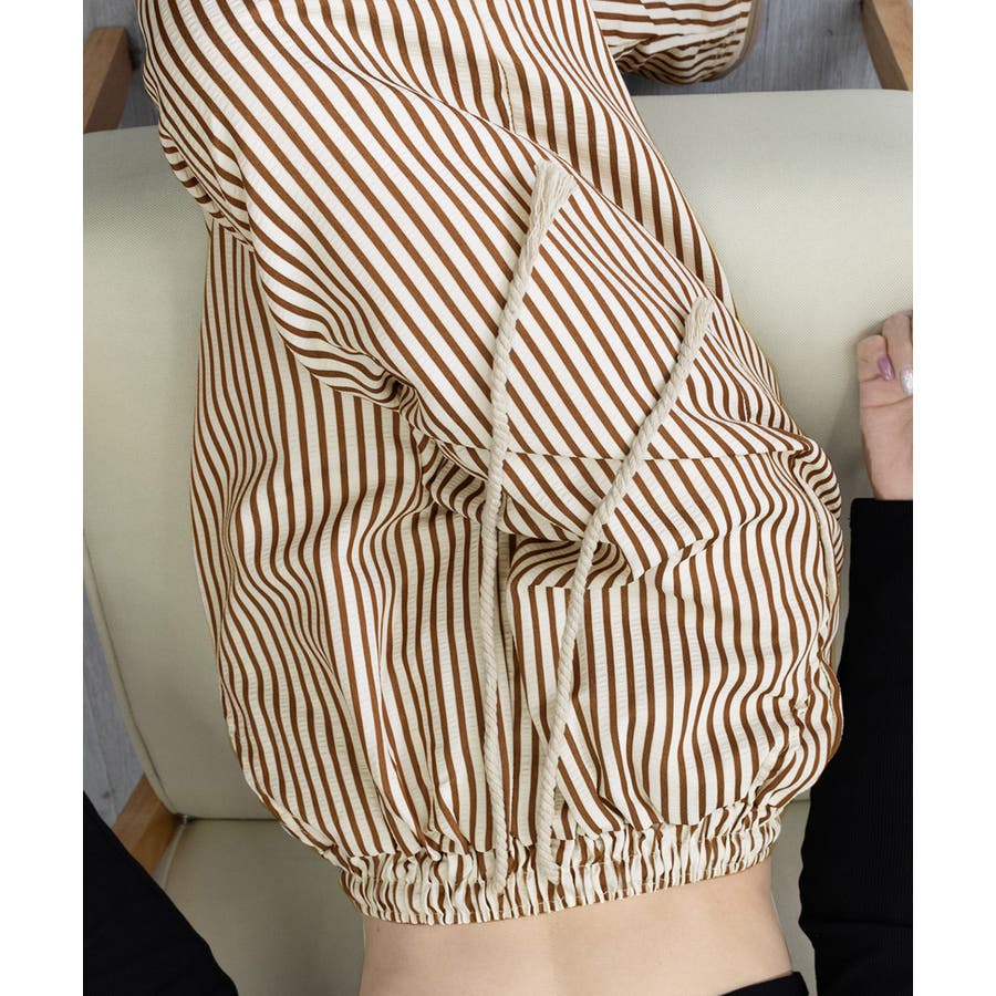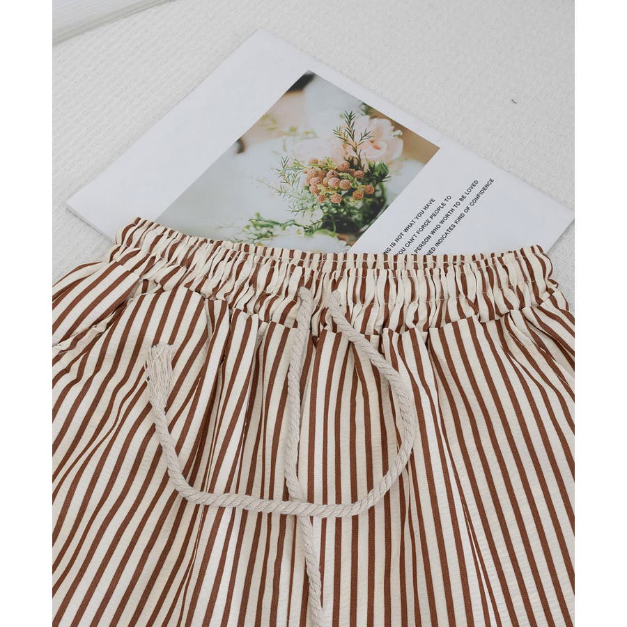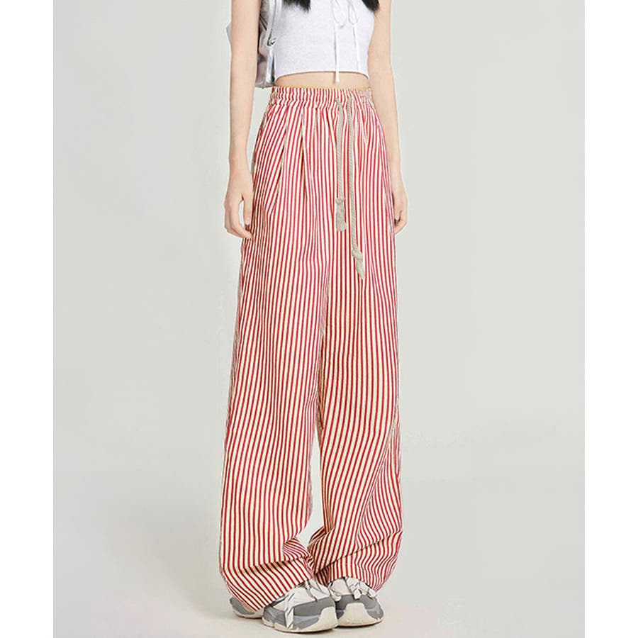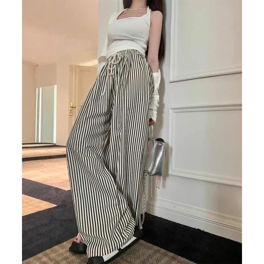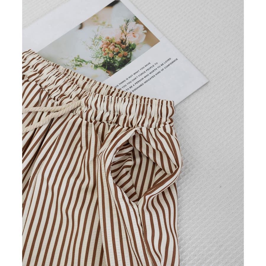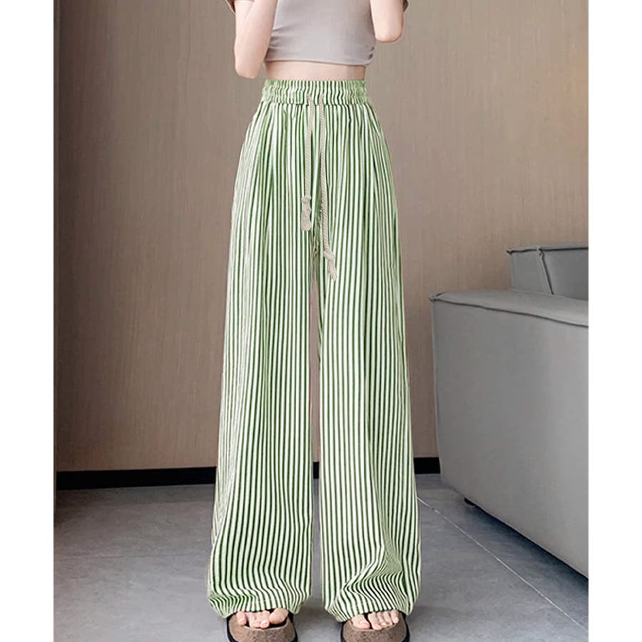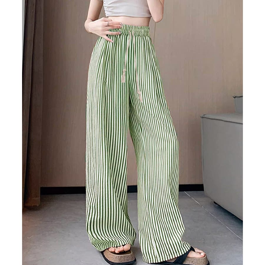ストライプ柄が爽やかで、抜け感のあるセミワイドパンツ。