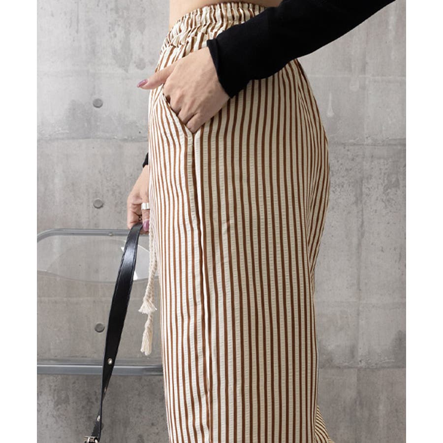 ストライプセミワイドパンツ ハイウエスト