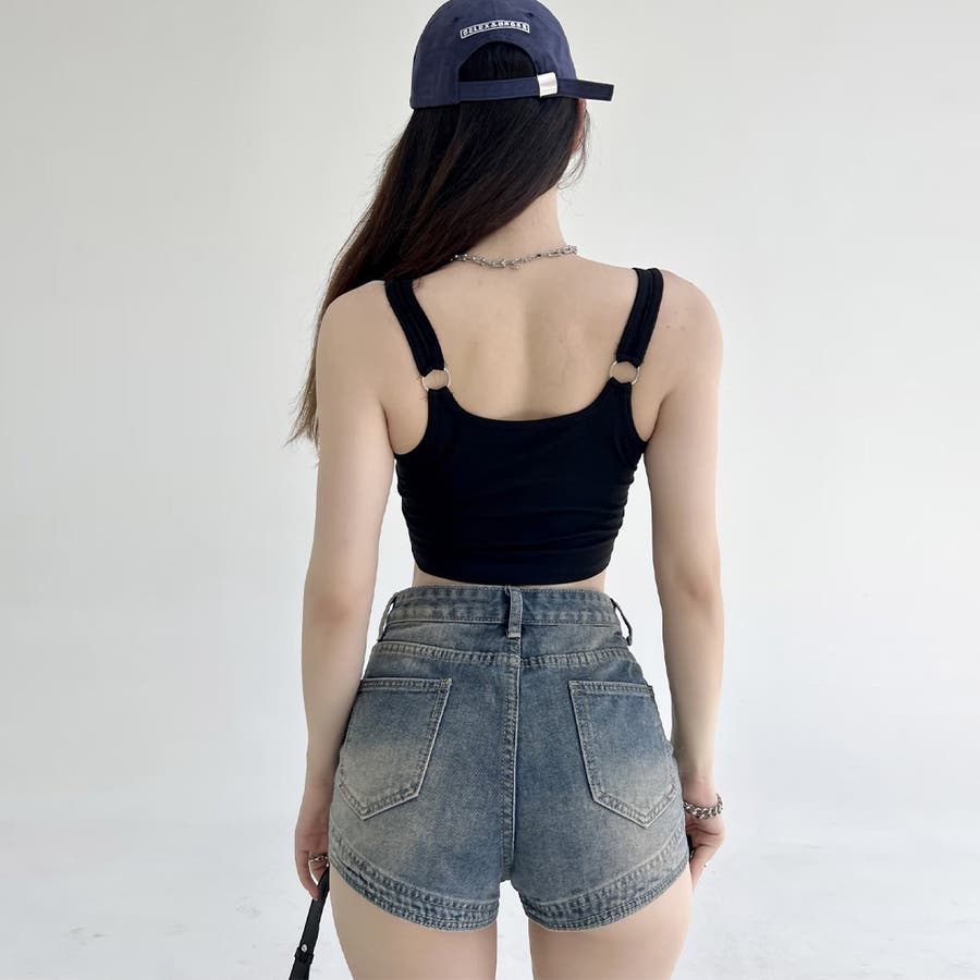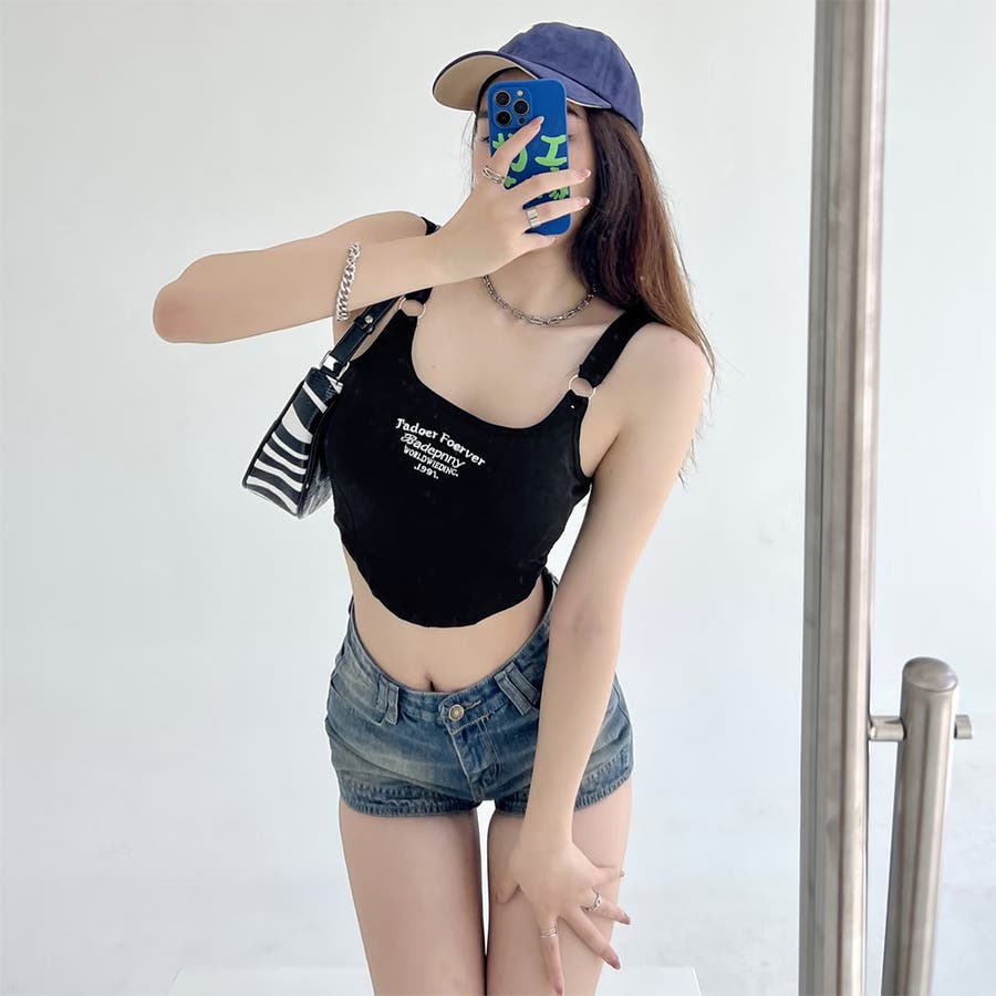 カップ付き タンクトップ ショート丈韓国