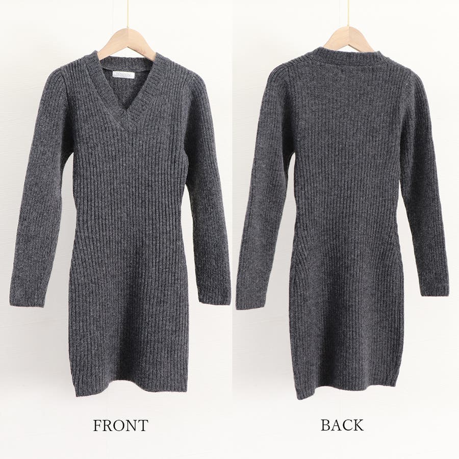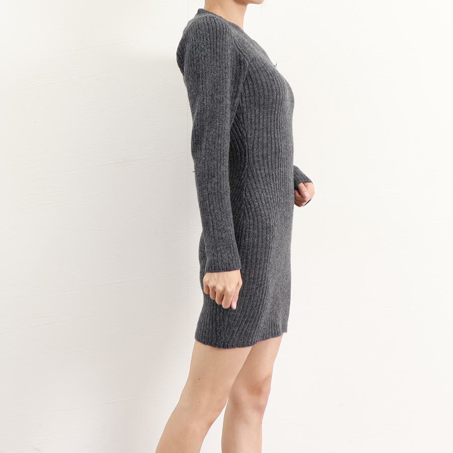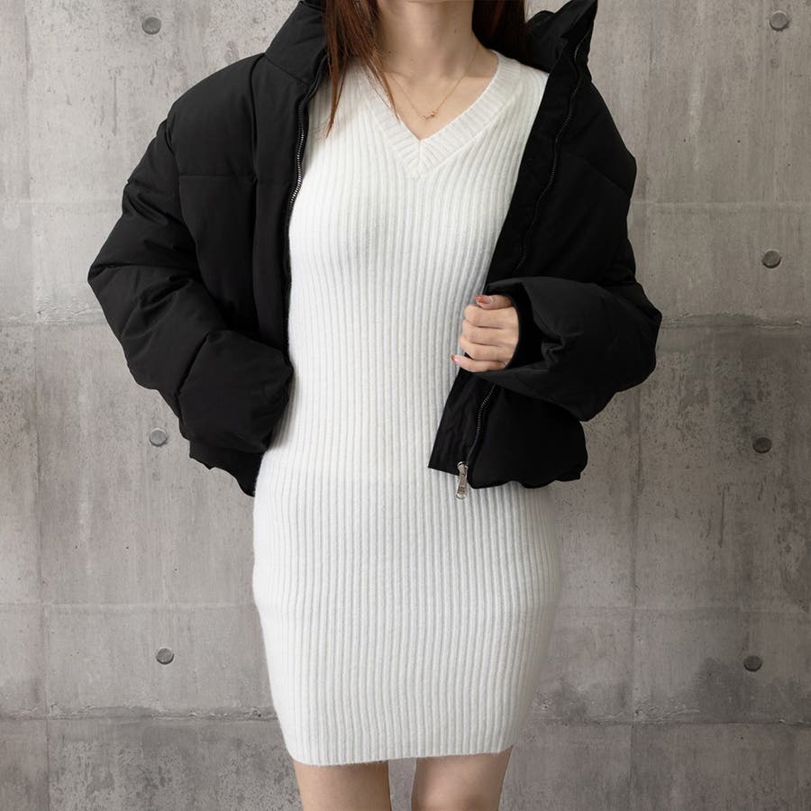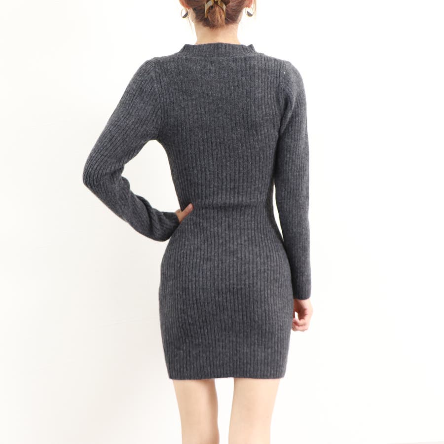 体にぴったりフィットするリブニット素材のタイトミニワンピース