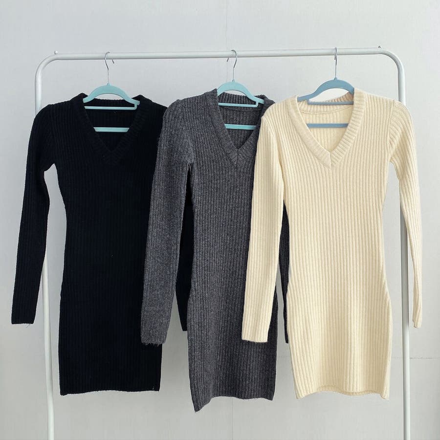 無地膝上ワンピース 着回しニットワンピ インナーワンピ長袖
