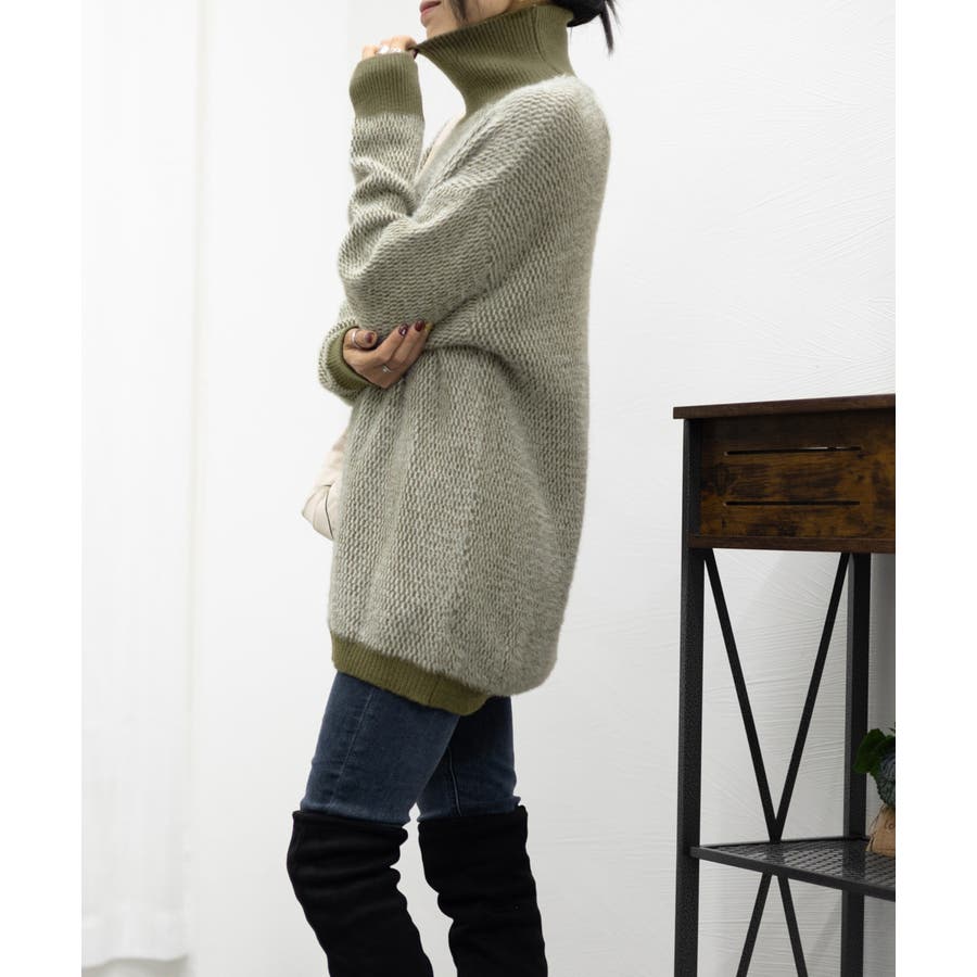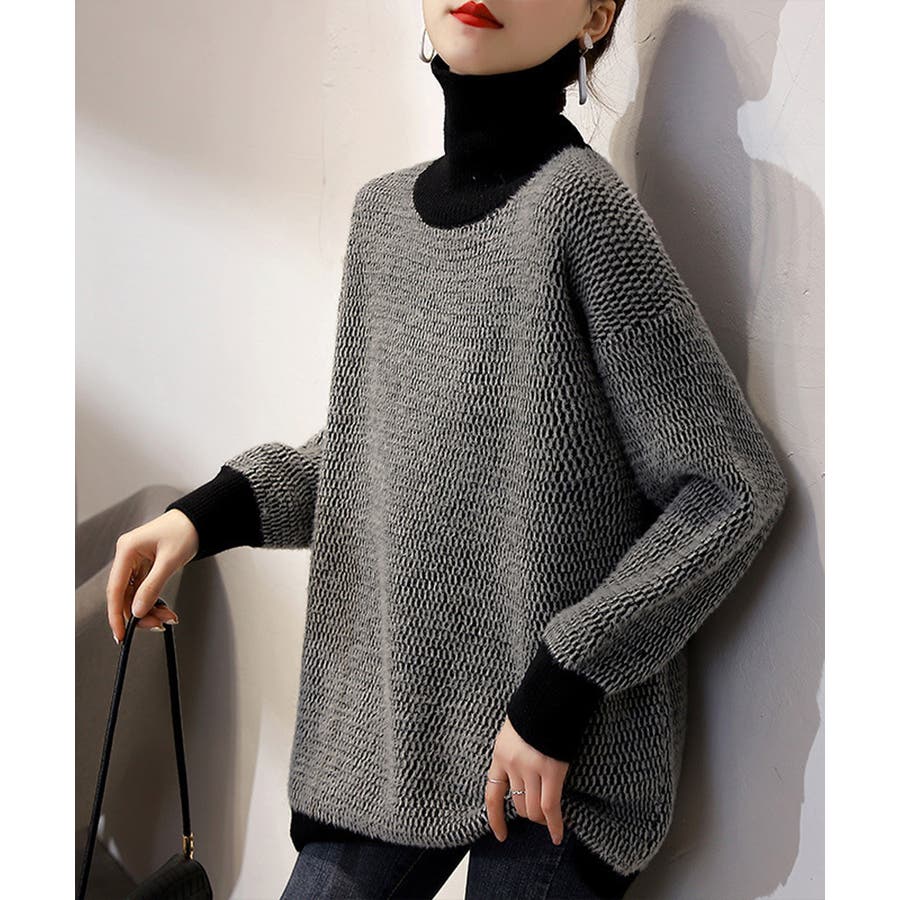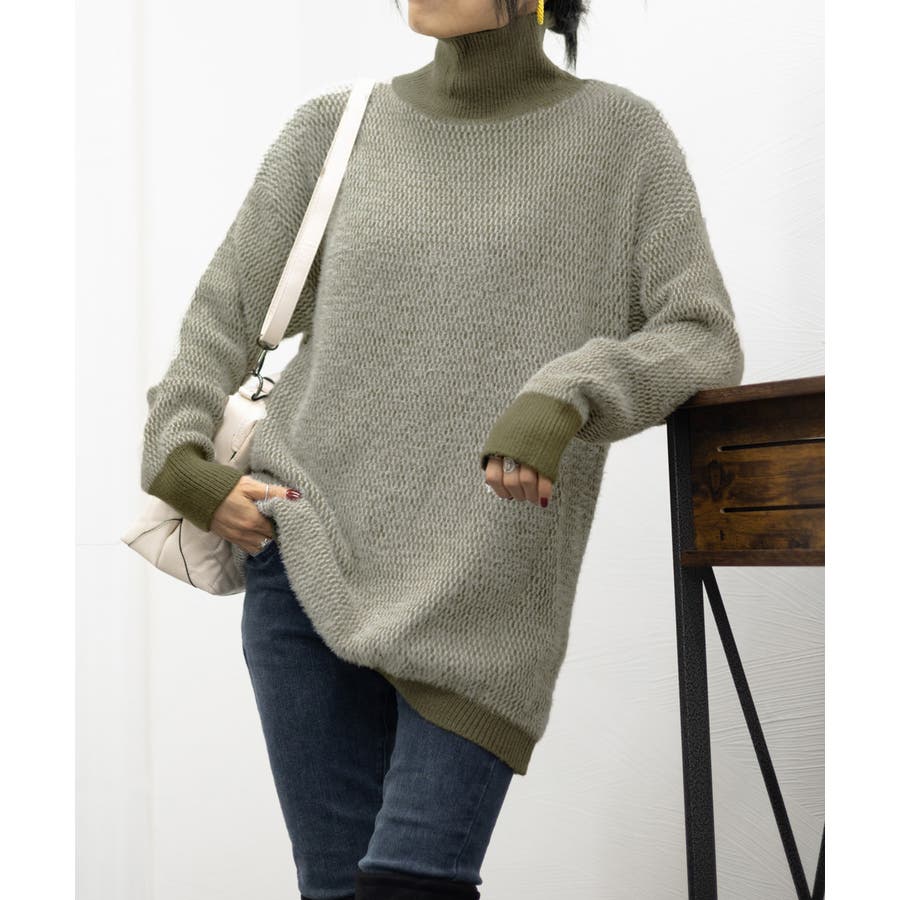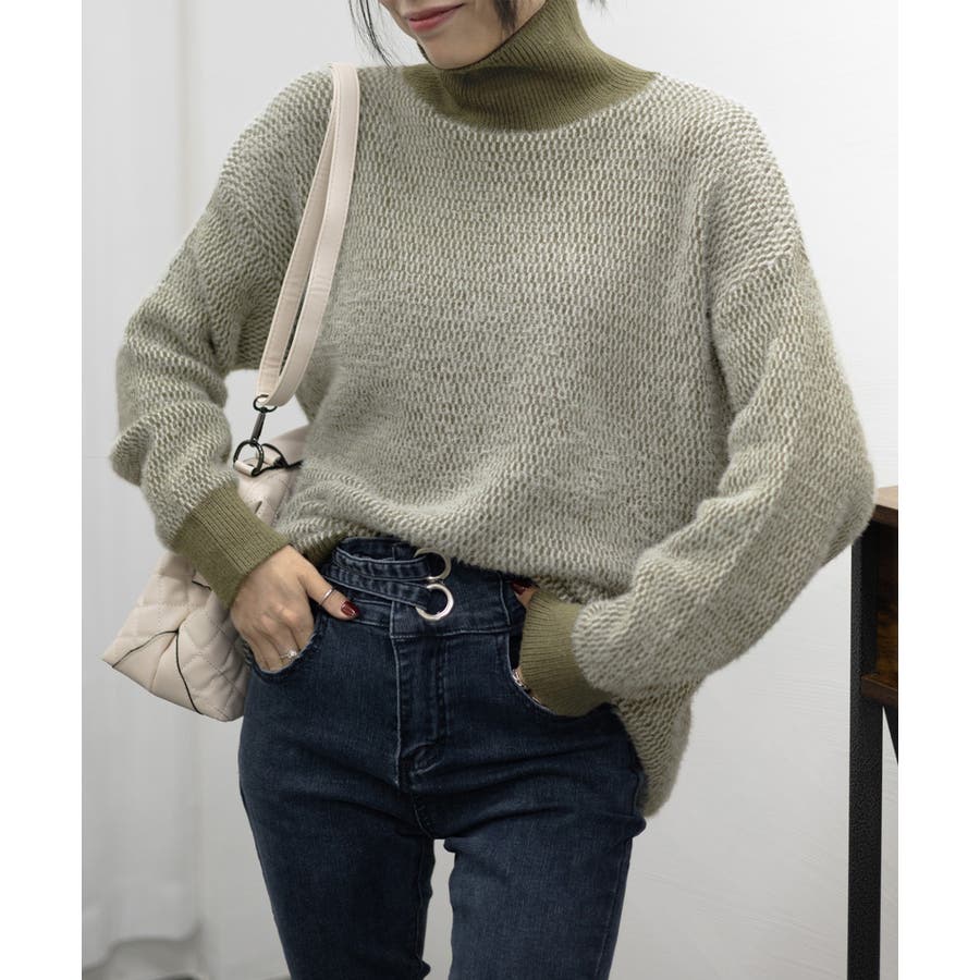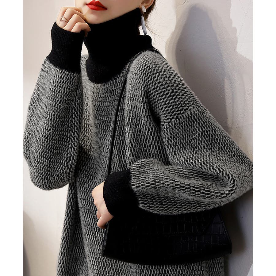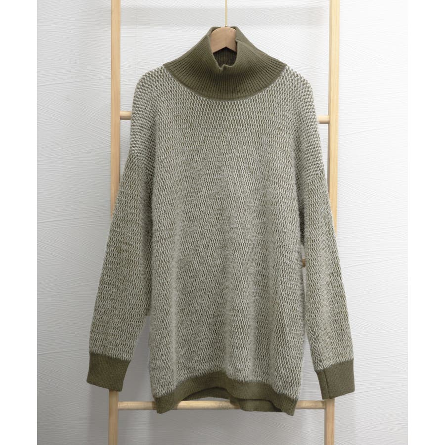 シンプルなデザインながらも、タートルネックが首元を温かく包み込み、洗練された印象を与えます
