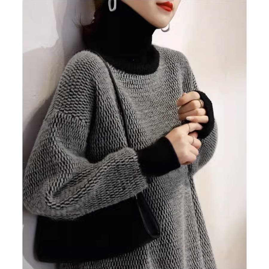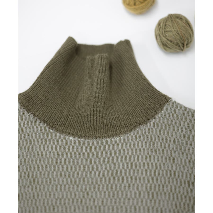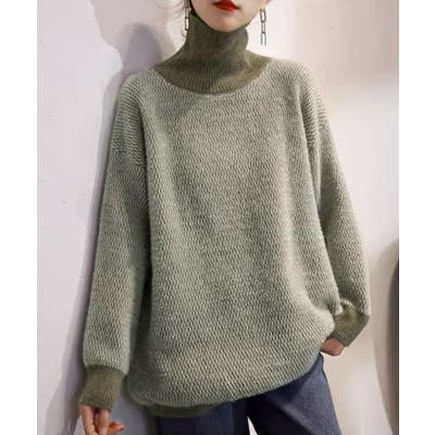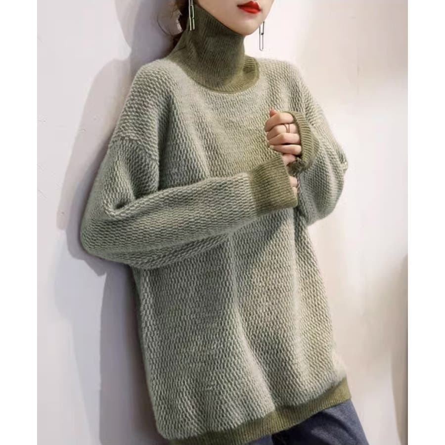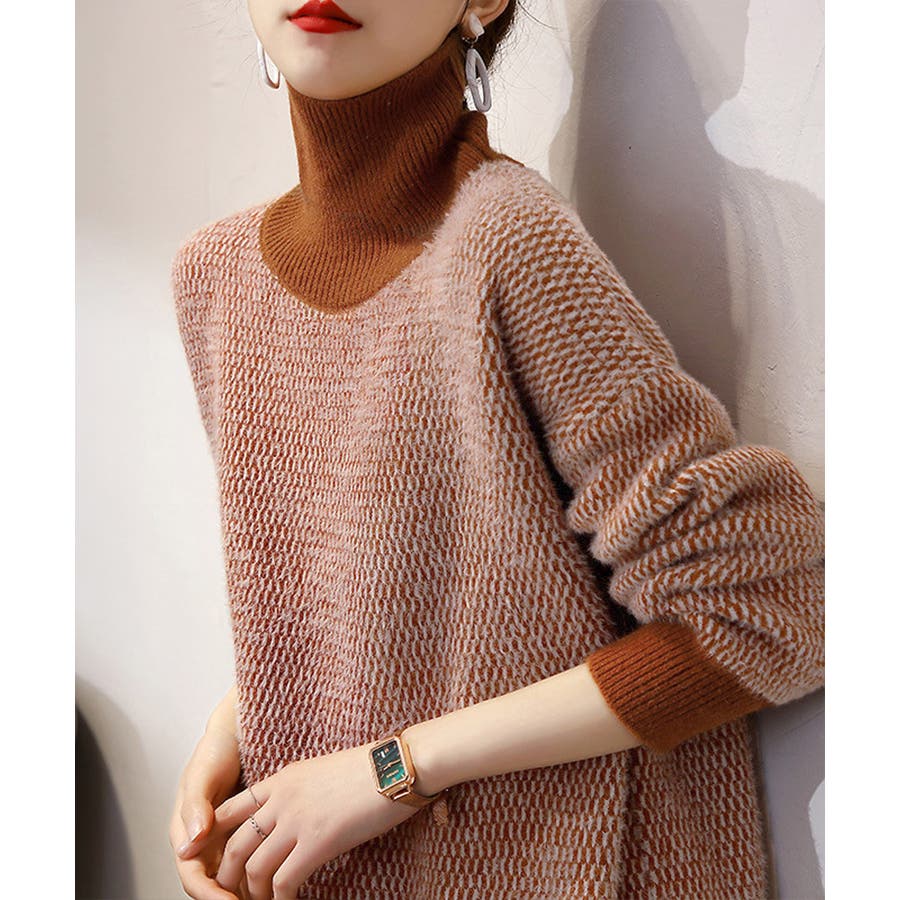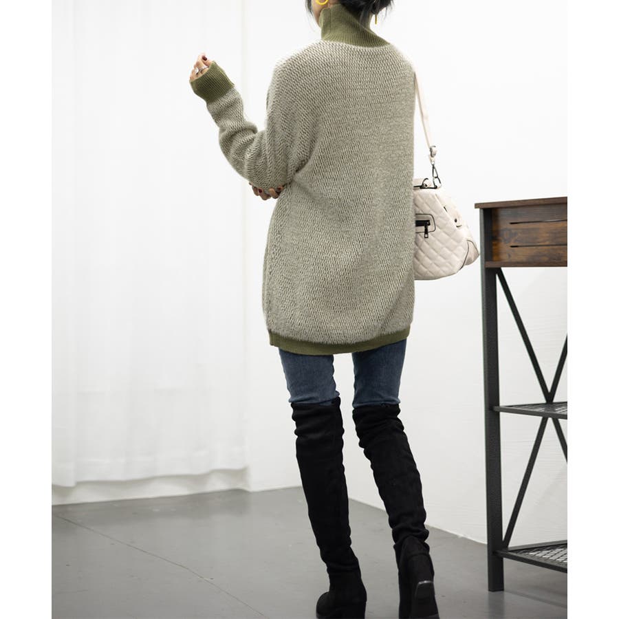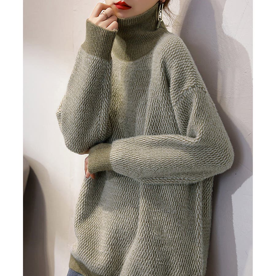 シンプルなデザインながらも、タートルネックが首元を温かく包み込み、洗練された印象を与えます