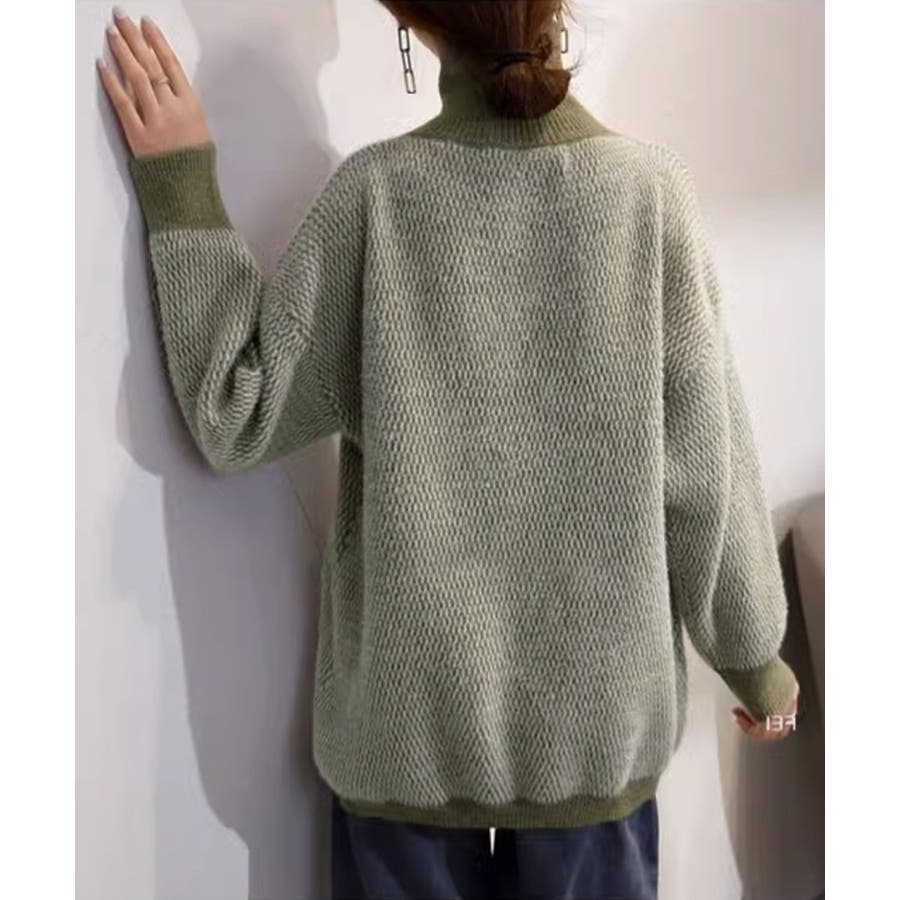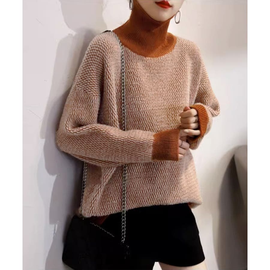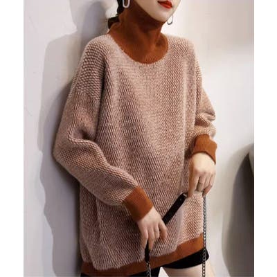 配色ニット レトロ ニットウェアお洒落 ニットソー 着やせ