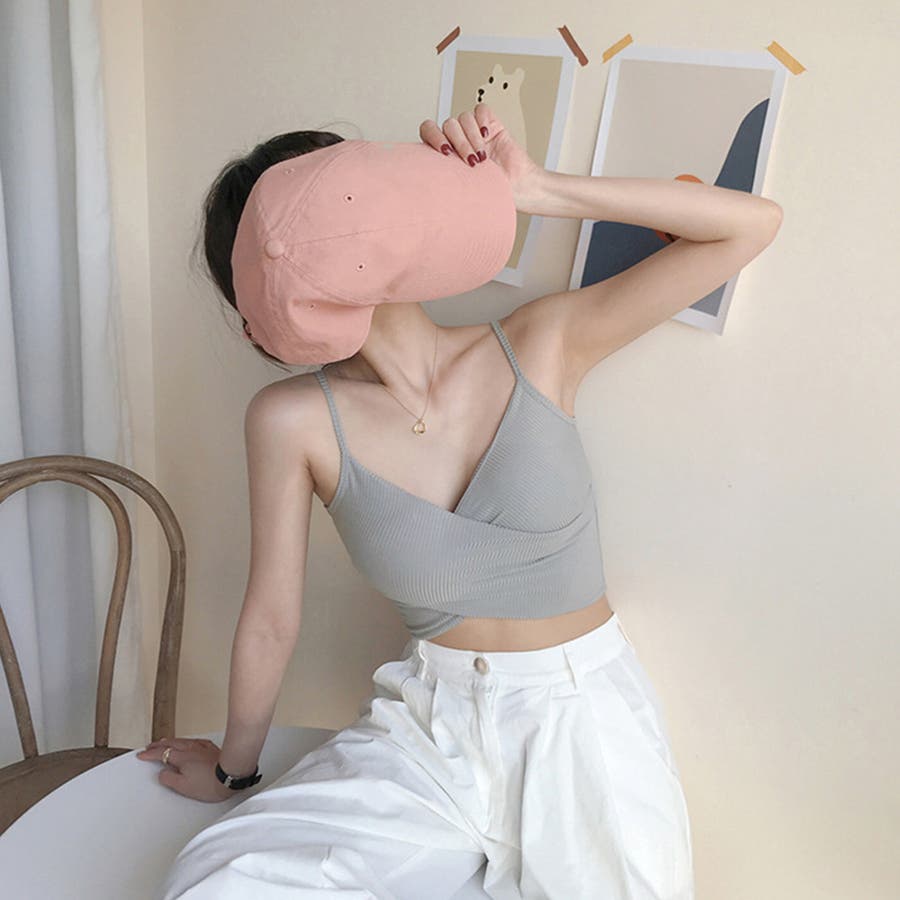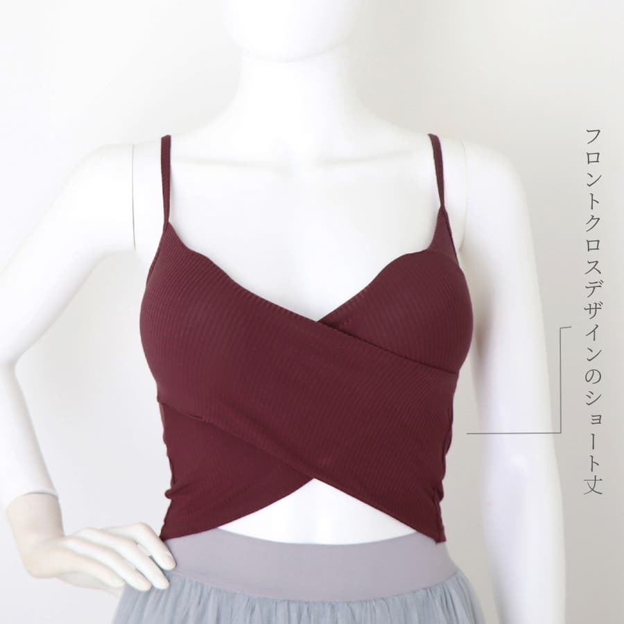 フロントクロスデザインのショート丈カップ付きブラキャミソール