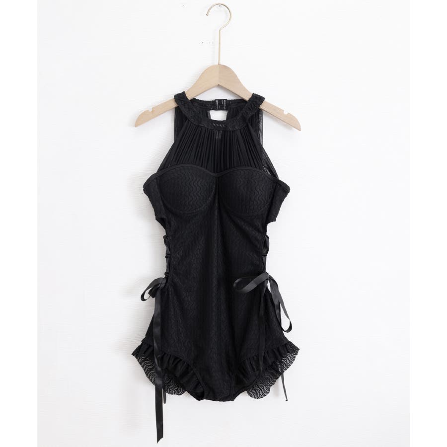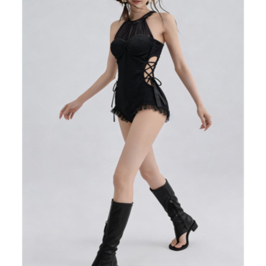 サイドのレースアップがウエストラインを引き締め、抜け感のあるセクシーな印象を演出。