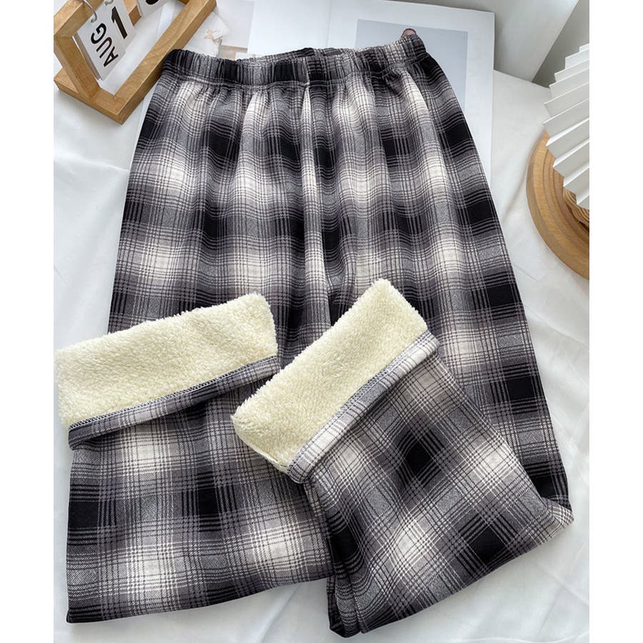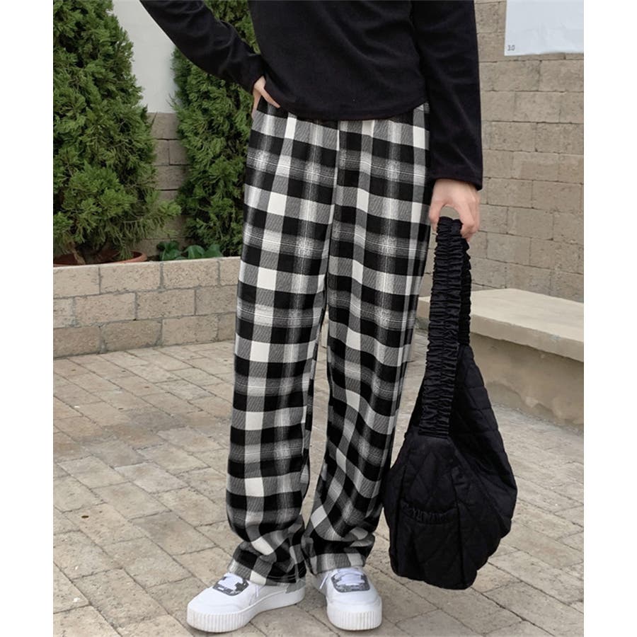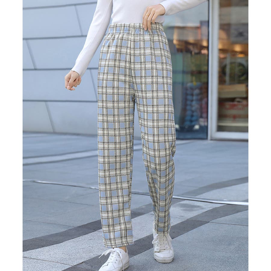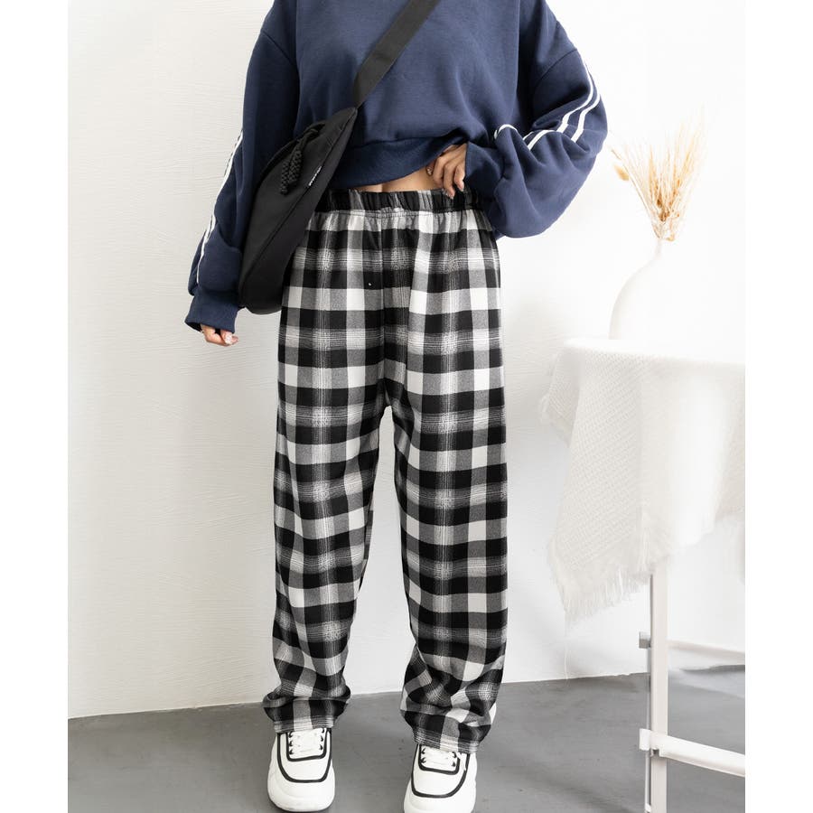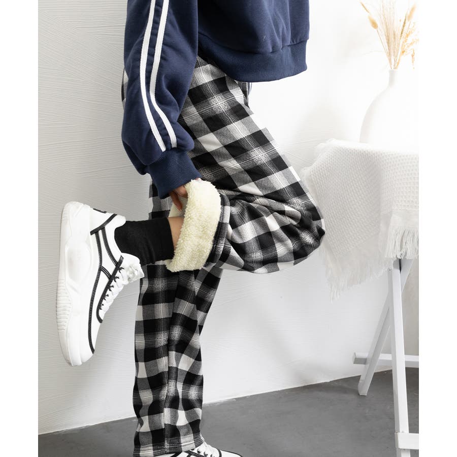 寒い季節にぴったりのチェック柄裏起毛パンツ。