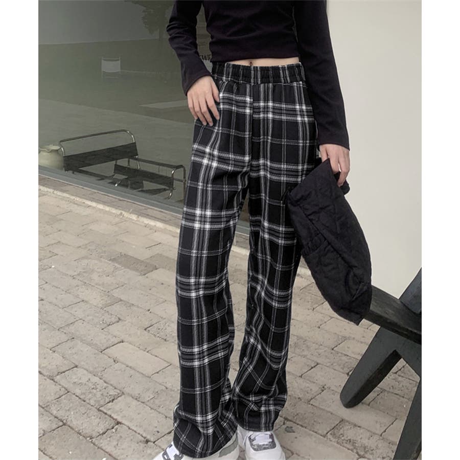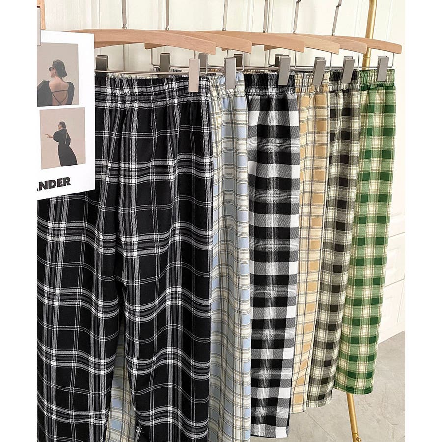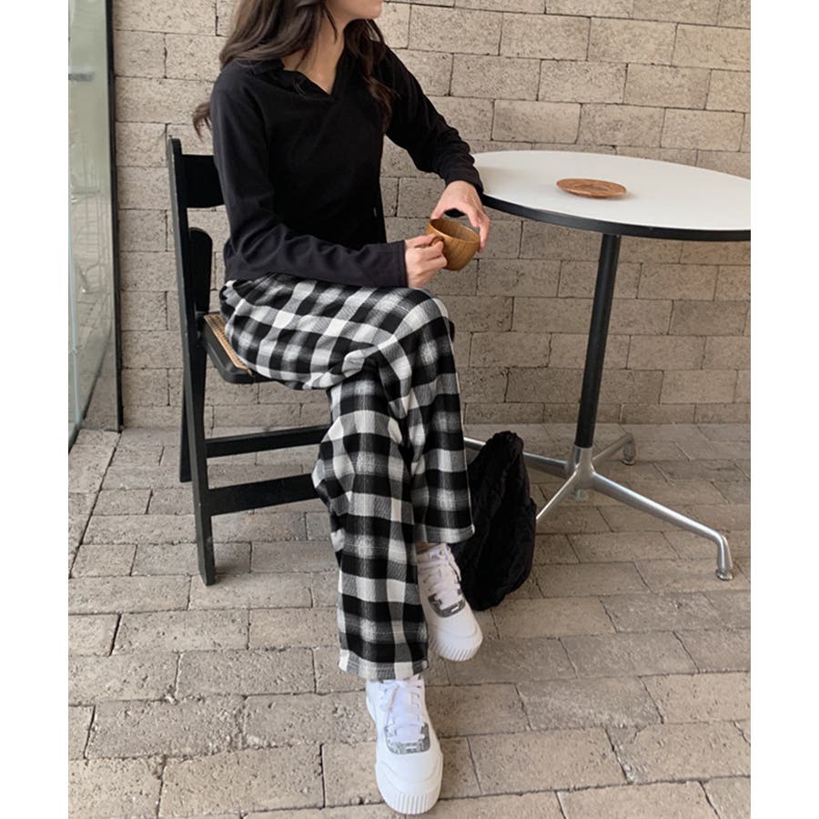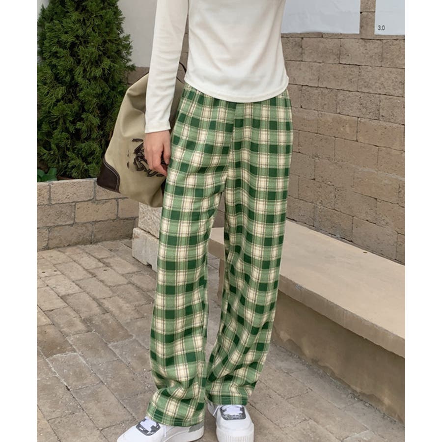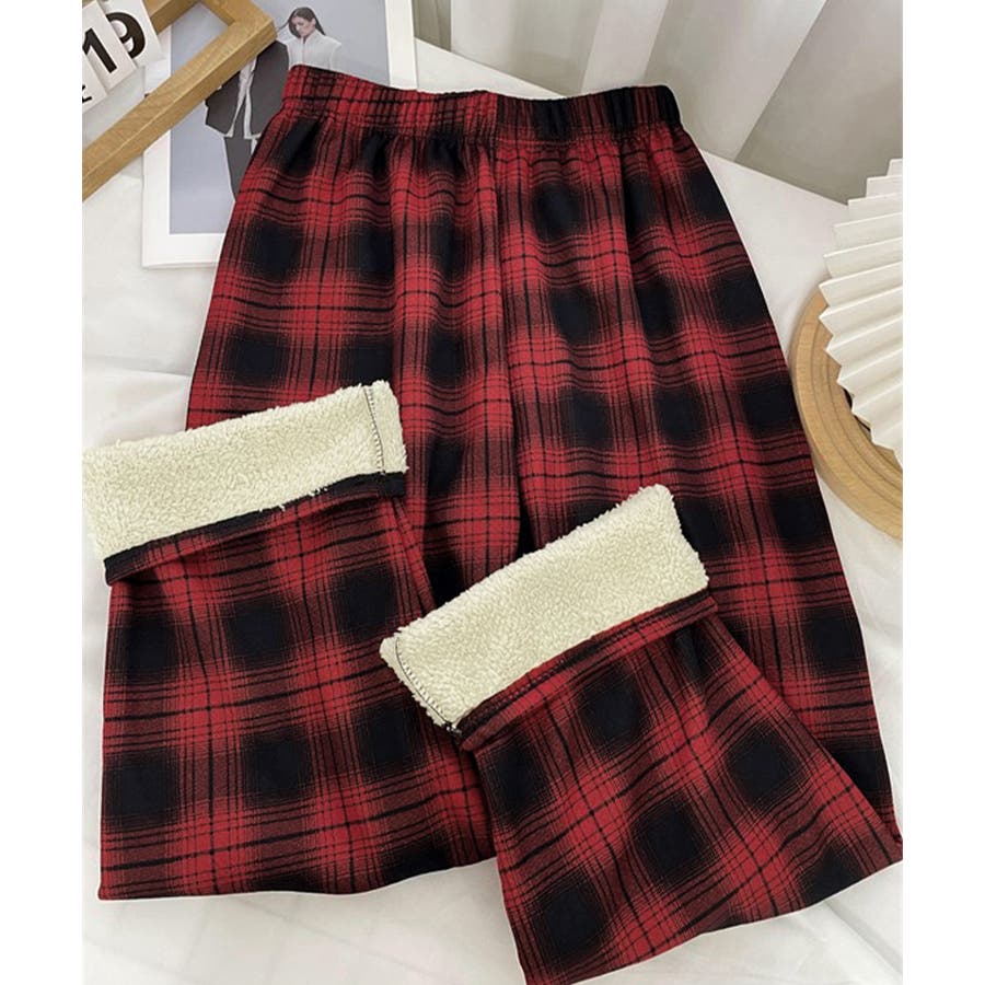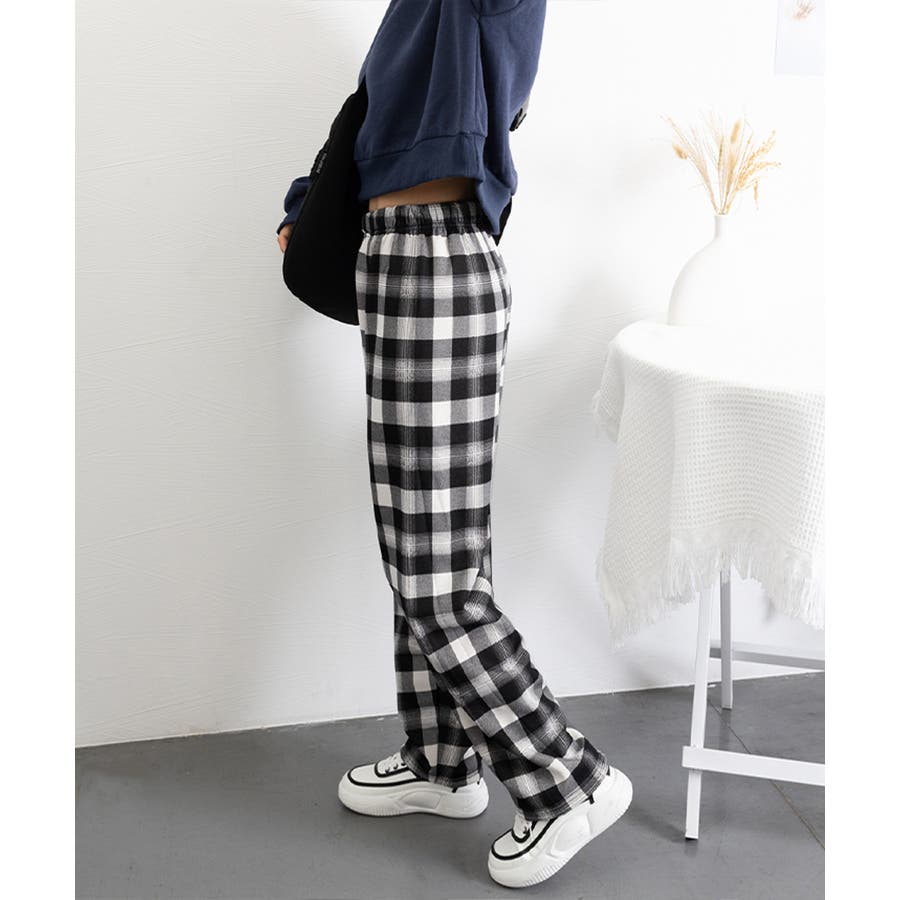 寒い季節にぴったりのチェック柄裏起毛パンツ。