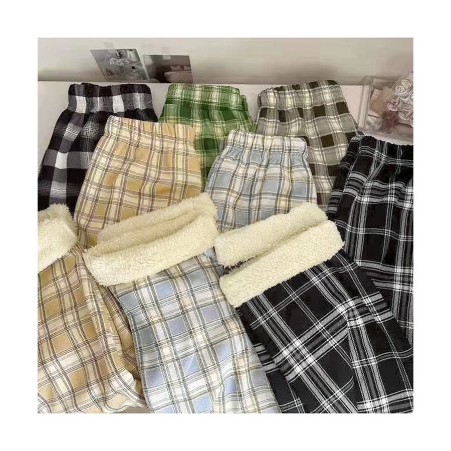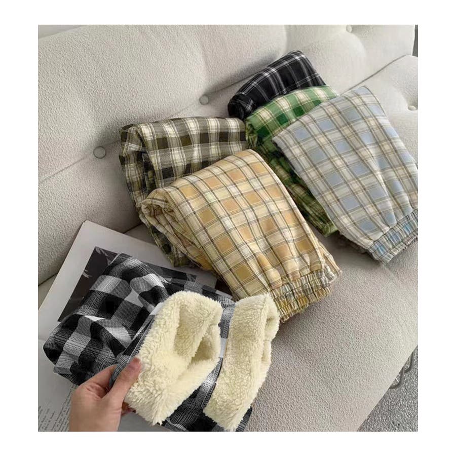 裏起毛チェック柄パンツ 裏ボアパンツ防寒