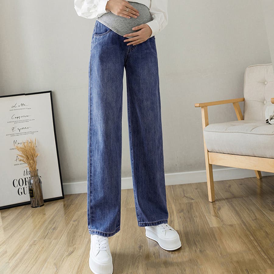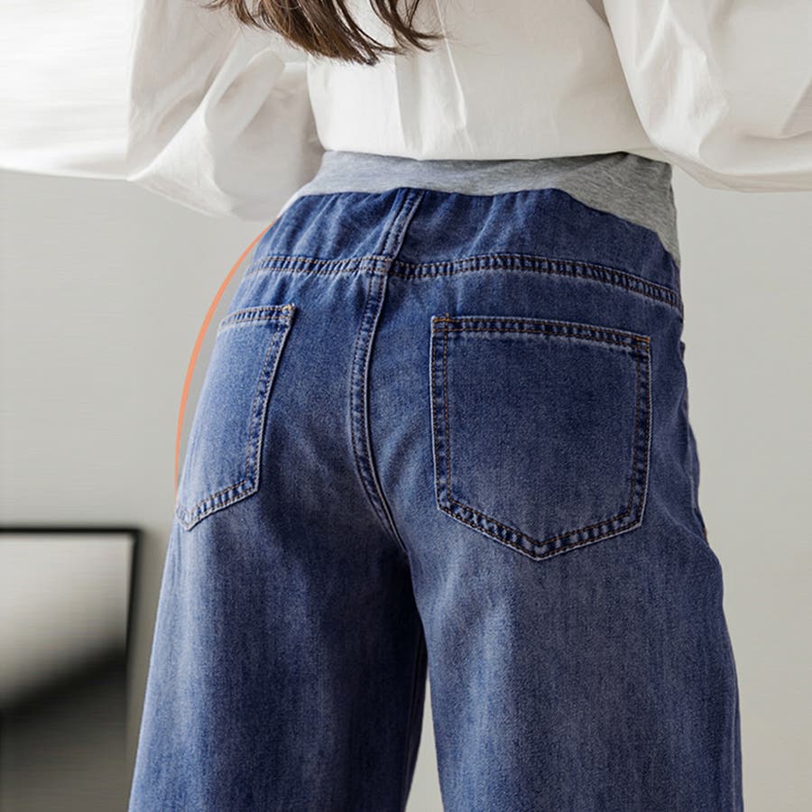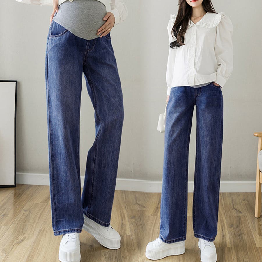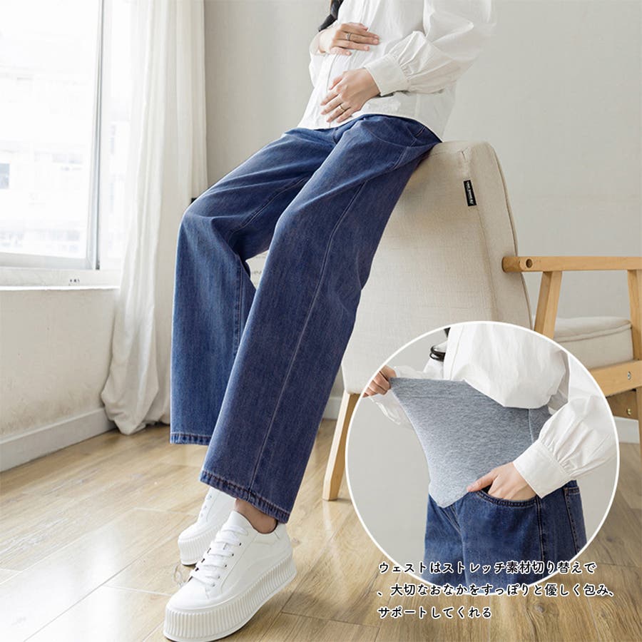 レッグラインを拾わない素敵なマタニティ用デニムワイドパンツ