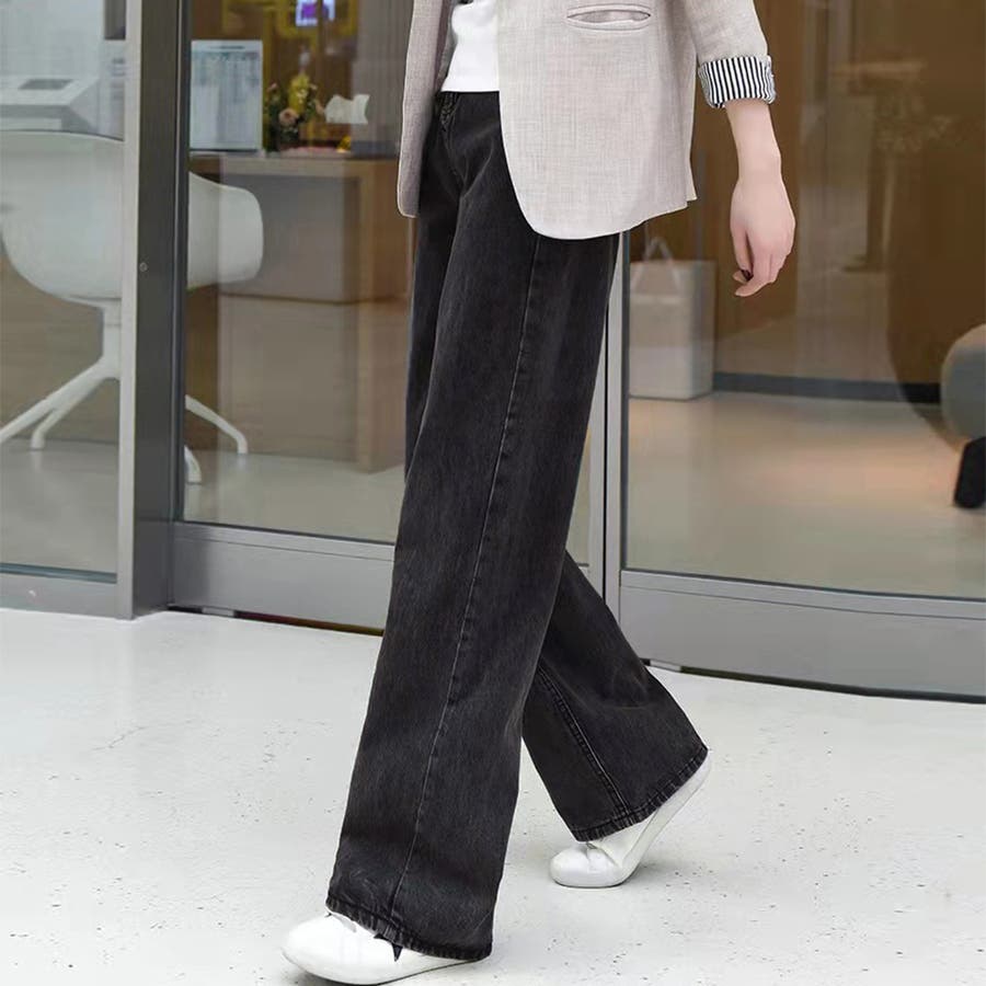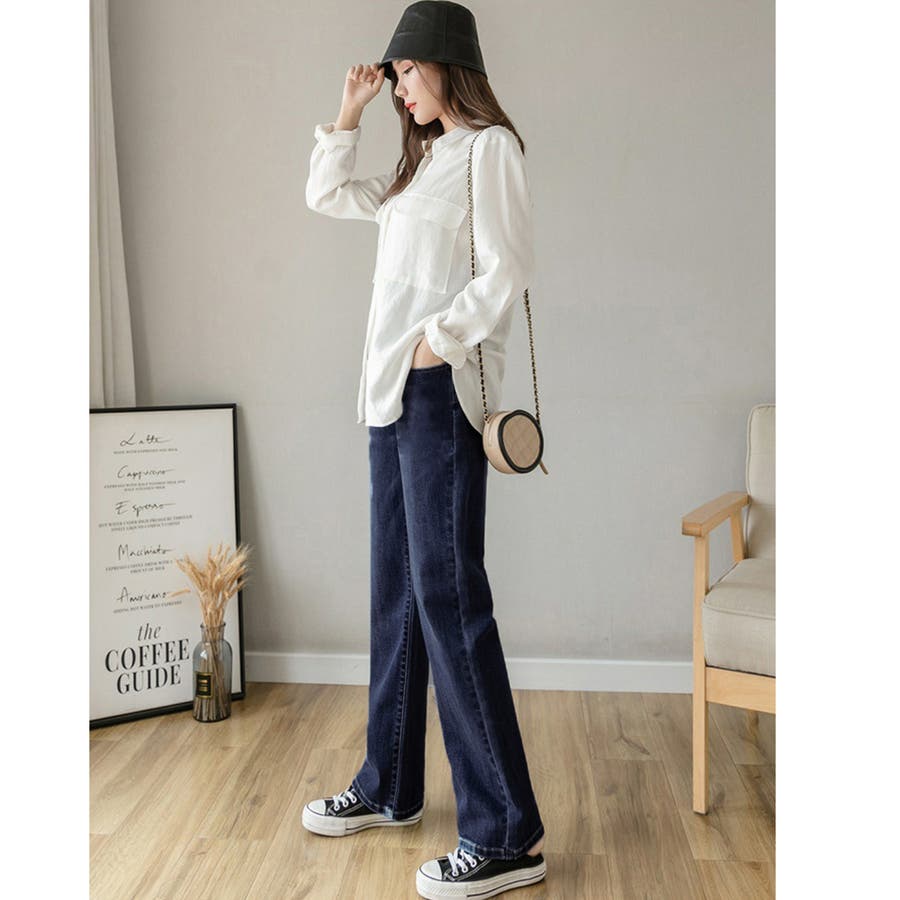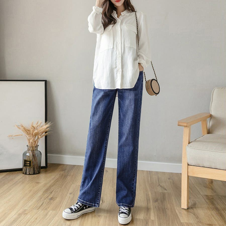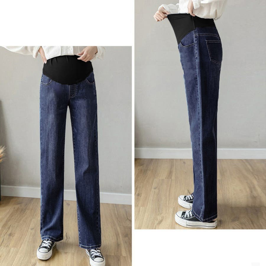 レッグラインを拾わない素敵なマタニティ用デニムワイドパンツ