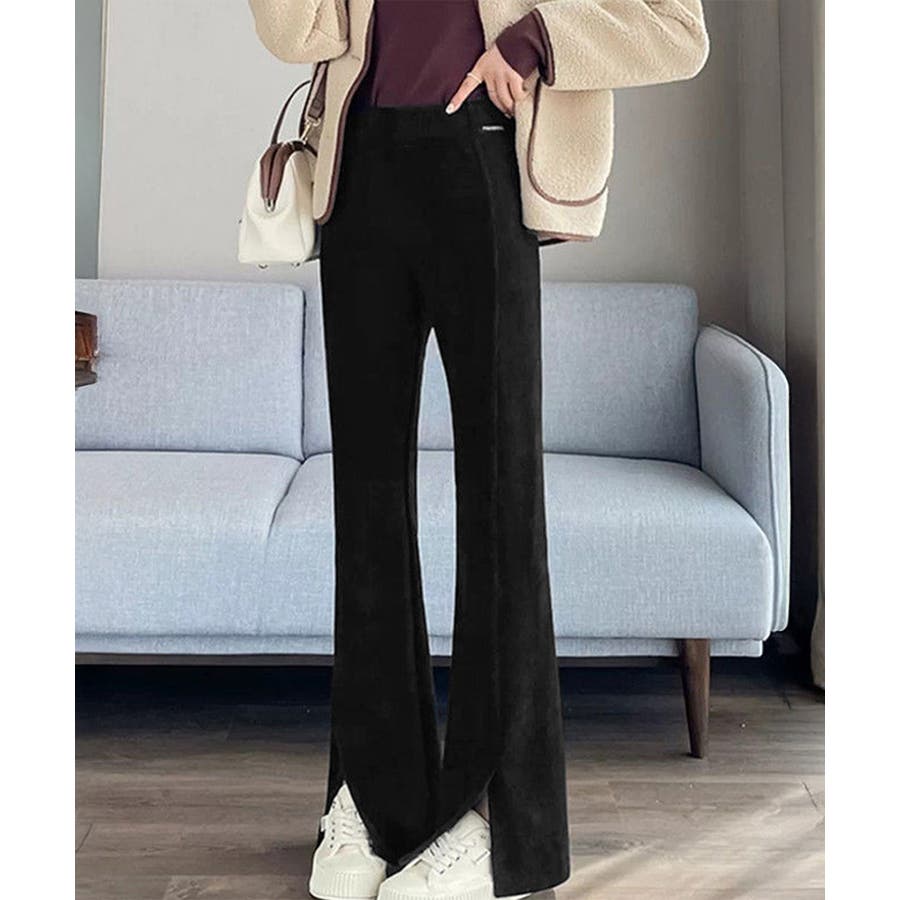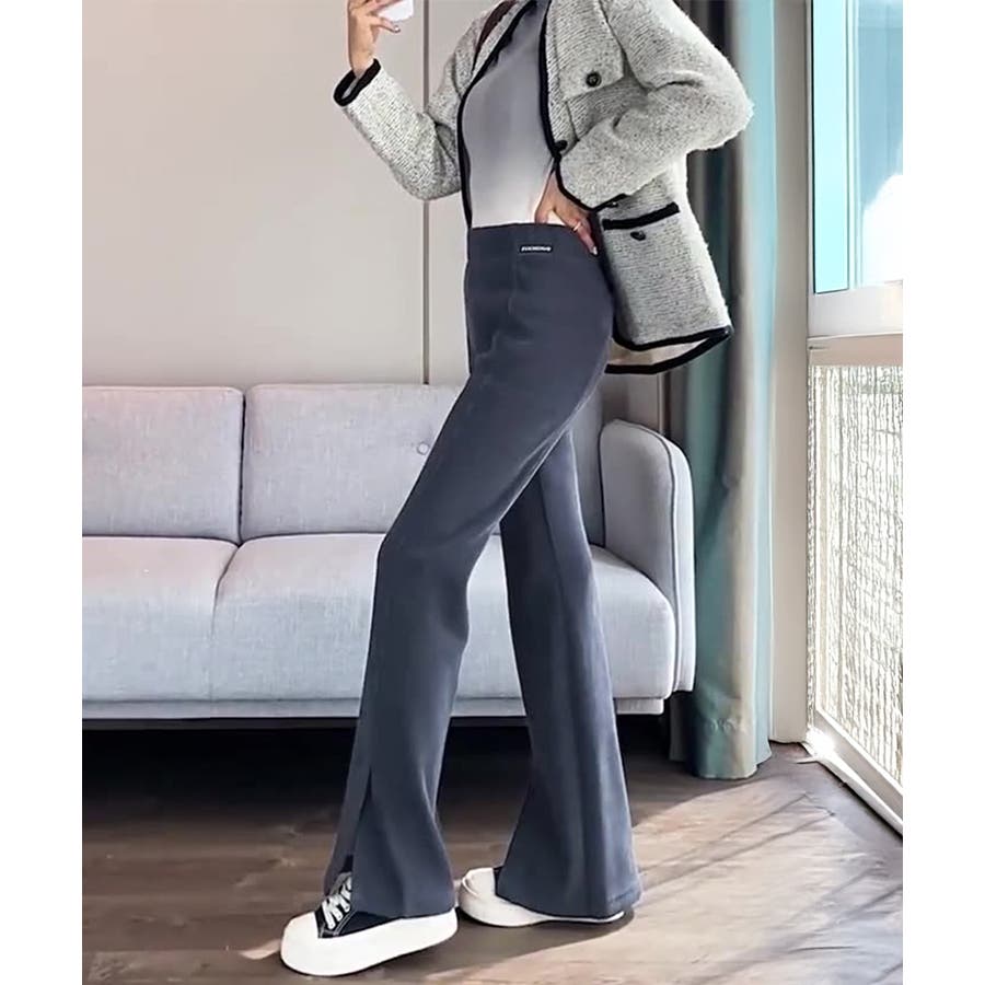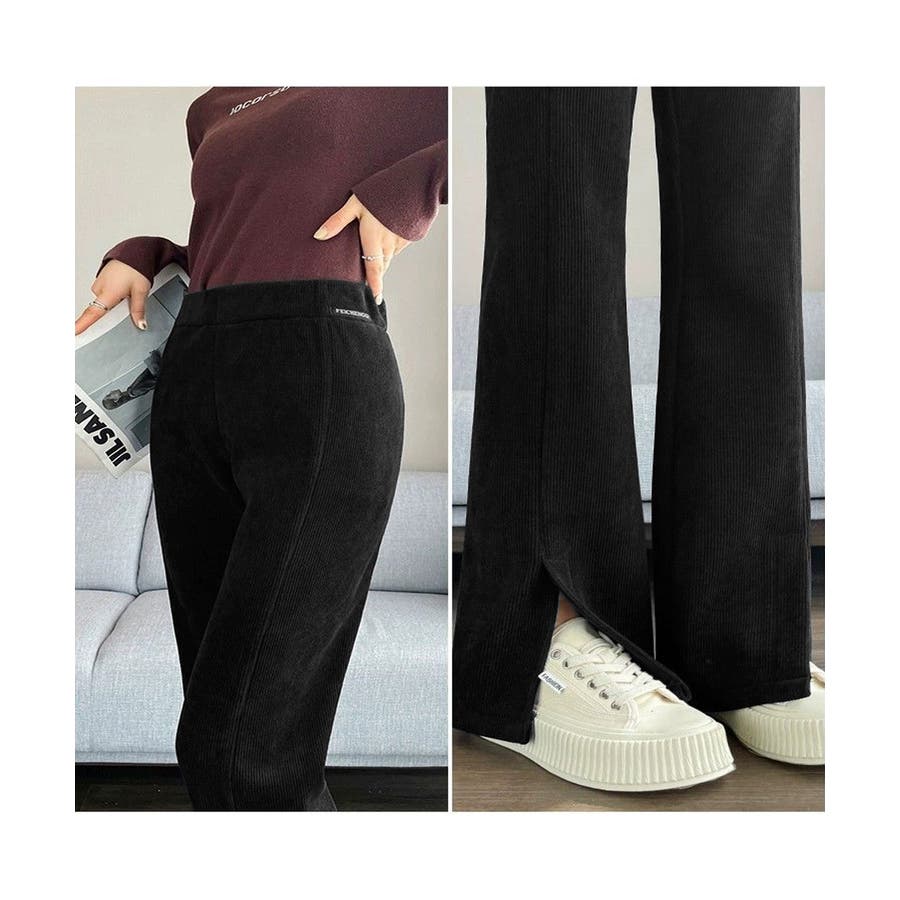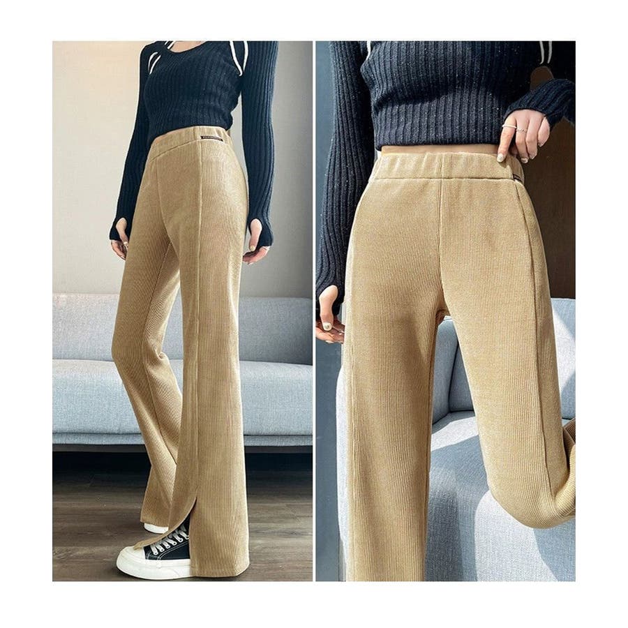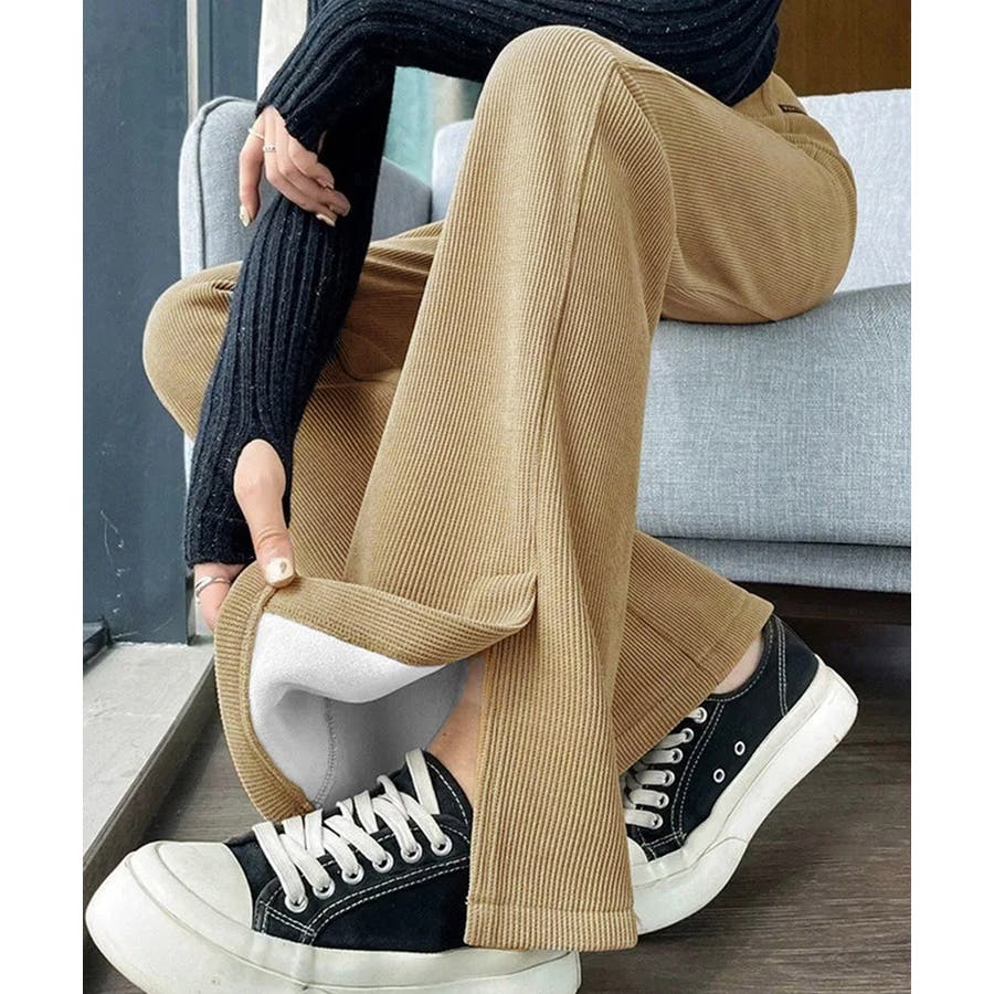 ハイウエストあったかパンツ レディース 防風防寒フロントスリットパンツ 暖かいズボン 美脚脚長秋冬ボトム イージーパンツ