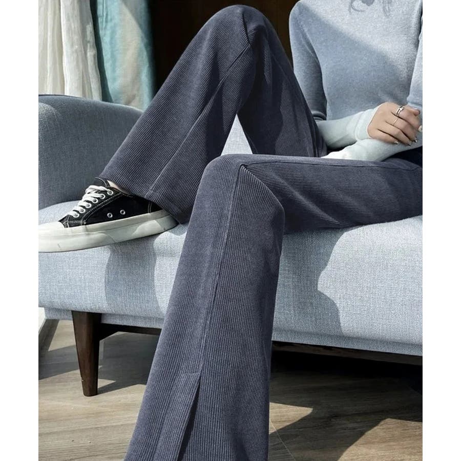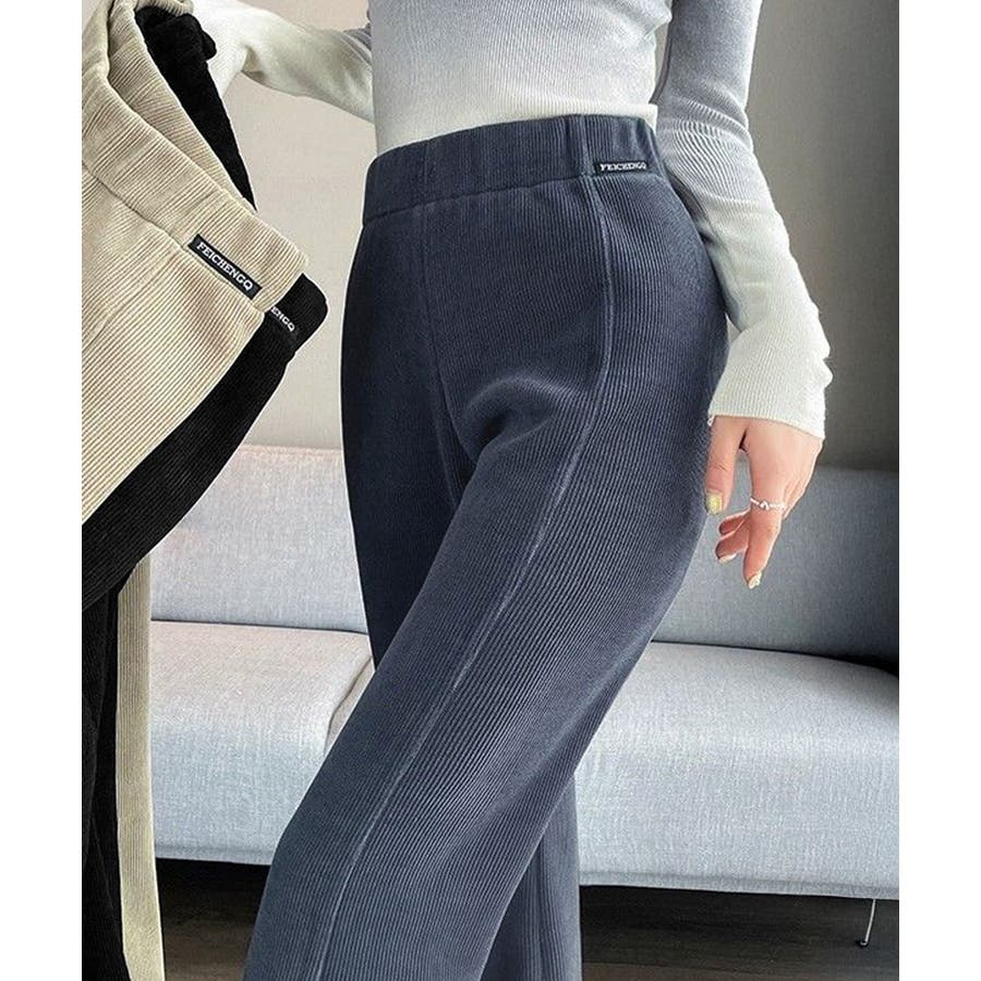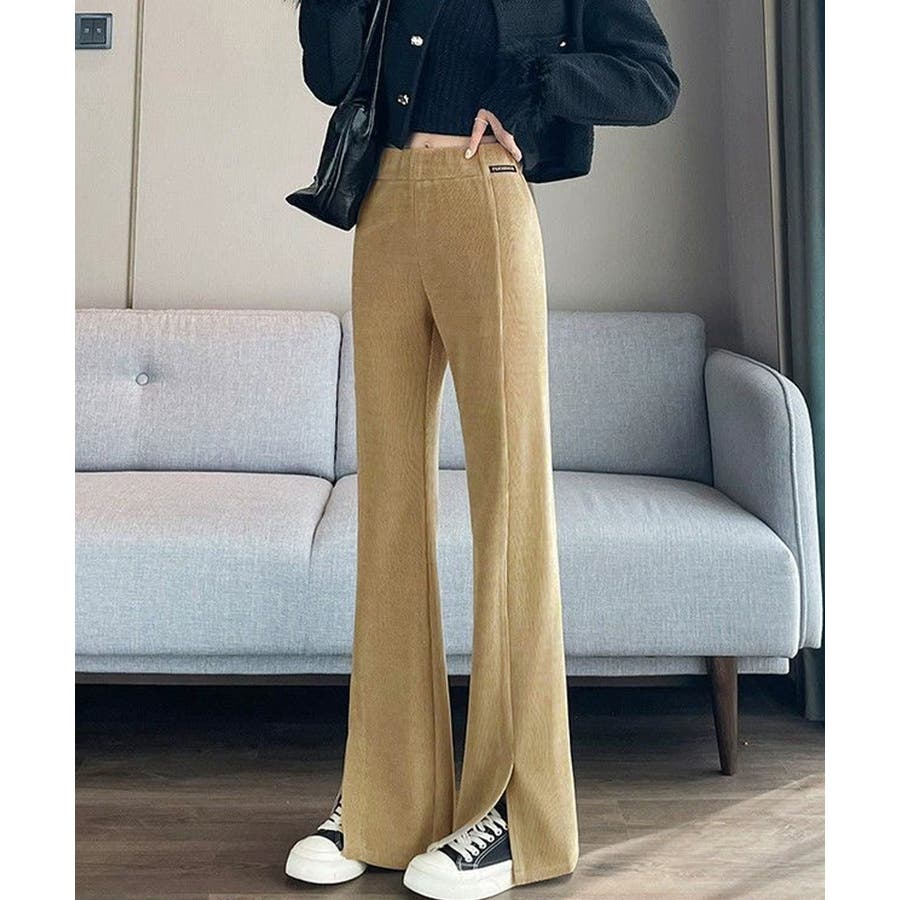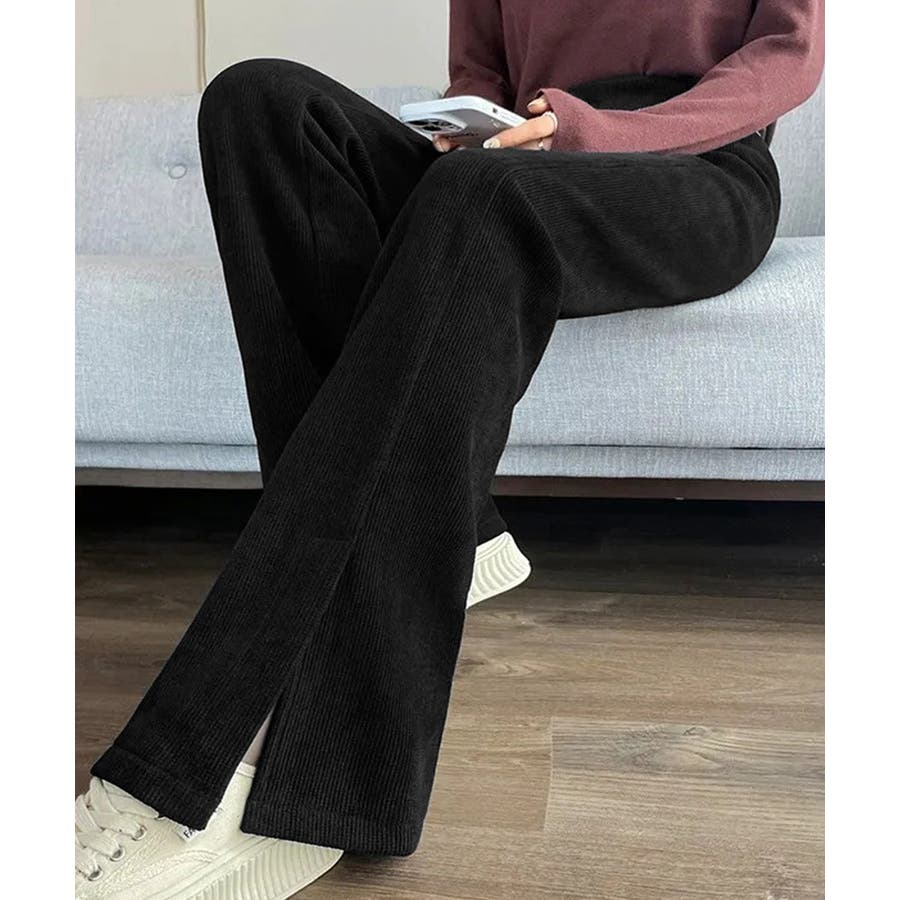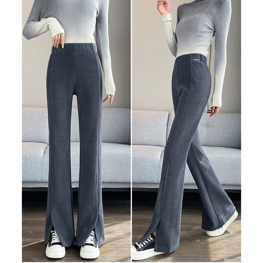 ハイウエストあったかパンツ レディース 防風防寒フロントスリットパンツ 暖かいズボン 美脚脚長秋冬ボトム イージーパンツ