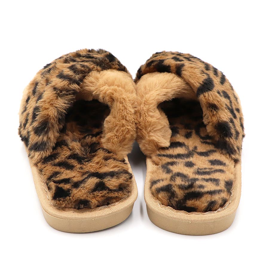 ファースリッパ あったか 滑り止め ヒョウ柄 秋冬 フラットサンダル 室内履き ふわふわクロスストラップ ルームシューズ