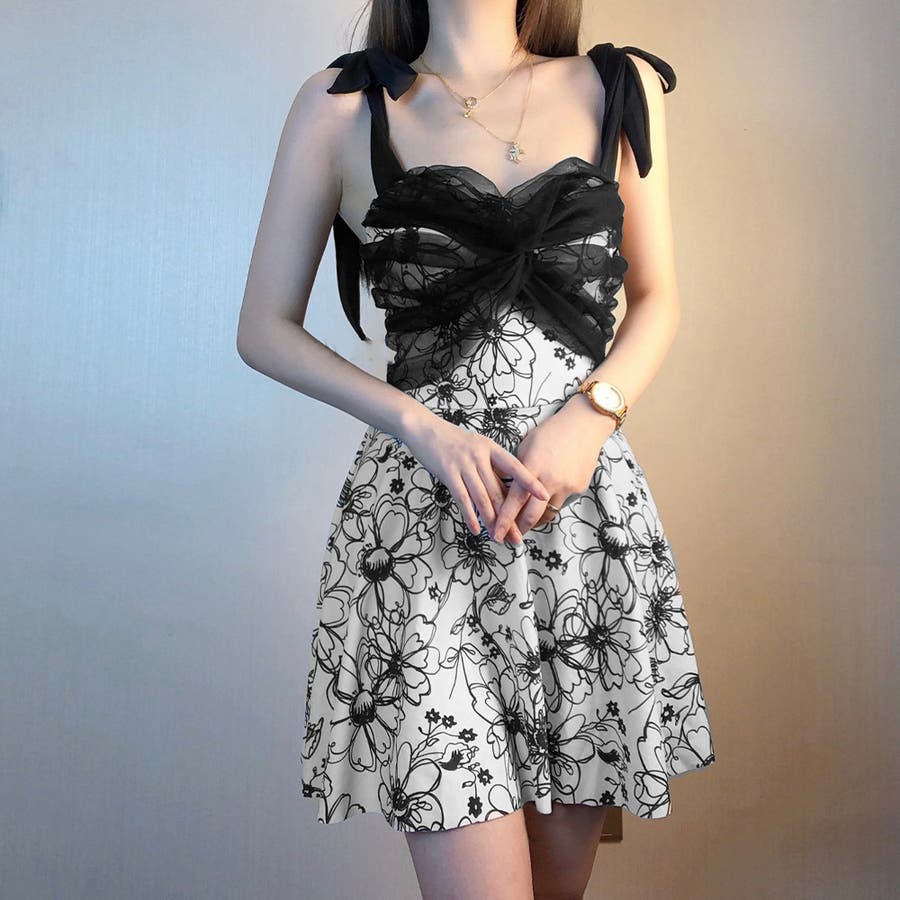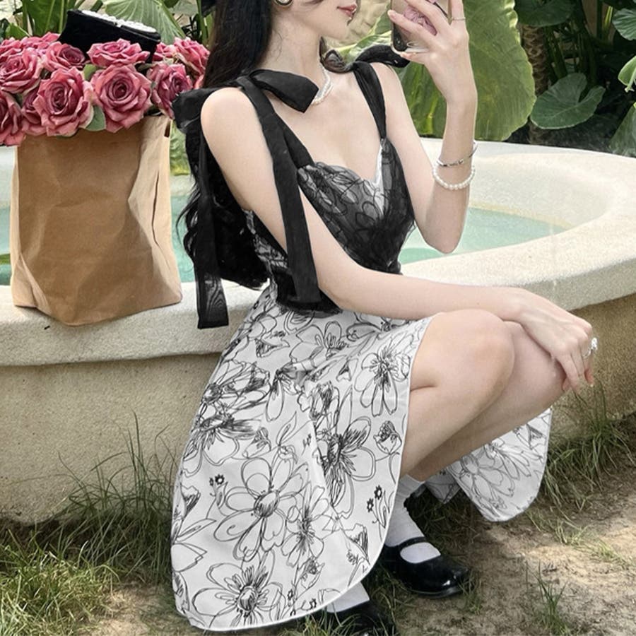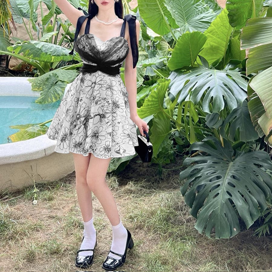 派手な露出を抑えた、洋服感覚で着こなせる花柄ワンピース水着