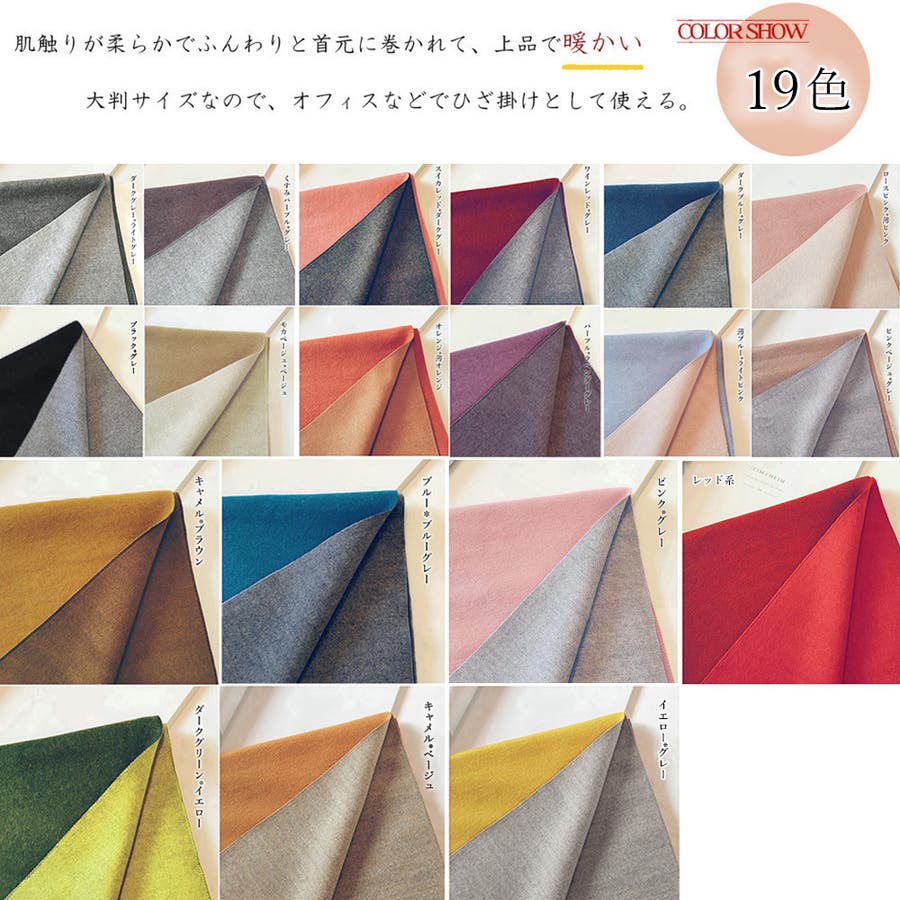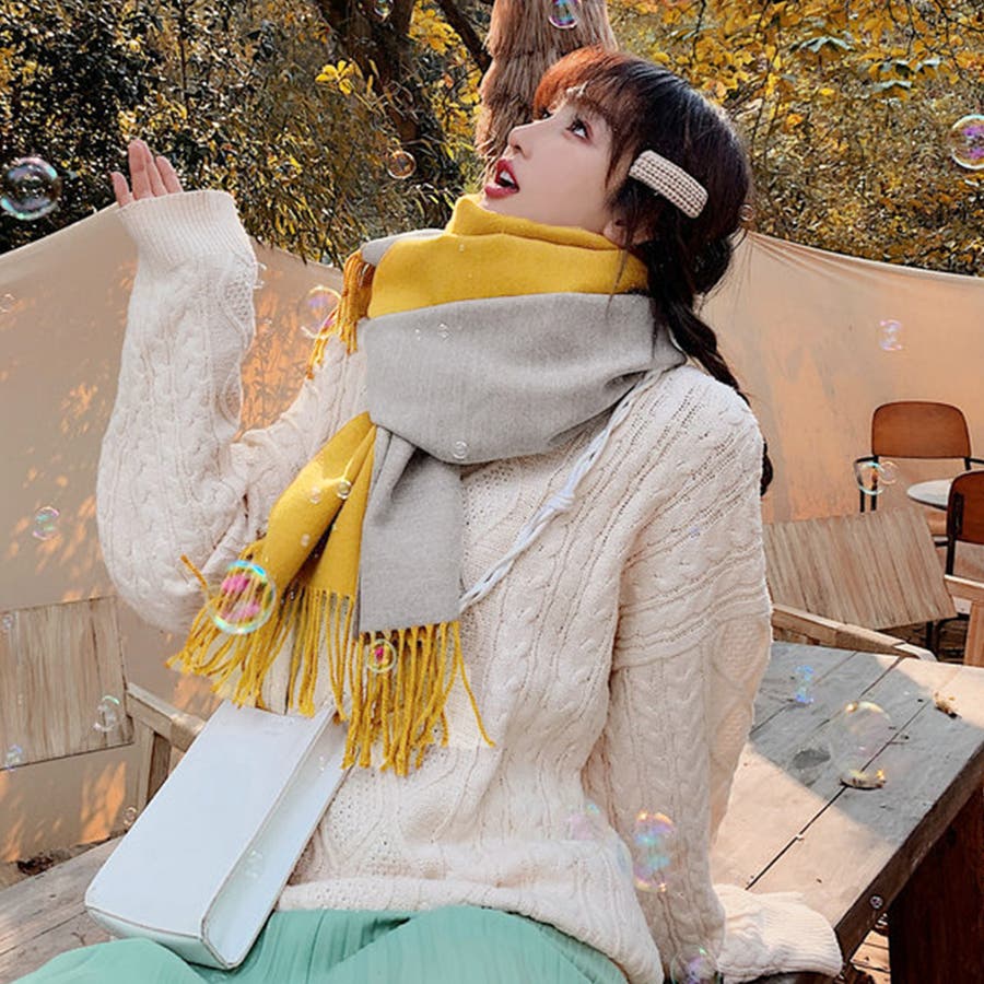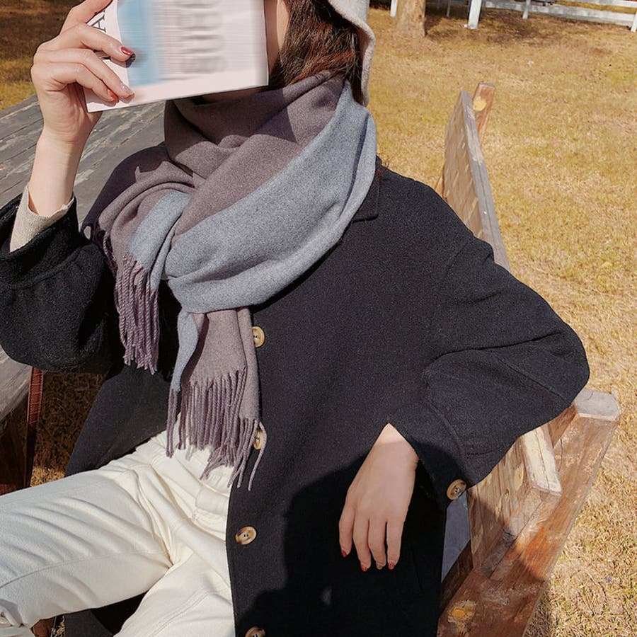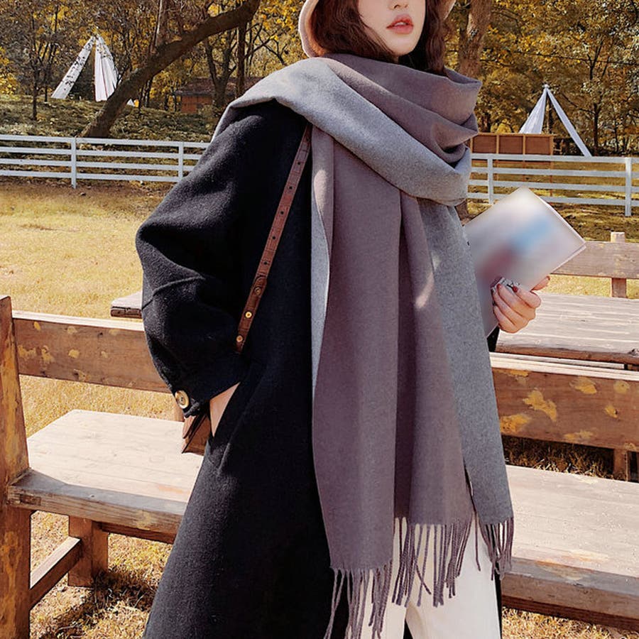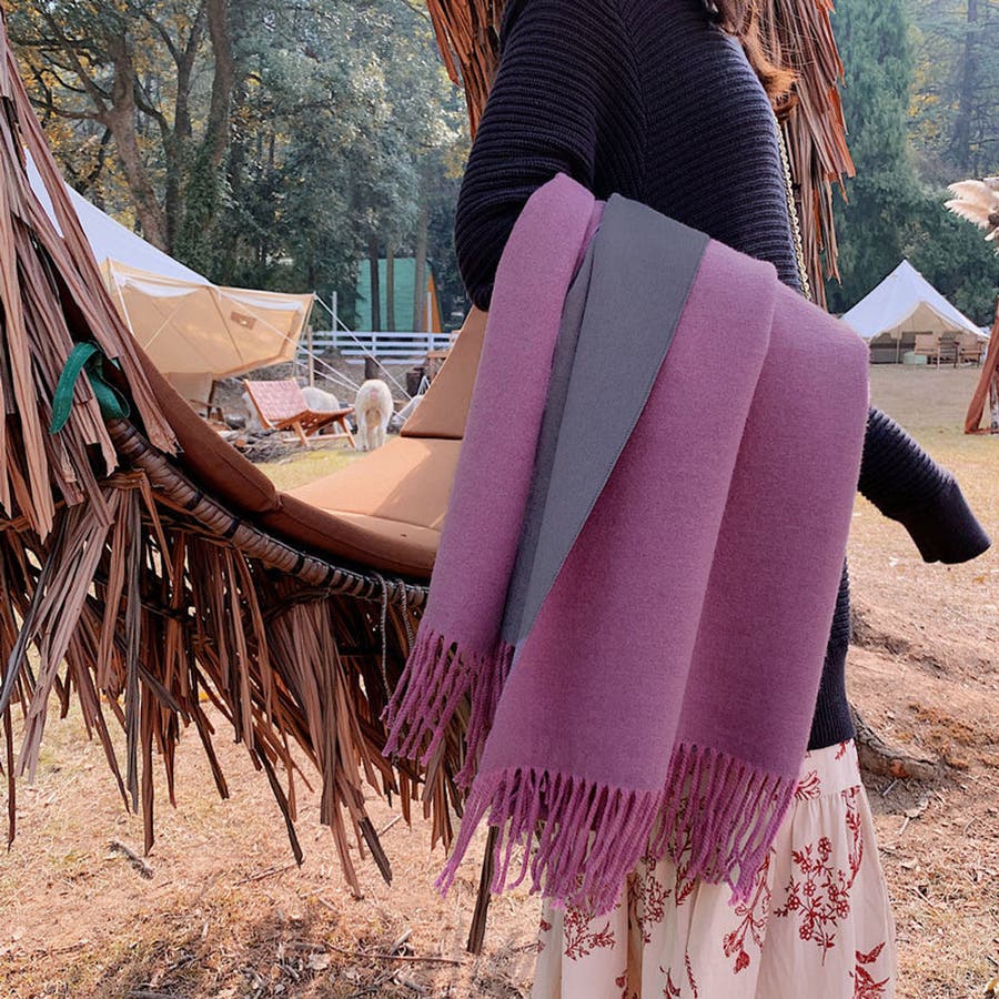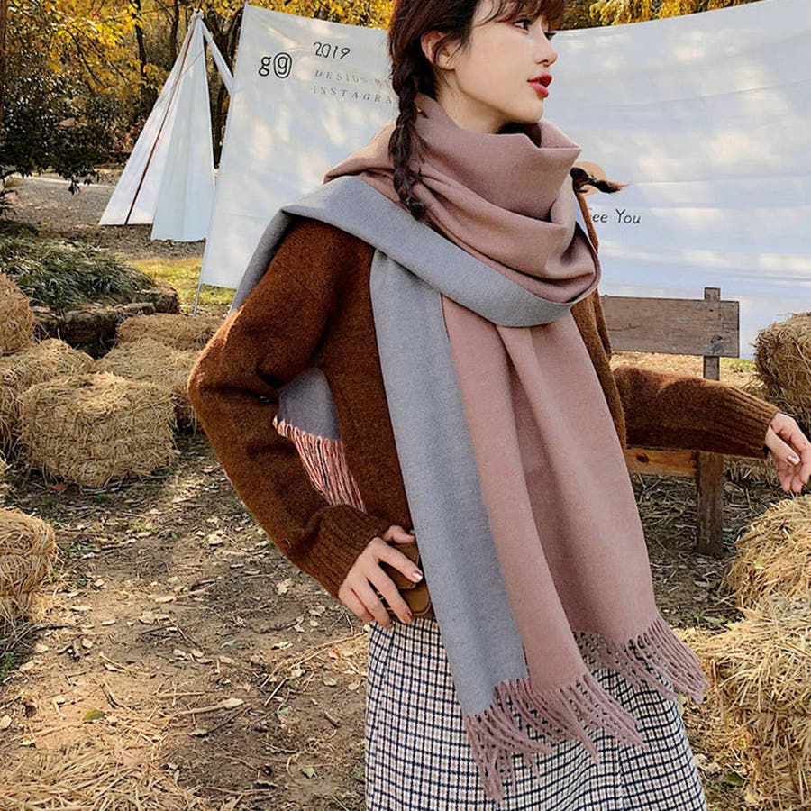 ツートンカラーのリバーシブル仕様なので、巻き方次第で雰囲気が変わり、コーディネートの幅も広がります、その日の気分でアレンジ自在
