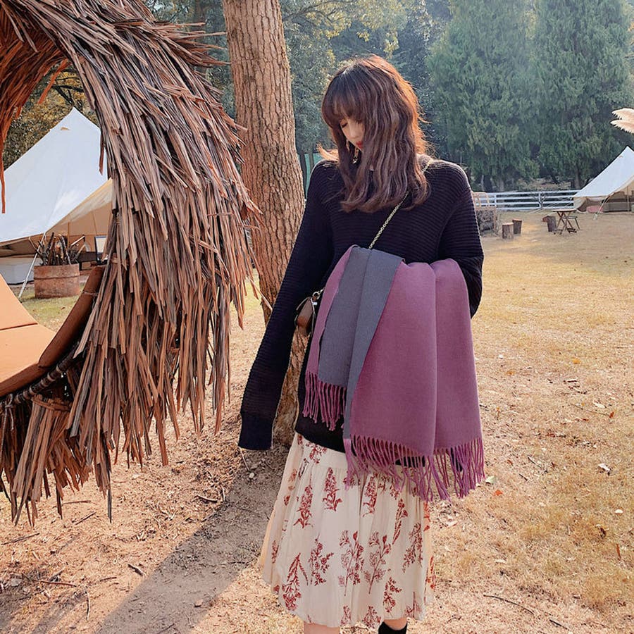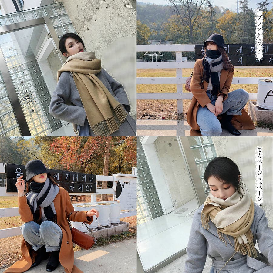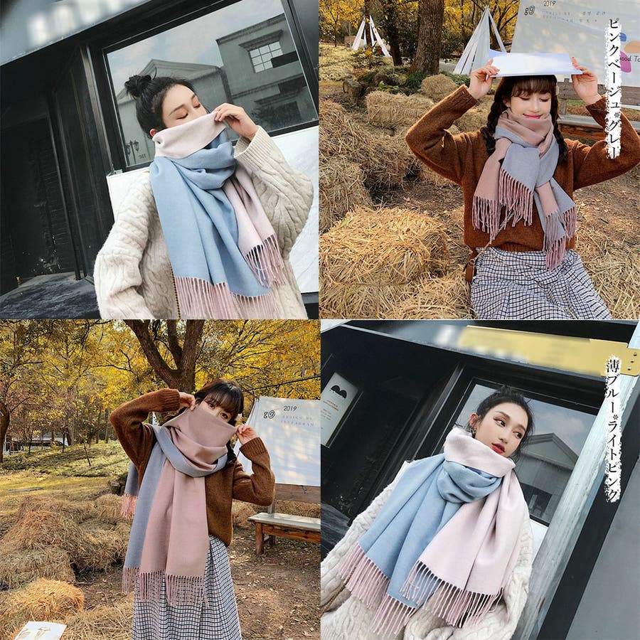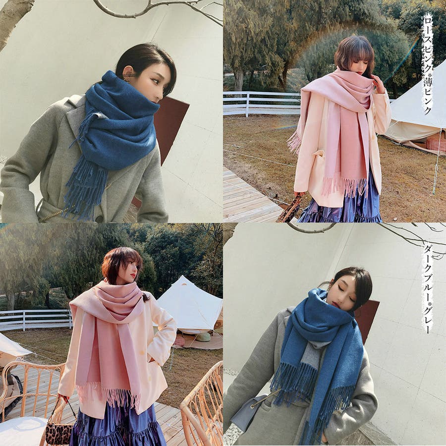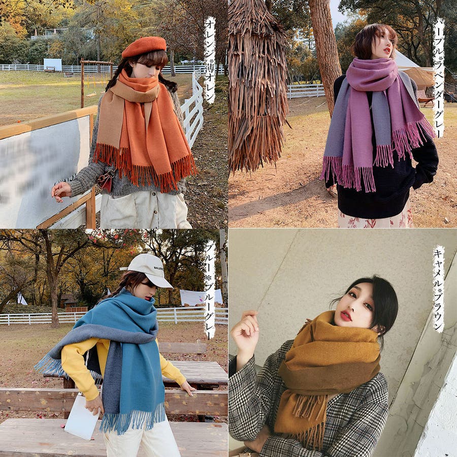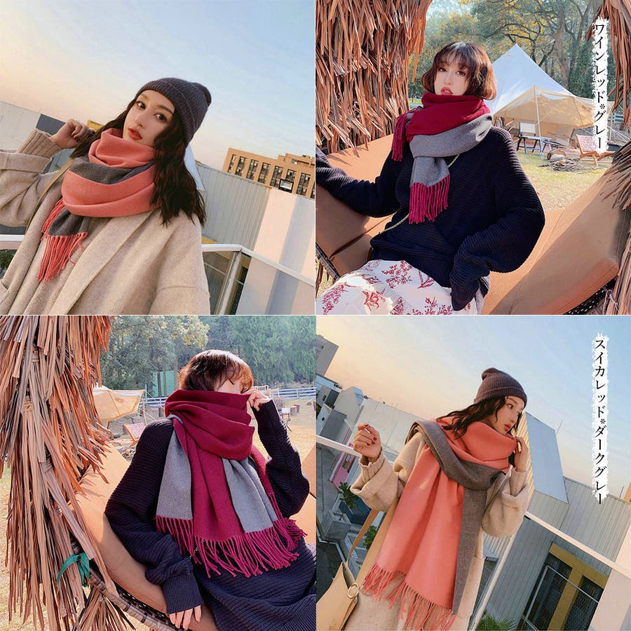 配色マフラー 防寒 マフラープレゼント 両面ストール肩掛け