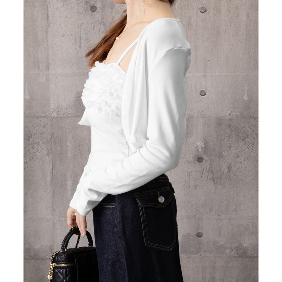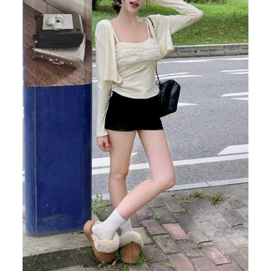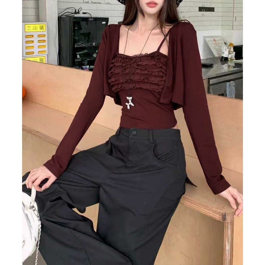 レディースインナーフリルキャミソールカップ付き おしゃれショートカーディガン長袖…