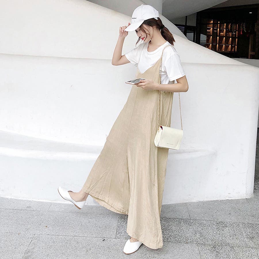 ジャンパースカートのようなオトナ可愛いキャミソールサロペットパンツ