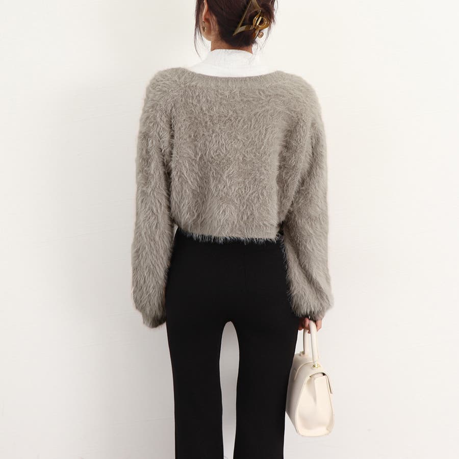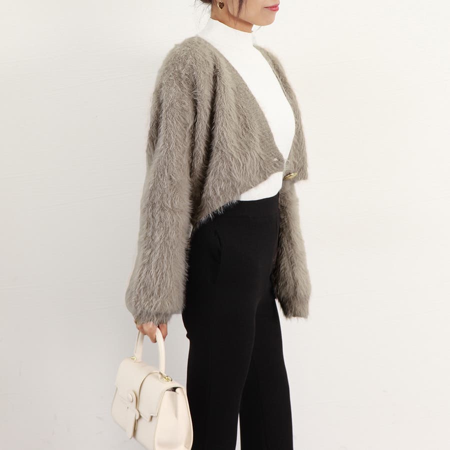 首元はすっきりとしたノーカラーで、襟付きのトップスやハイネックのニットとも好相性