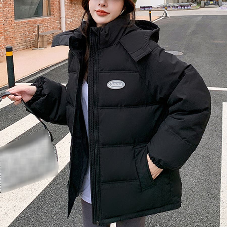 ブルゾンボリューム フーディコート 黒 ジップアップコート