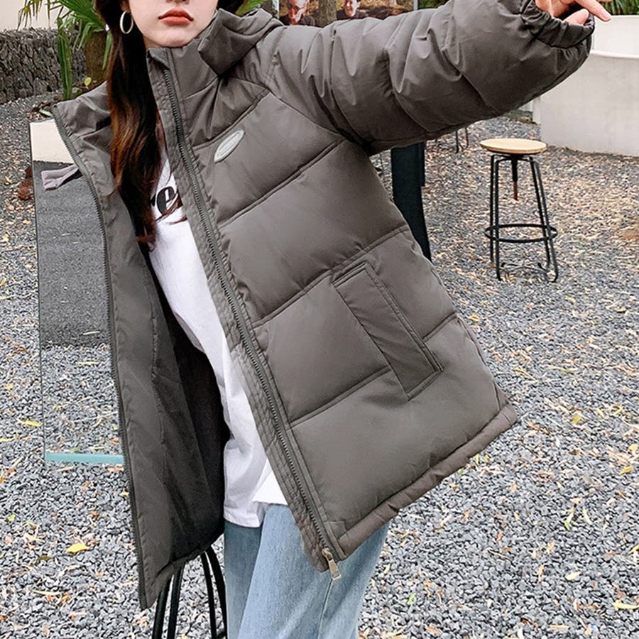 スタンドカラーも今っぽくて目を引く、首回りが暖かいので防寒対策もばっちり