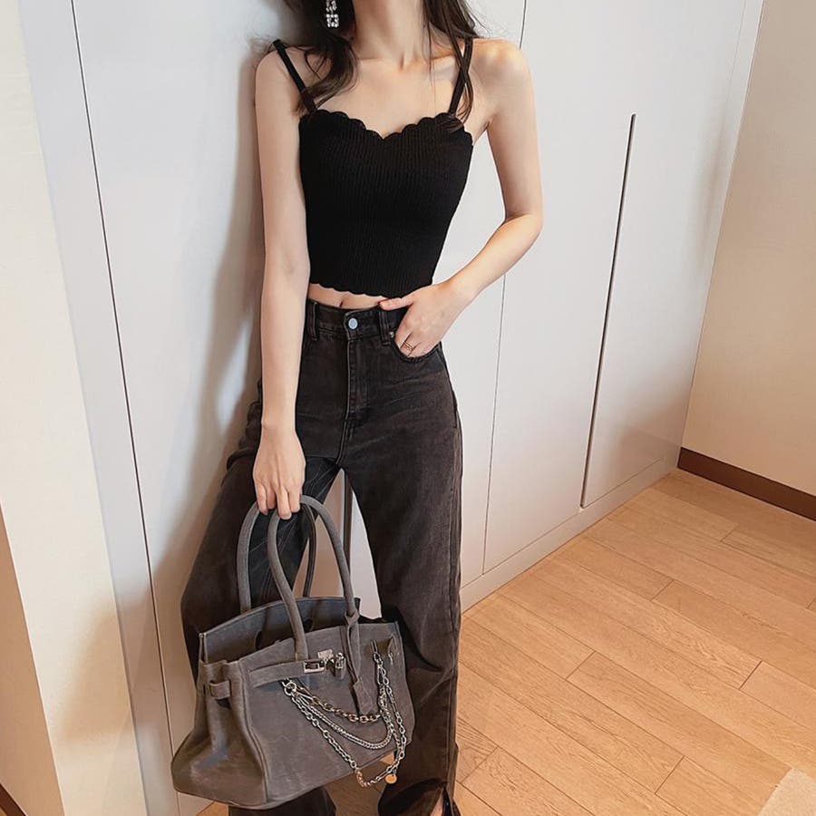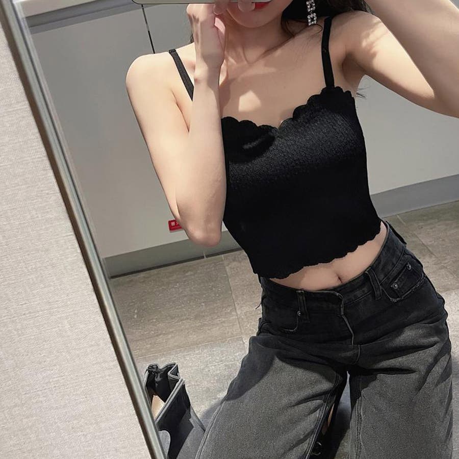 シンプルベアトップ ショート丈トップス へそ出しキャミ夏服