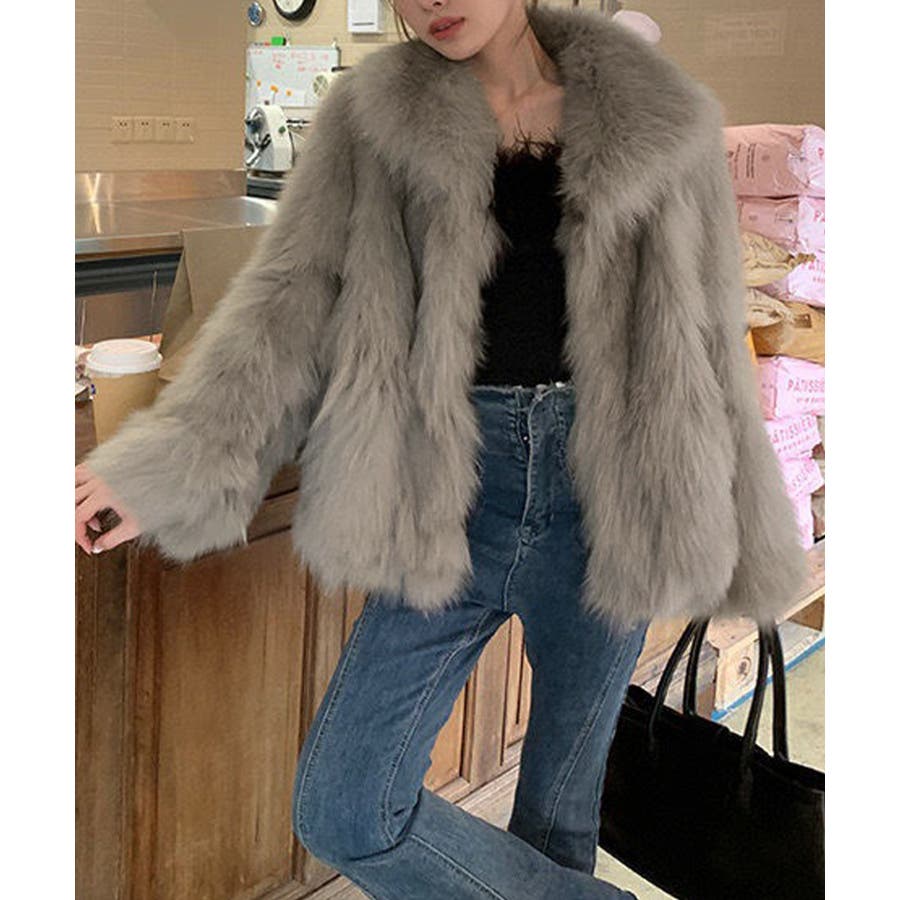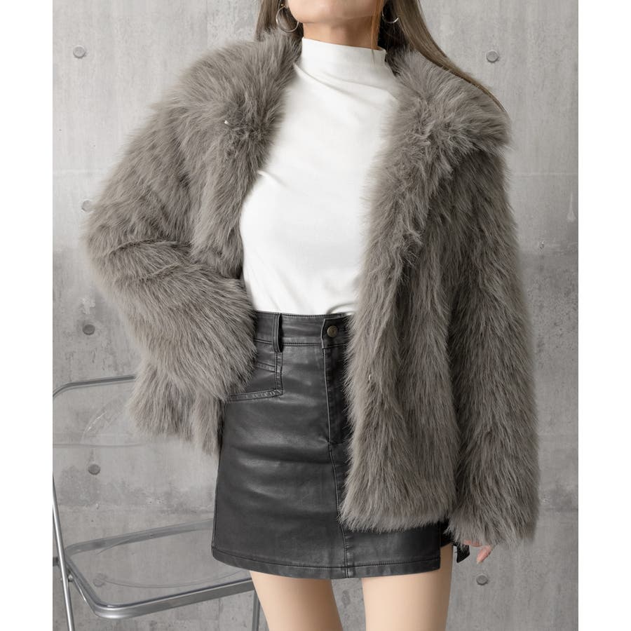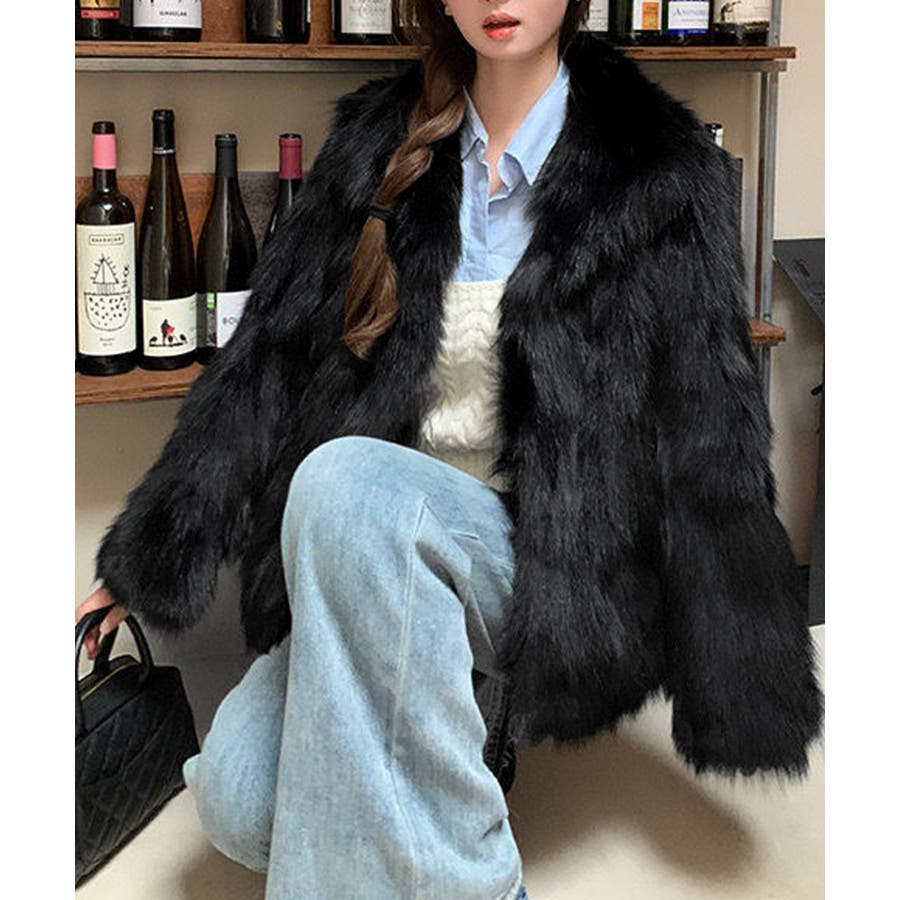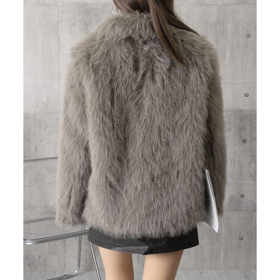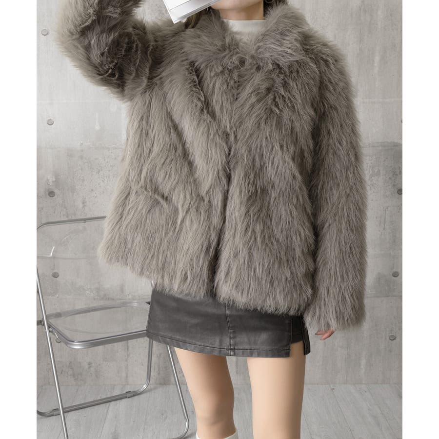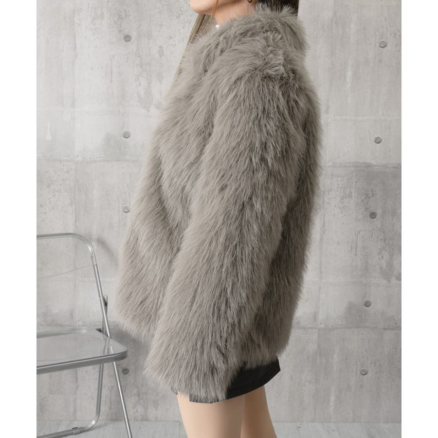 ふわふわフェイクファージャケットビッグ襟