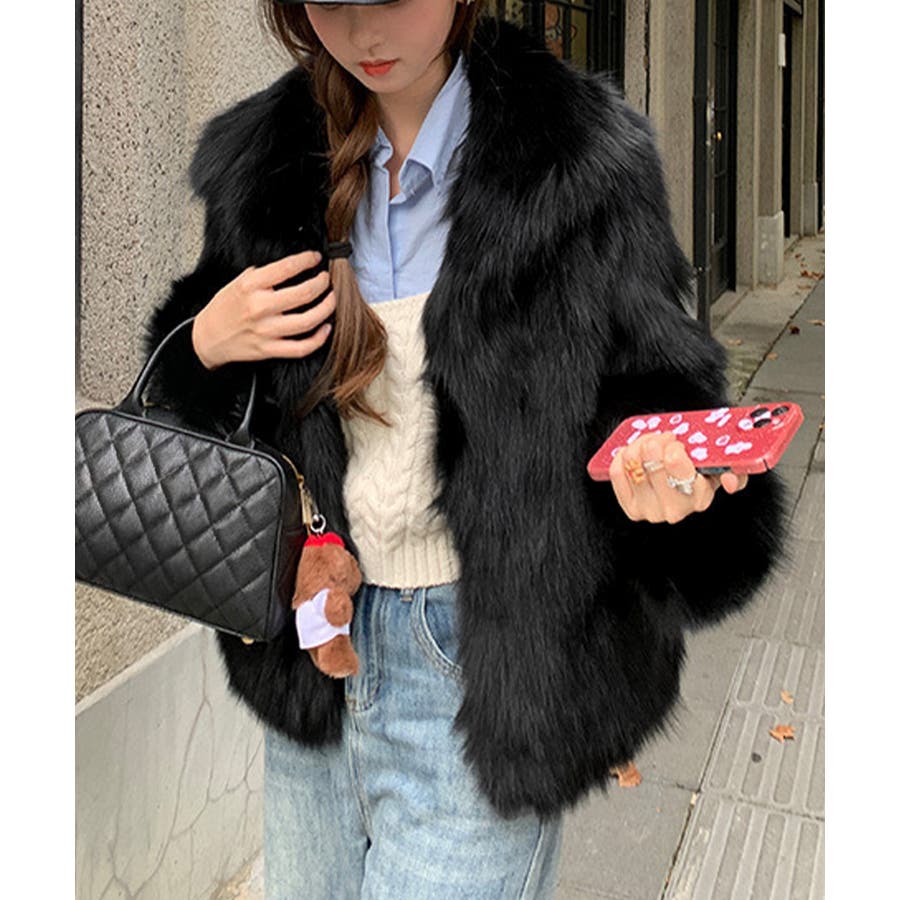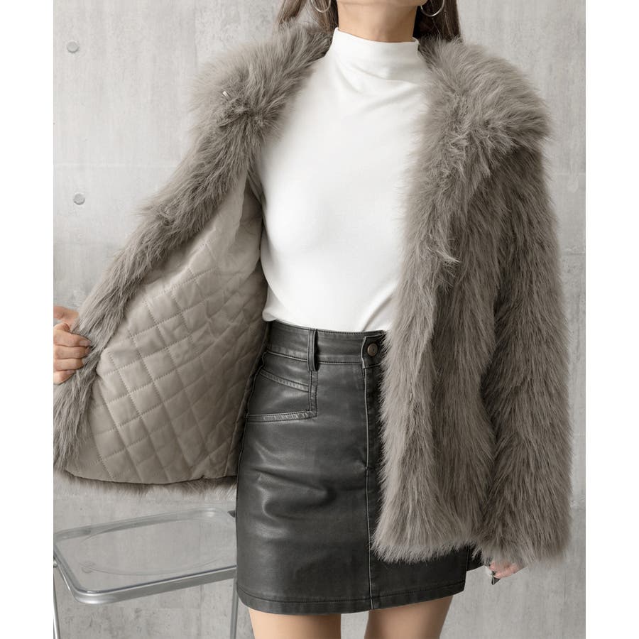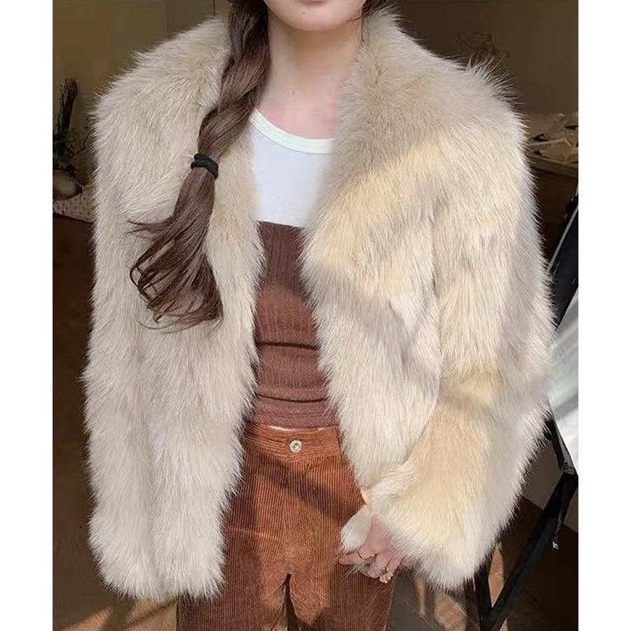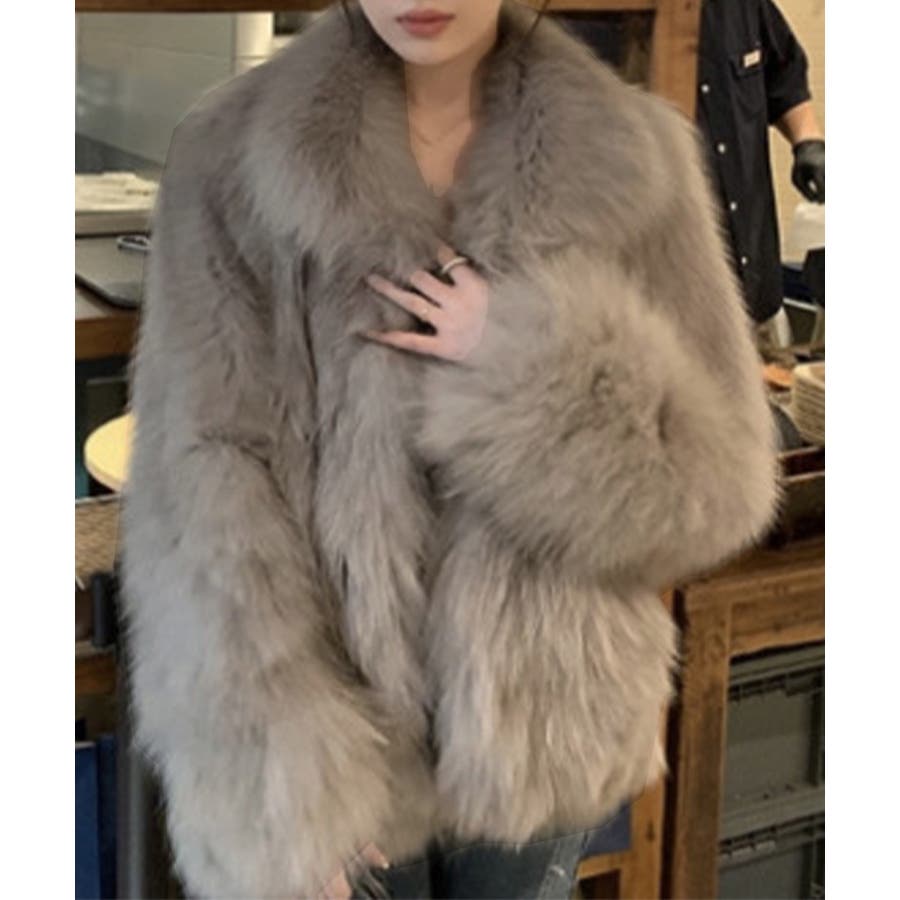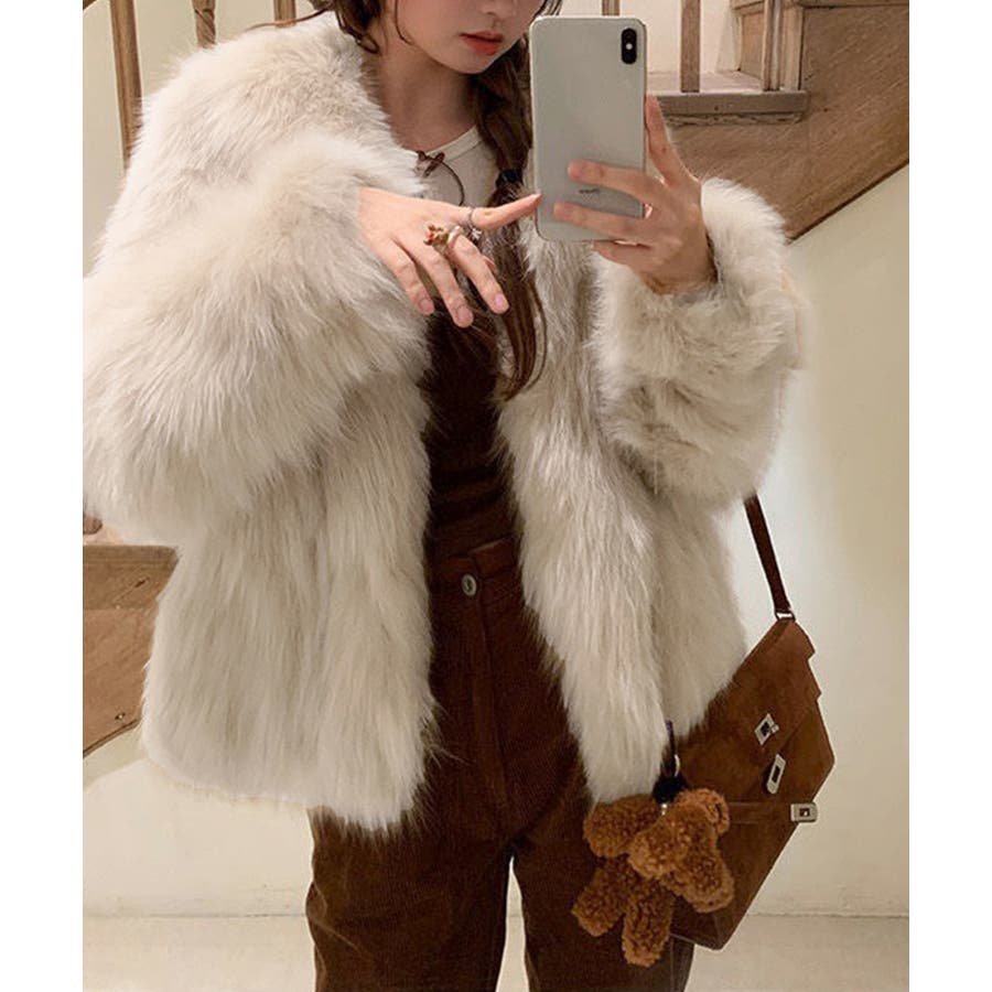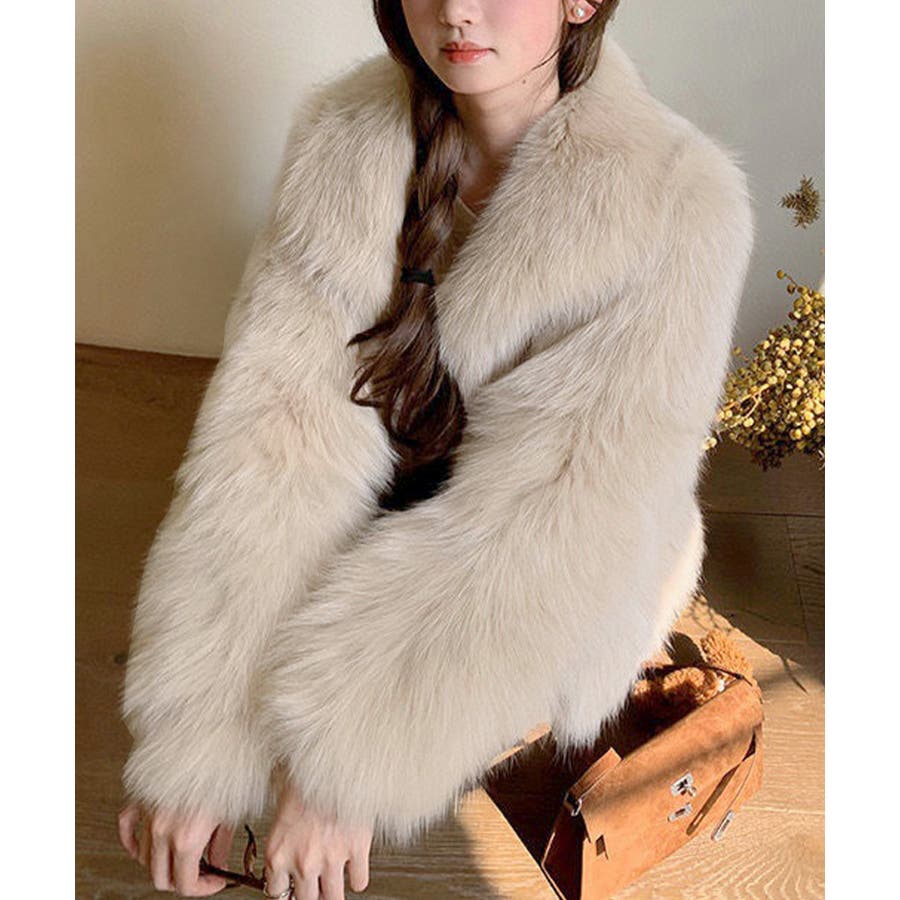 ふわふわフェイクファージャケットビッグ襟