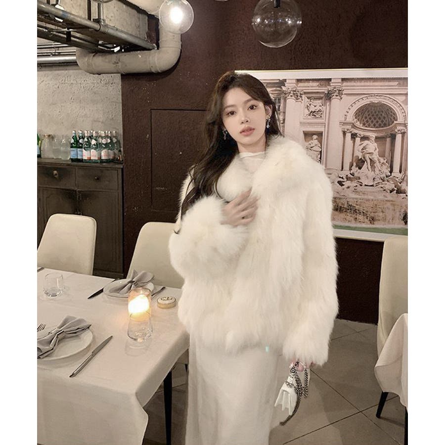 贅沢なエコファーにこだわりぬいた、上品なオーラを放つレディ度高めの大襟エコファーコート。