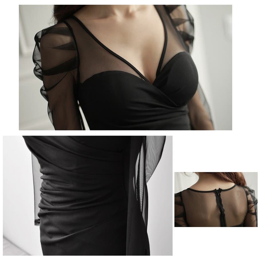 セクシーさとエレガンスが見事に融合したチュール袖ミニキャバドレス