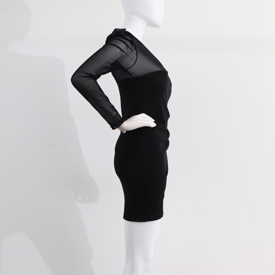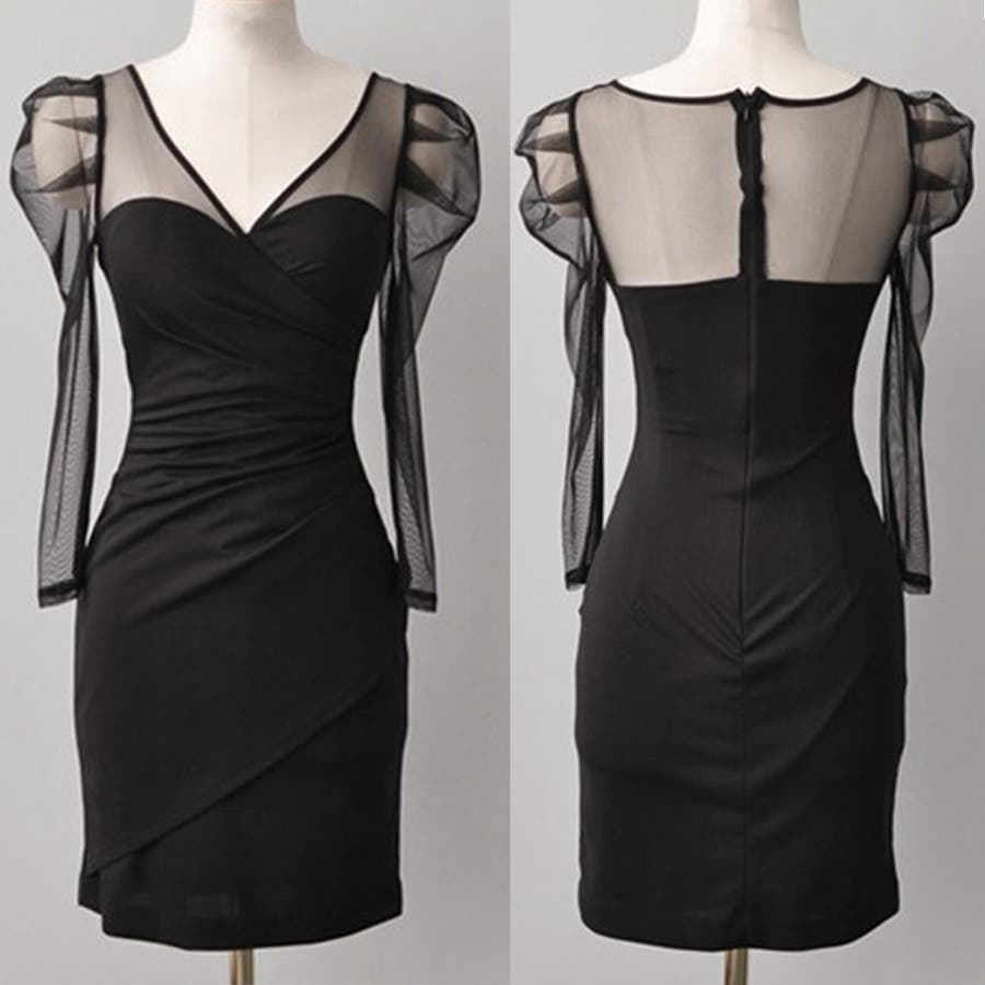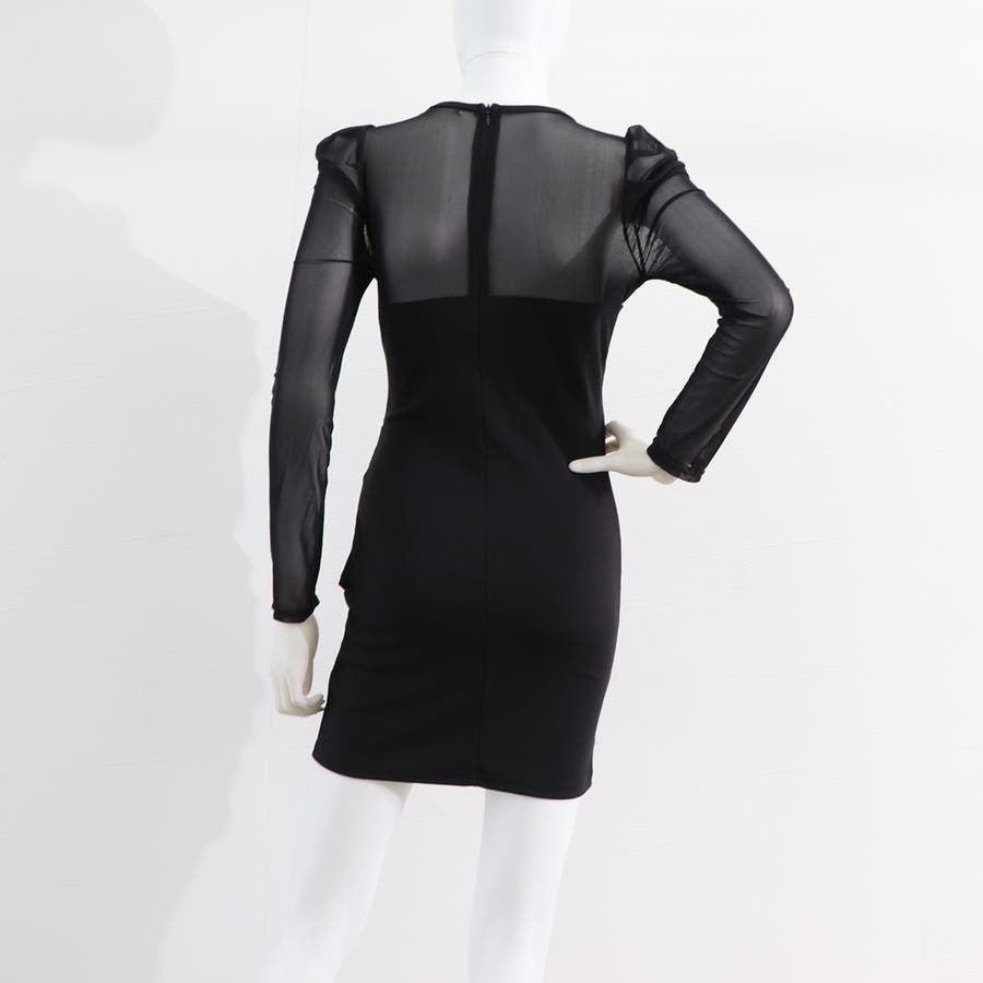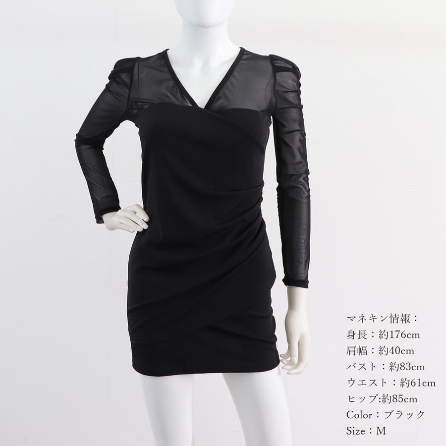 パーティードレス シースルーチュール袖 ショートタイトワンピース Vネック フェミニン お洒落 キャバクラ服 ミニドレス