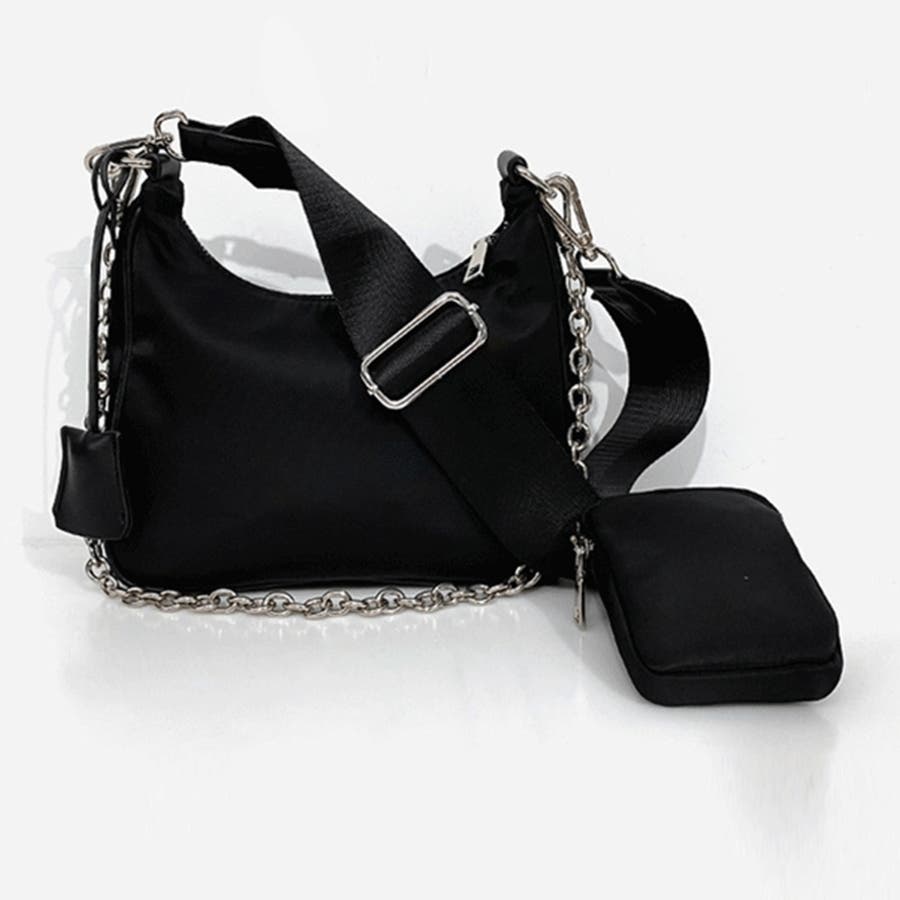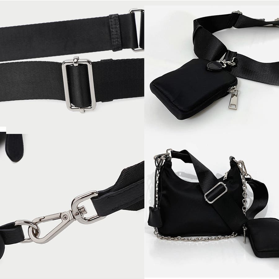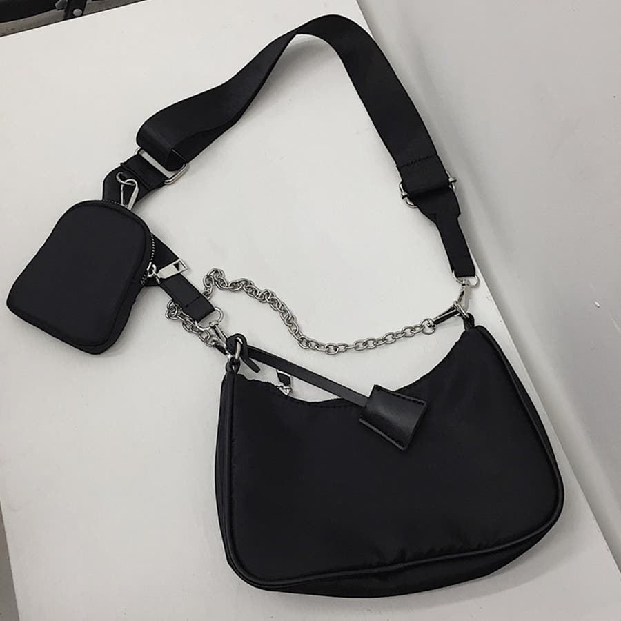 付属の小銭入れ、ショルダーとチェーンはそれぞれ取り外し可能なので、その日の気分で形を変えて使っていただけます