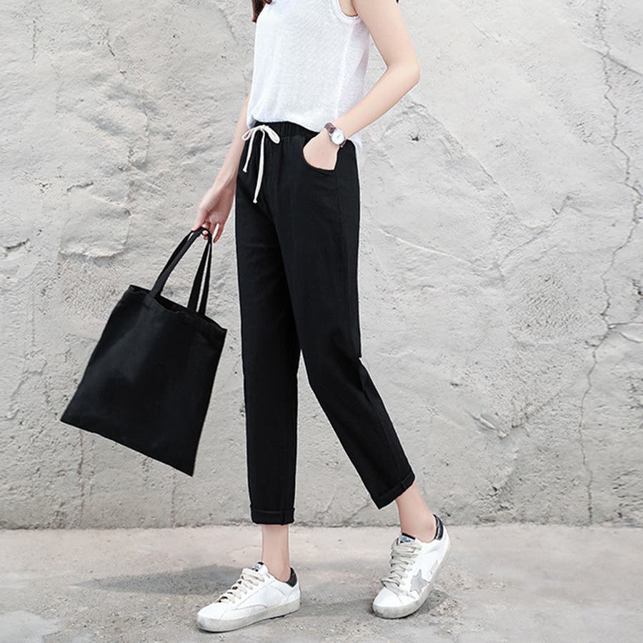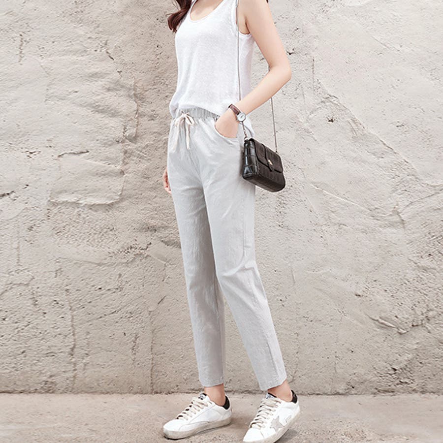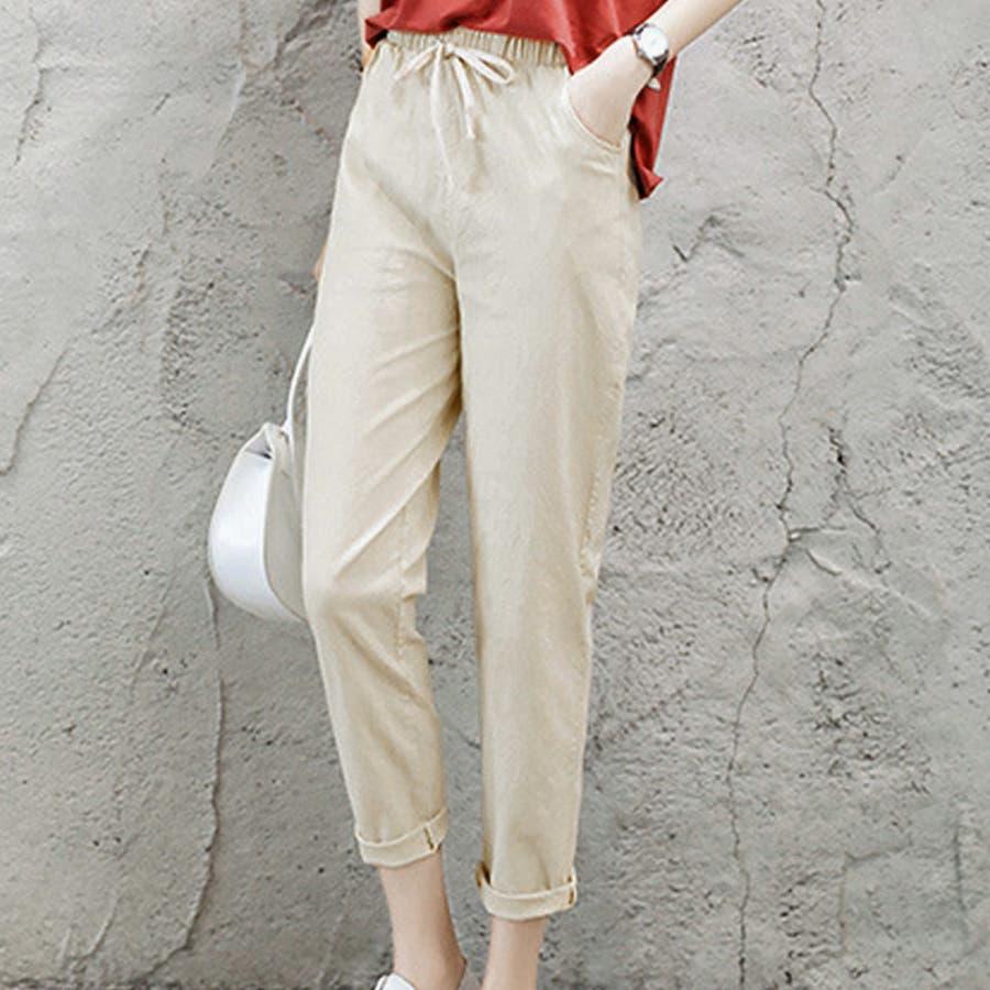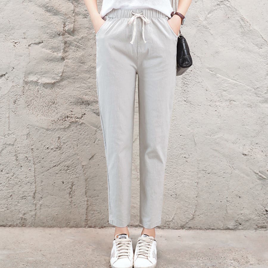 綿麻パンツ ストレートパンツ レディース