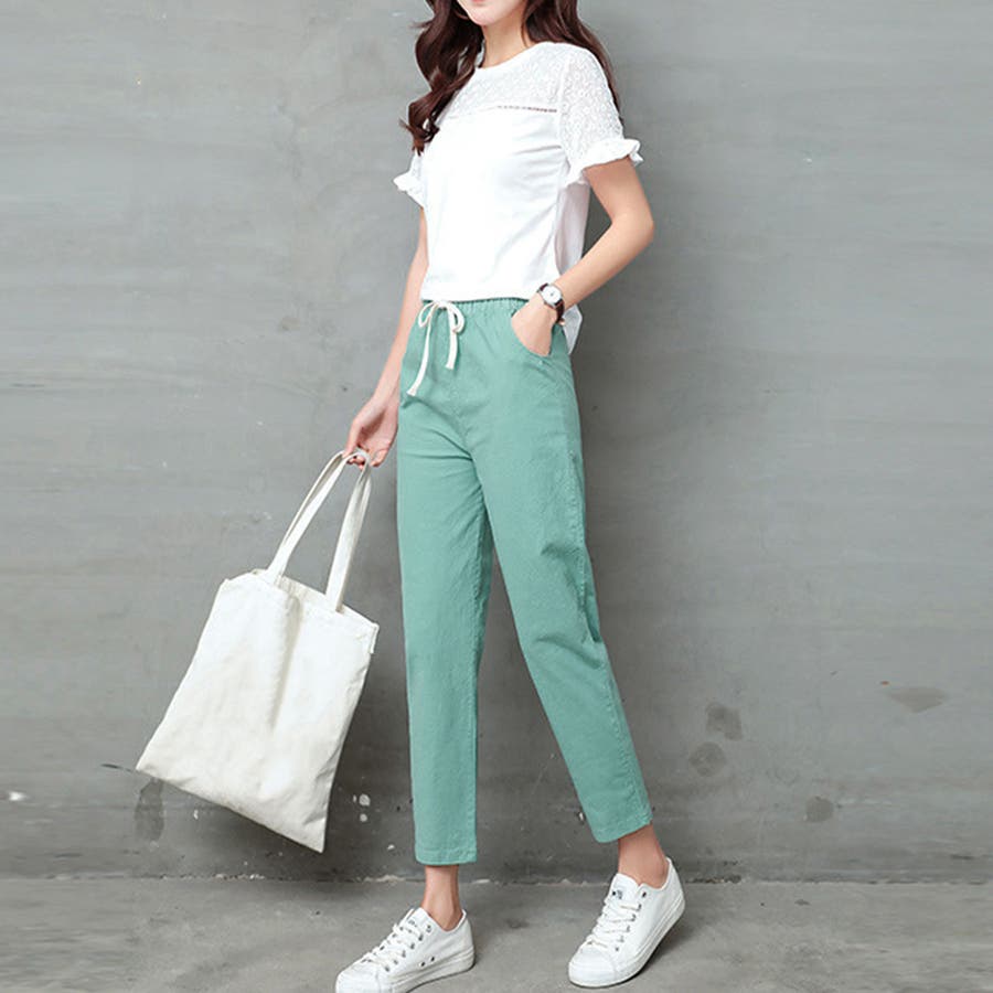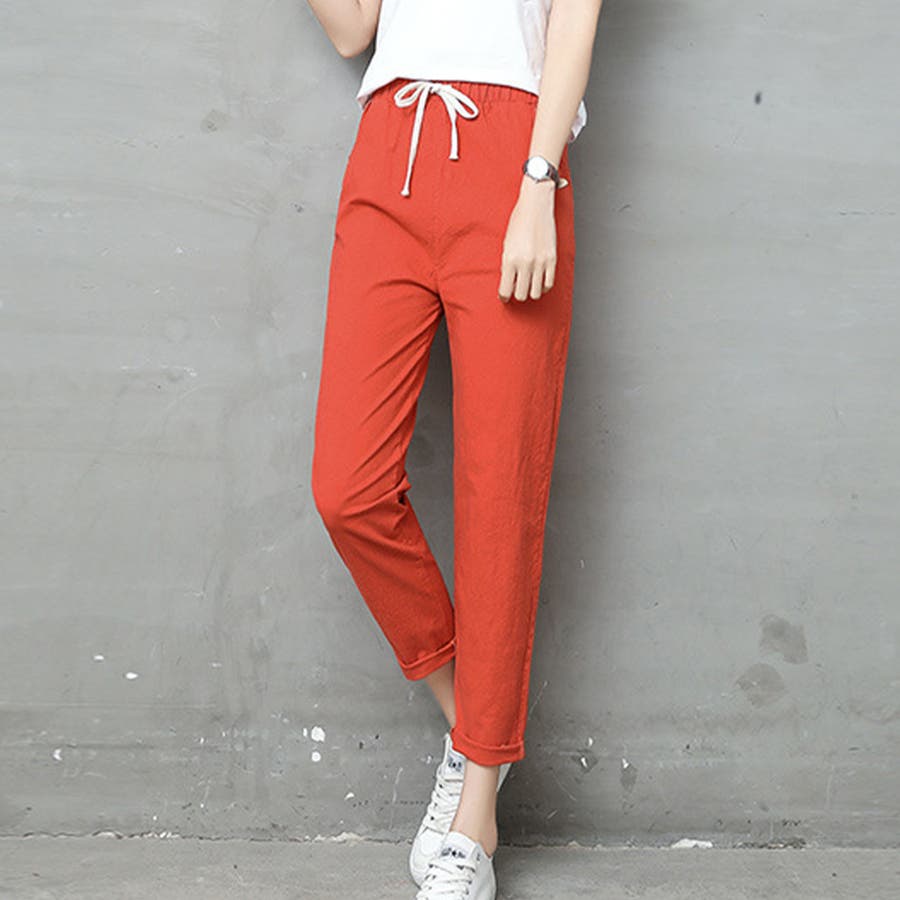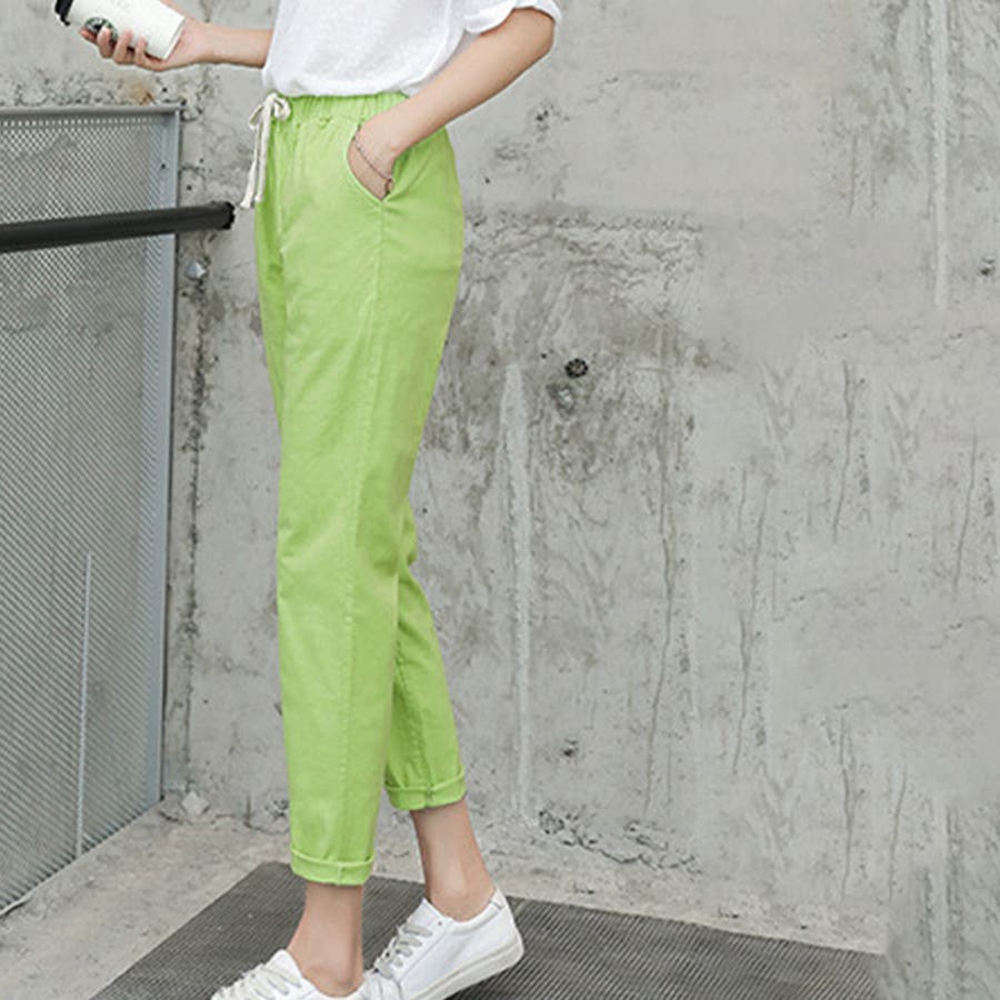 ロングパンツ春夏 9分丈カラーパンツ 長ズボン薄手女性