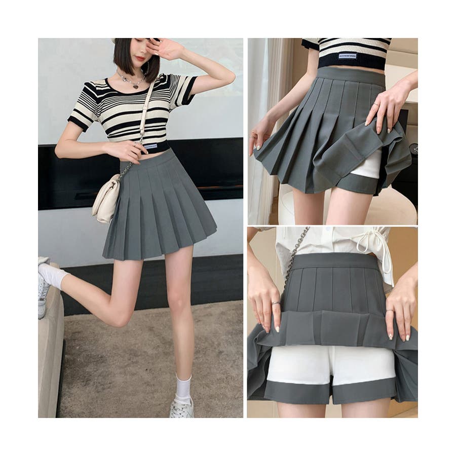 フレアスカート通学 膝上丈スカート韓国 テニススカート美脚