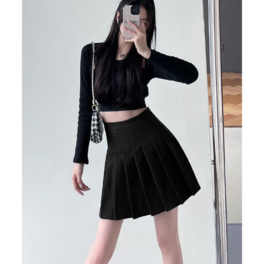 ボックスプリーツスカート ミニスカート黒